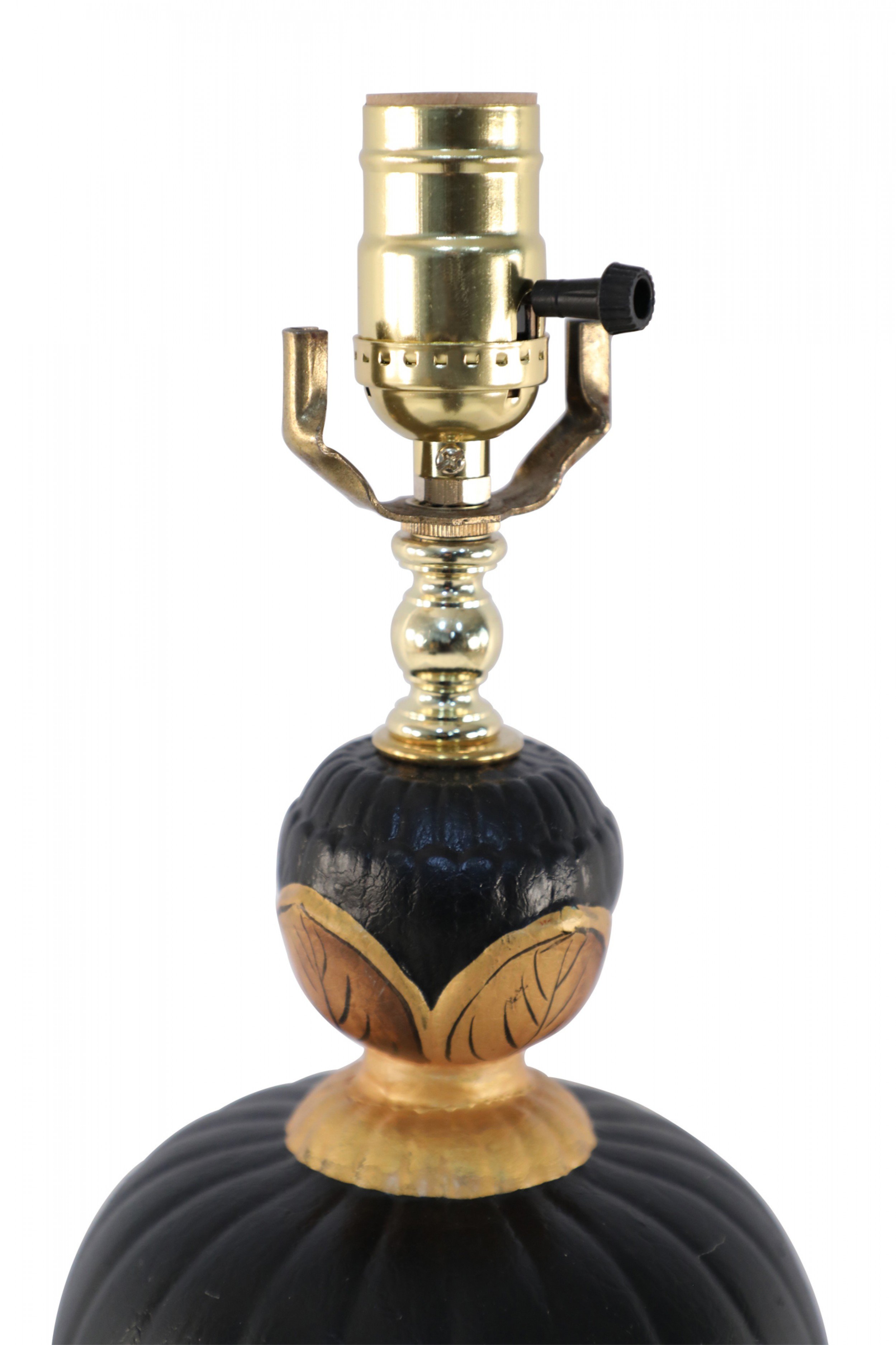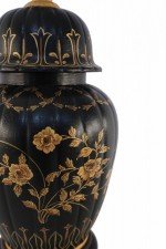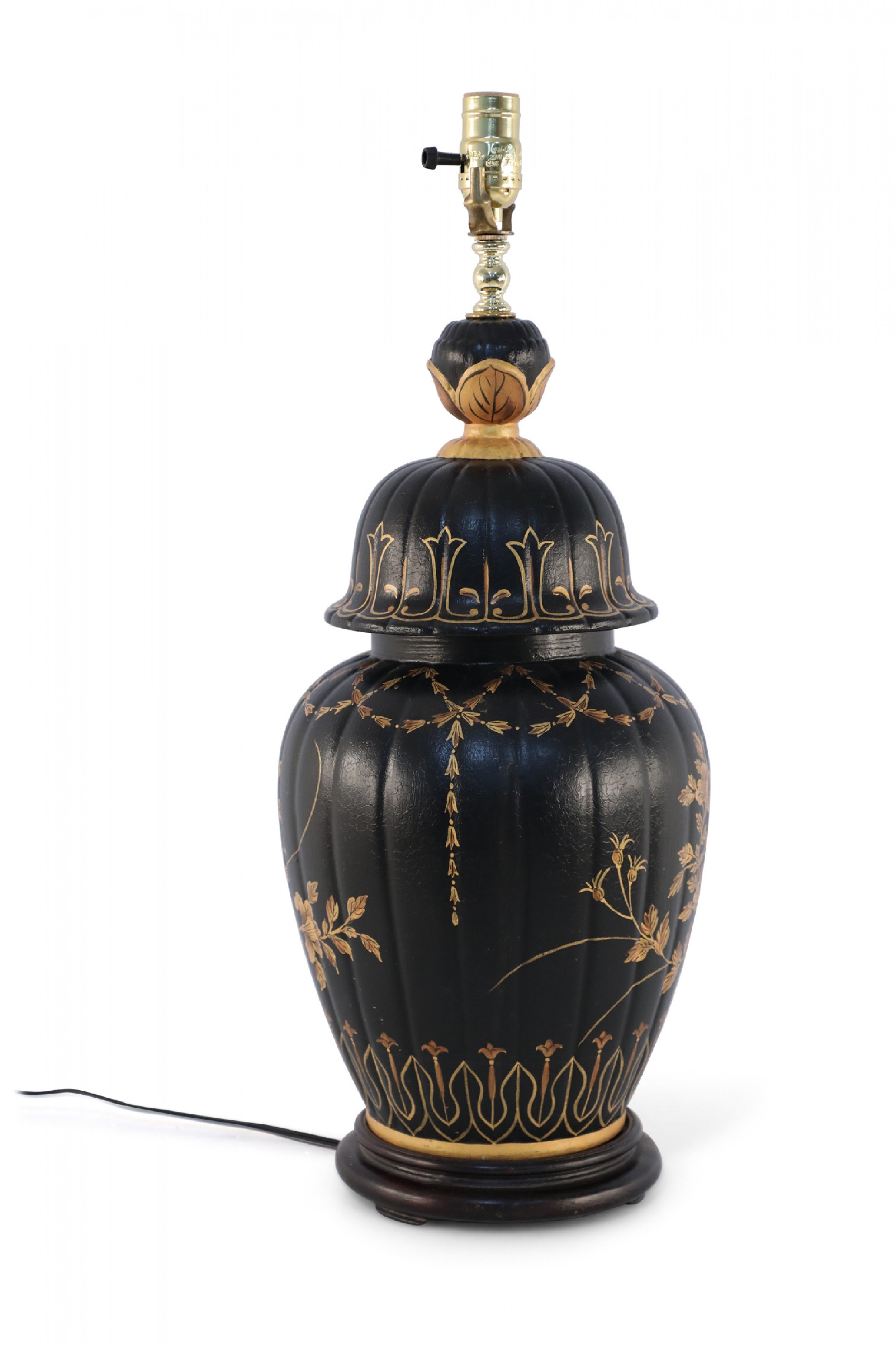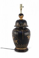 Chinese Black and Gold Pattern Lidded Urn Porcelain Table Lamp