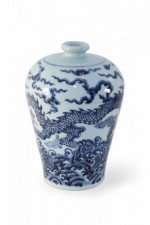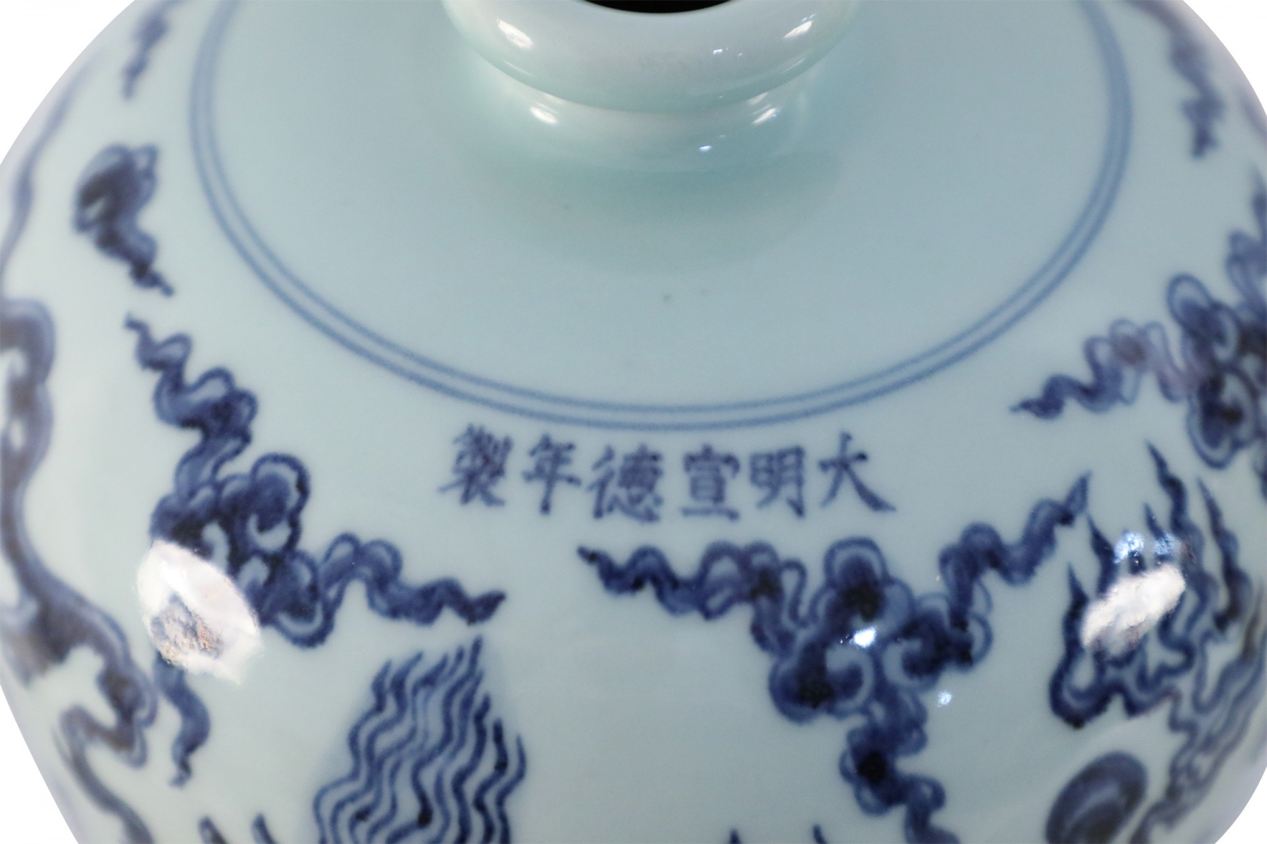 Chinese Blue and White Dragon Motif Porcelain Meiping Vase