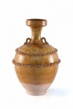 Chinese Brown and Pink Rope Design Trim Handled Vase