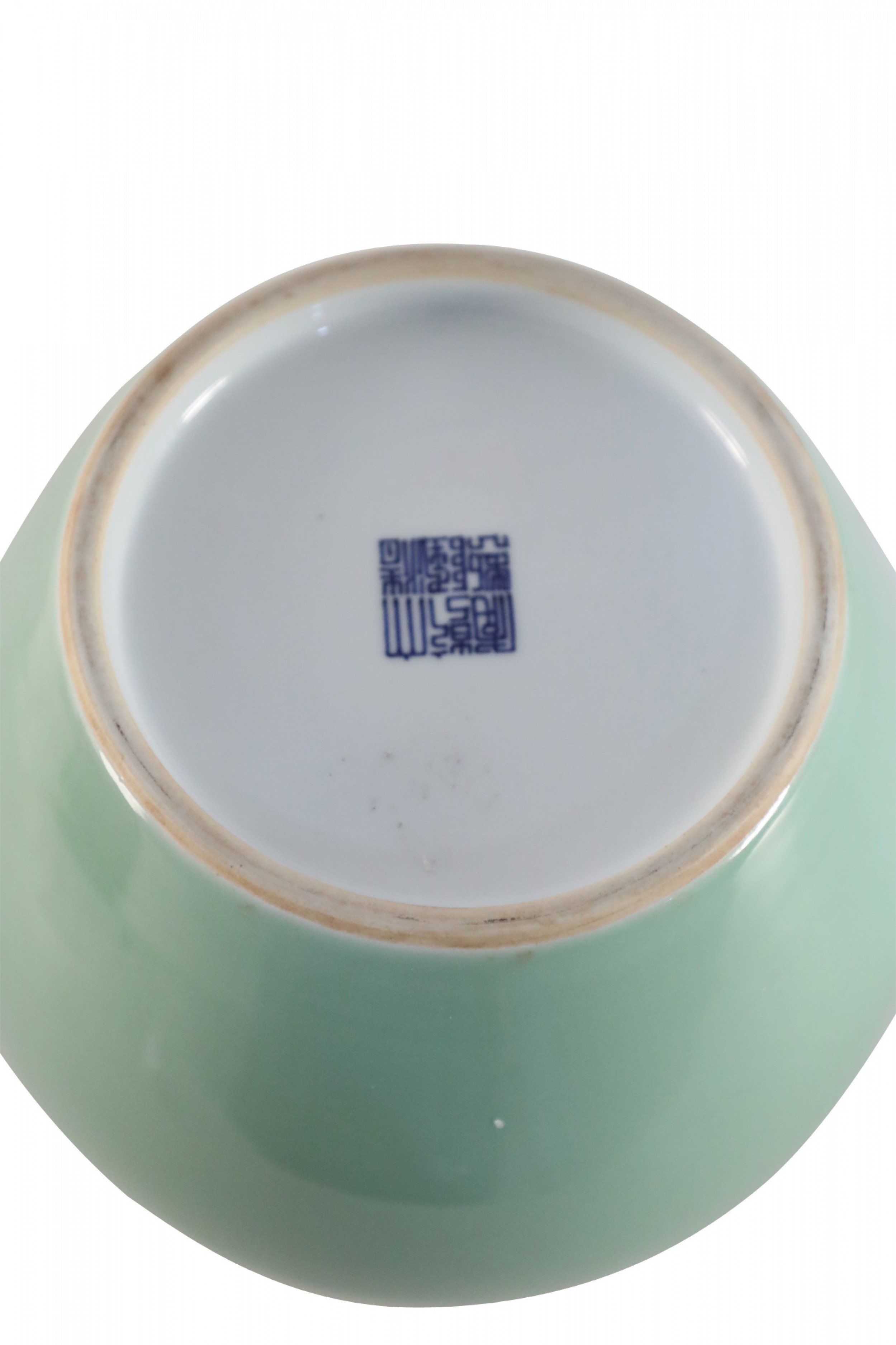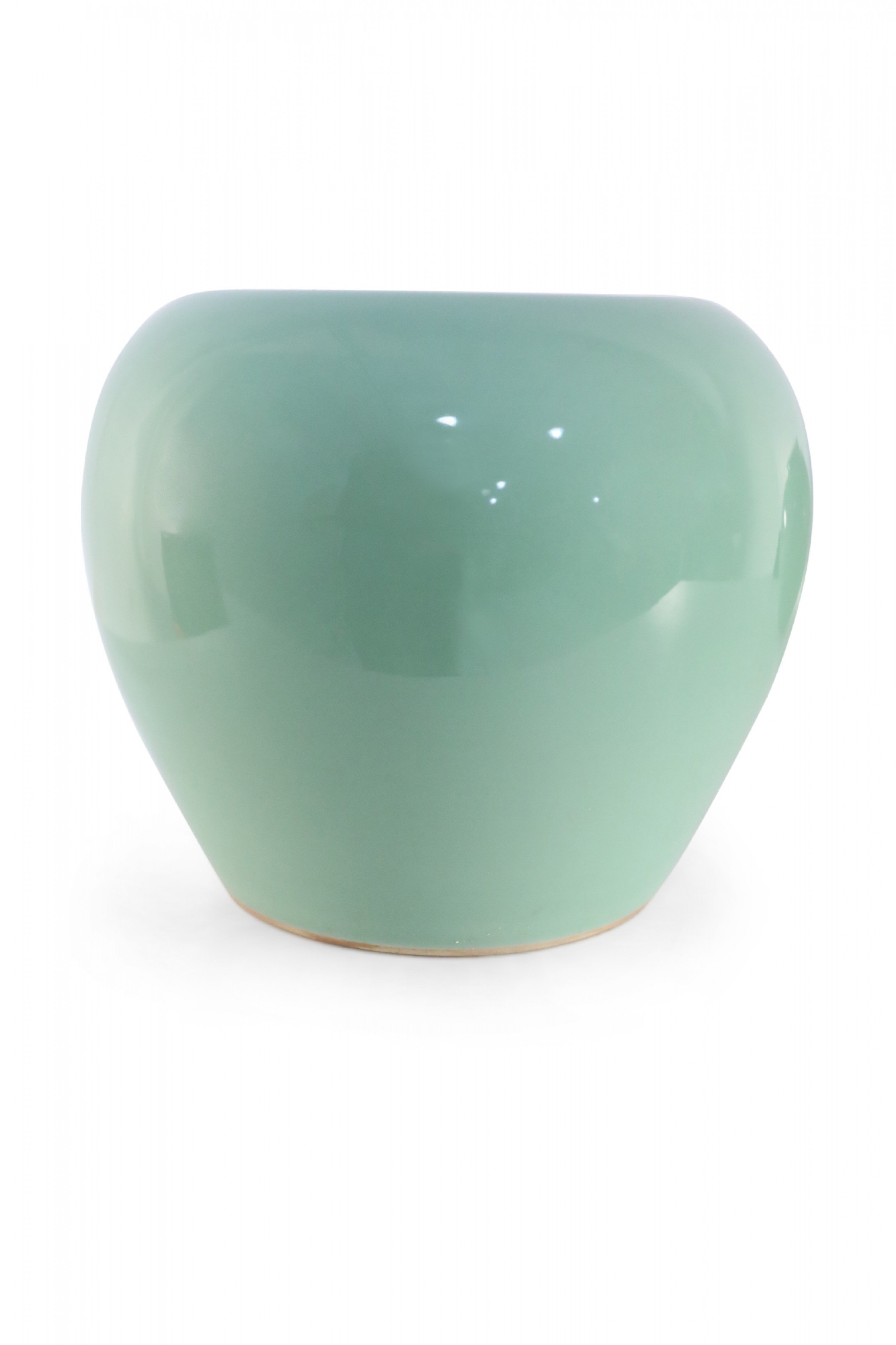 Antique Chinese (Mid-20th Century) glazed porcelain pot / water jar in a celadon color with a rounded form (mark on bottom, see photos)..