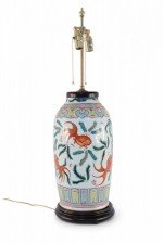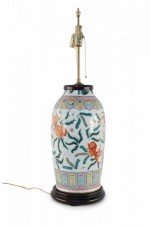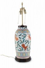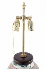 Style: Asian Materials & Techniques: Brass, metal, porcelain, wood Category: Lighting Condition: Ships without a shade.
