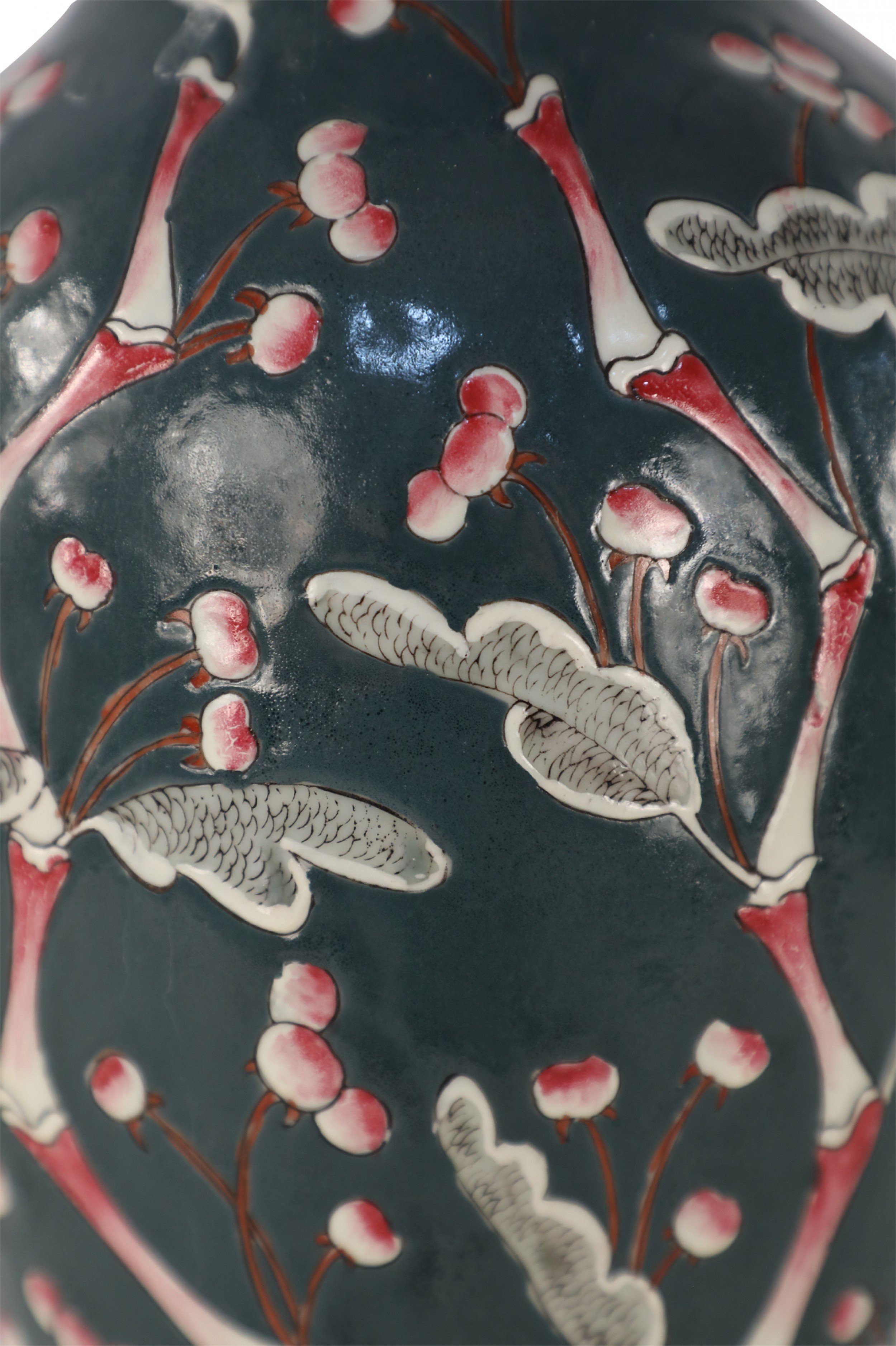 Chinese Dark Blue and Red Cherry Blossom Tree Motif Table Lamp