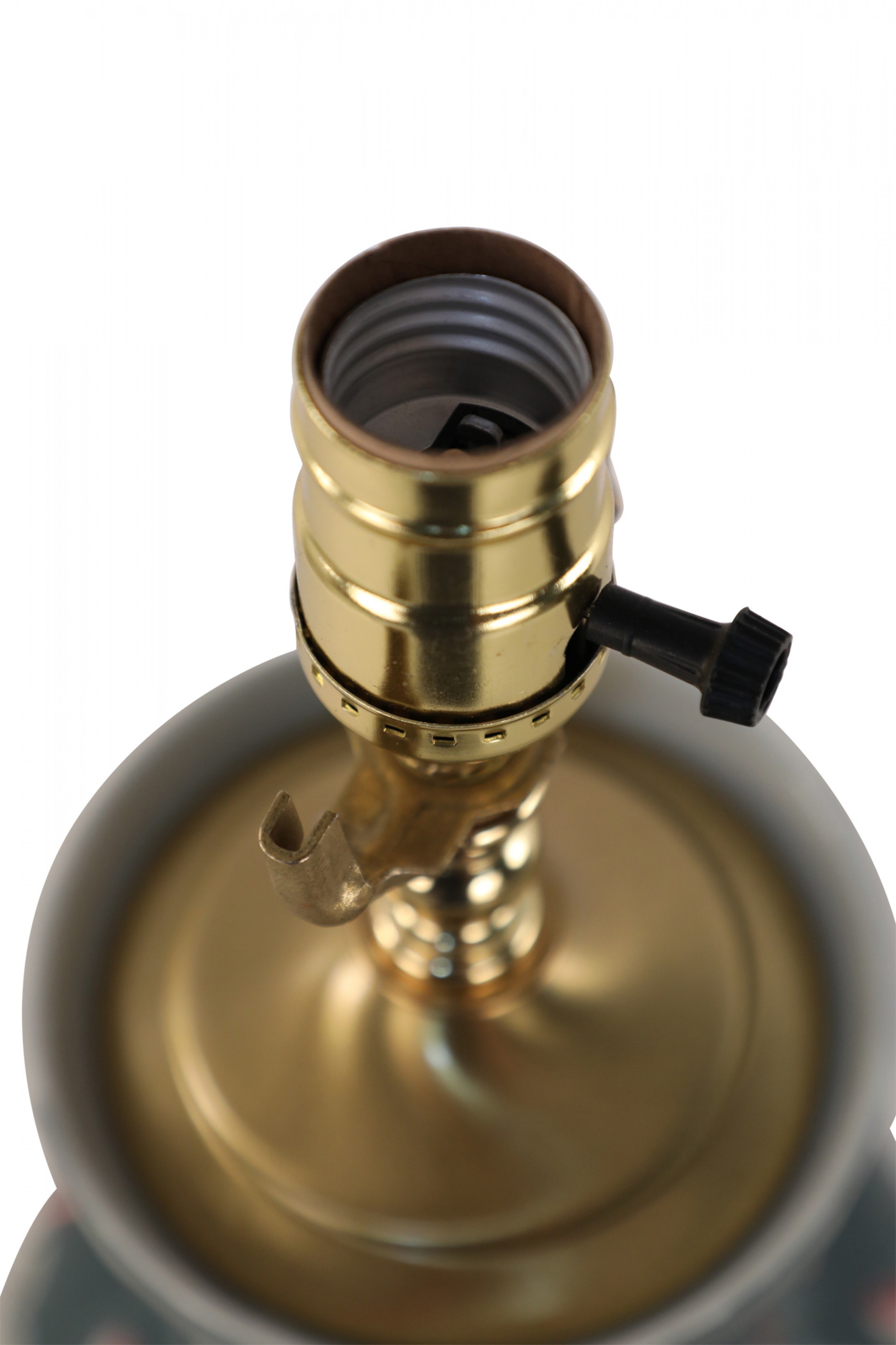 Style: Asian Materials & Techniques: Brass, metal, porcelain, wood Category: Lighting Condition: Ships without a shade.