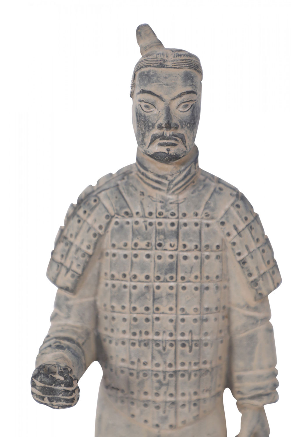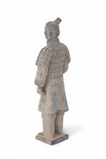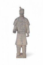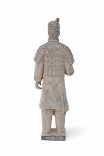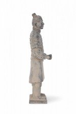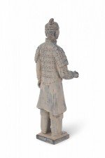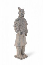 Antique Chinese terracotta warrior figure modeled after one of the 7,000 warriors that form the Terracotta Army in the Mausoleum of the First Qin Emperor, Shi Huang. (Companion piece: NWL2640).
