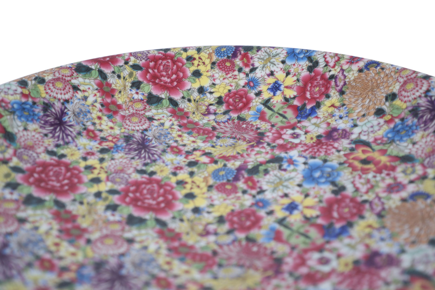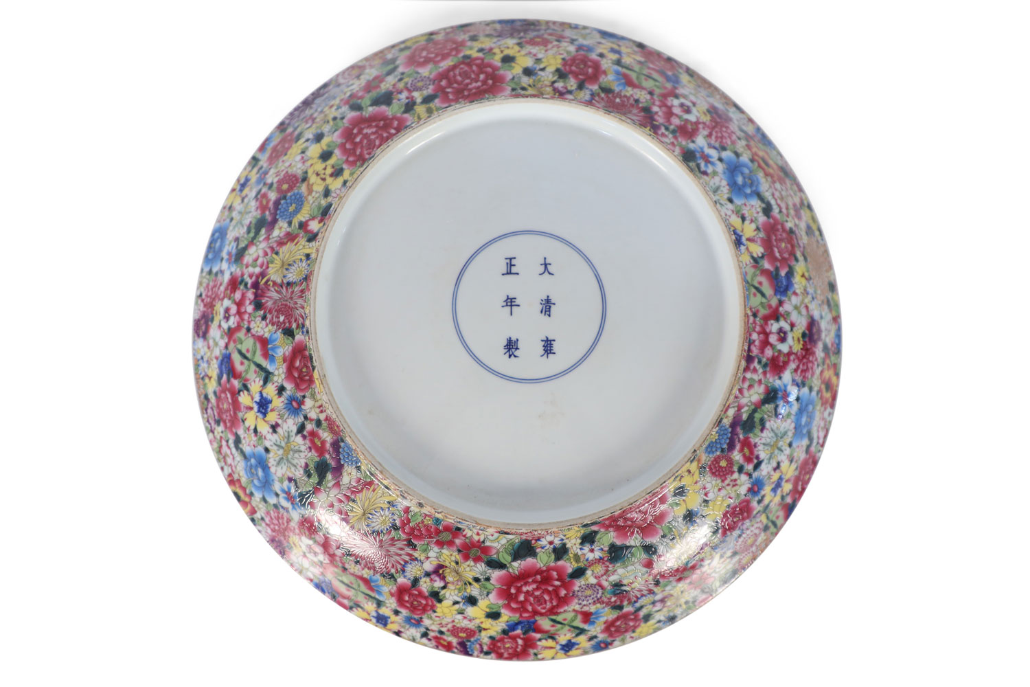 Chinese Famille Rose Thousand Flower Pattern Shallow Porcelain Bowl / Centerpiece