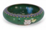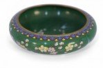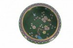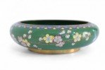 Chinese Green and Cherry Blossom Cloissone Bowl