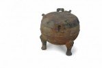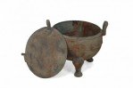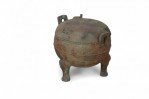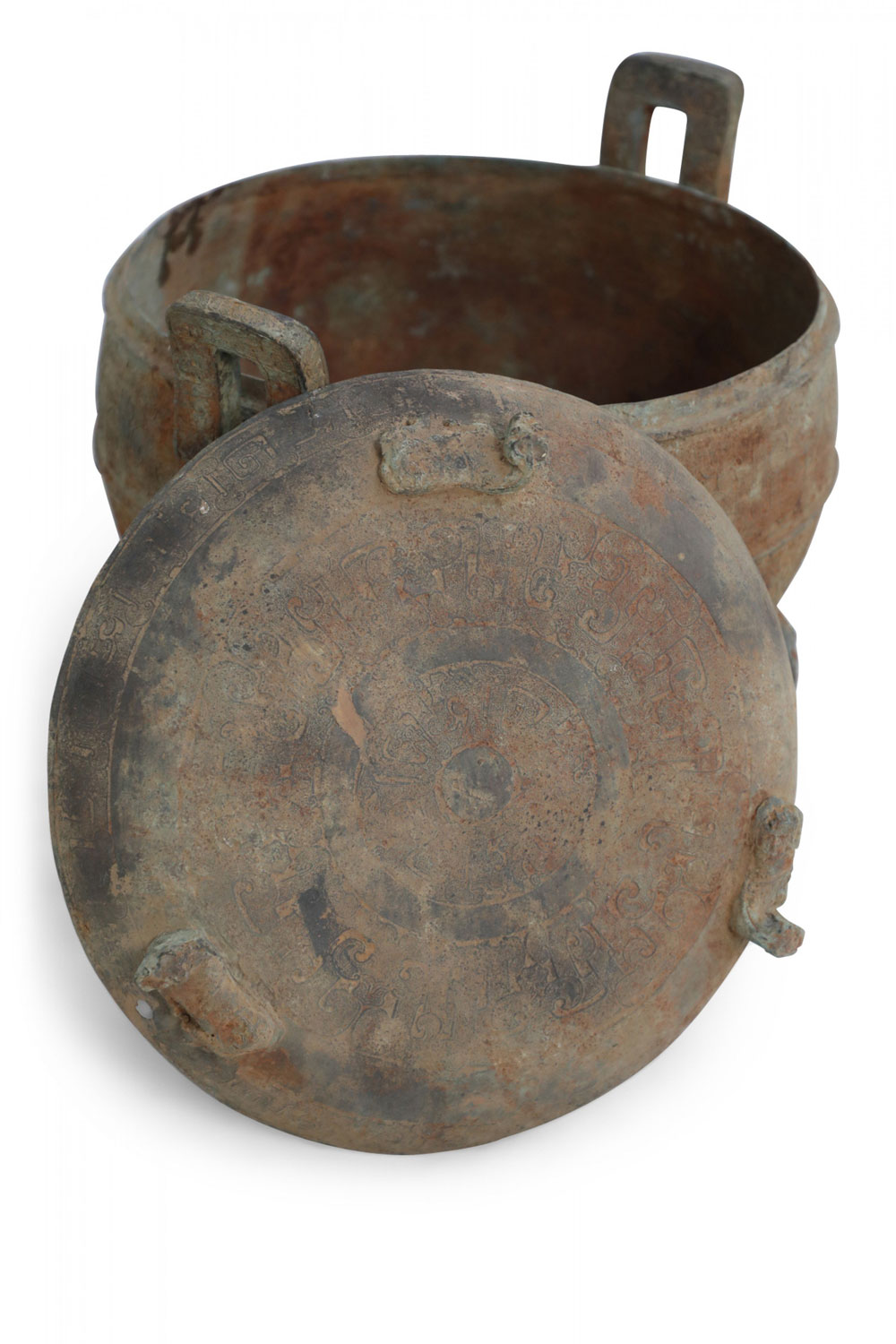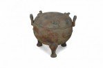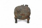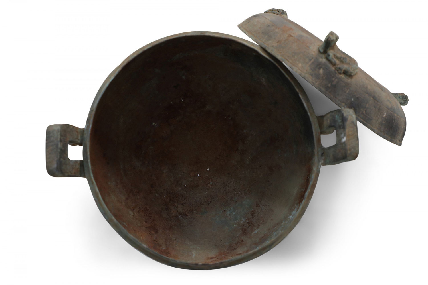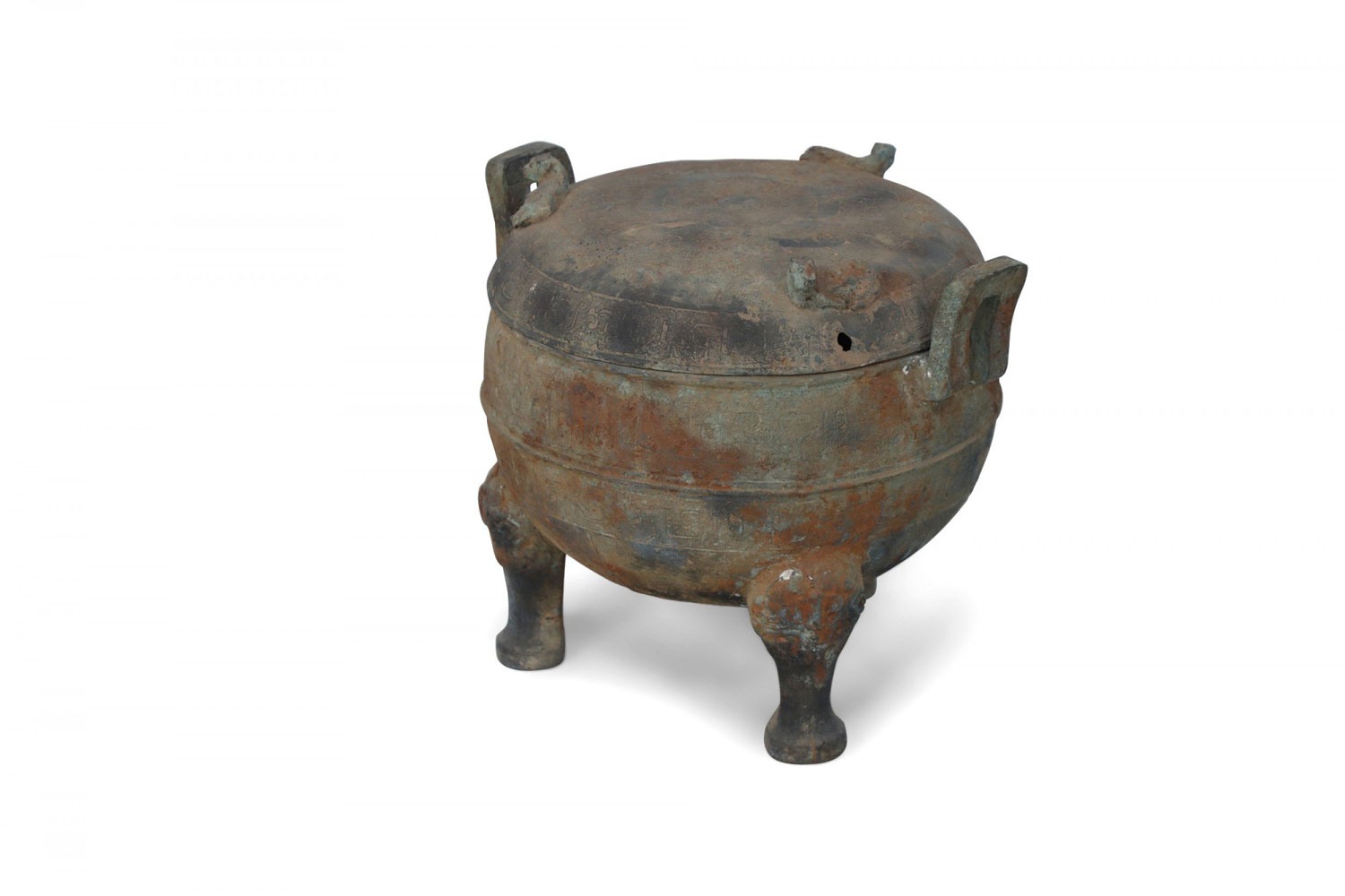 Chinese Han Dynasty Style Patinated Bronze Footed and Lidded Pot