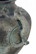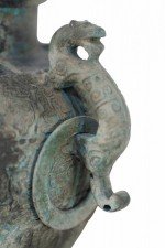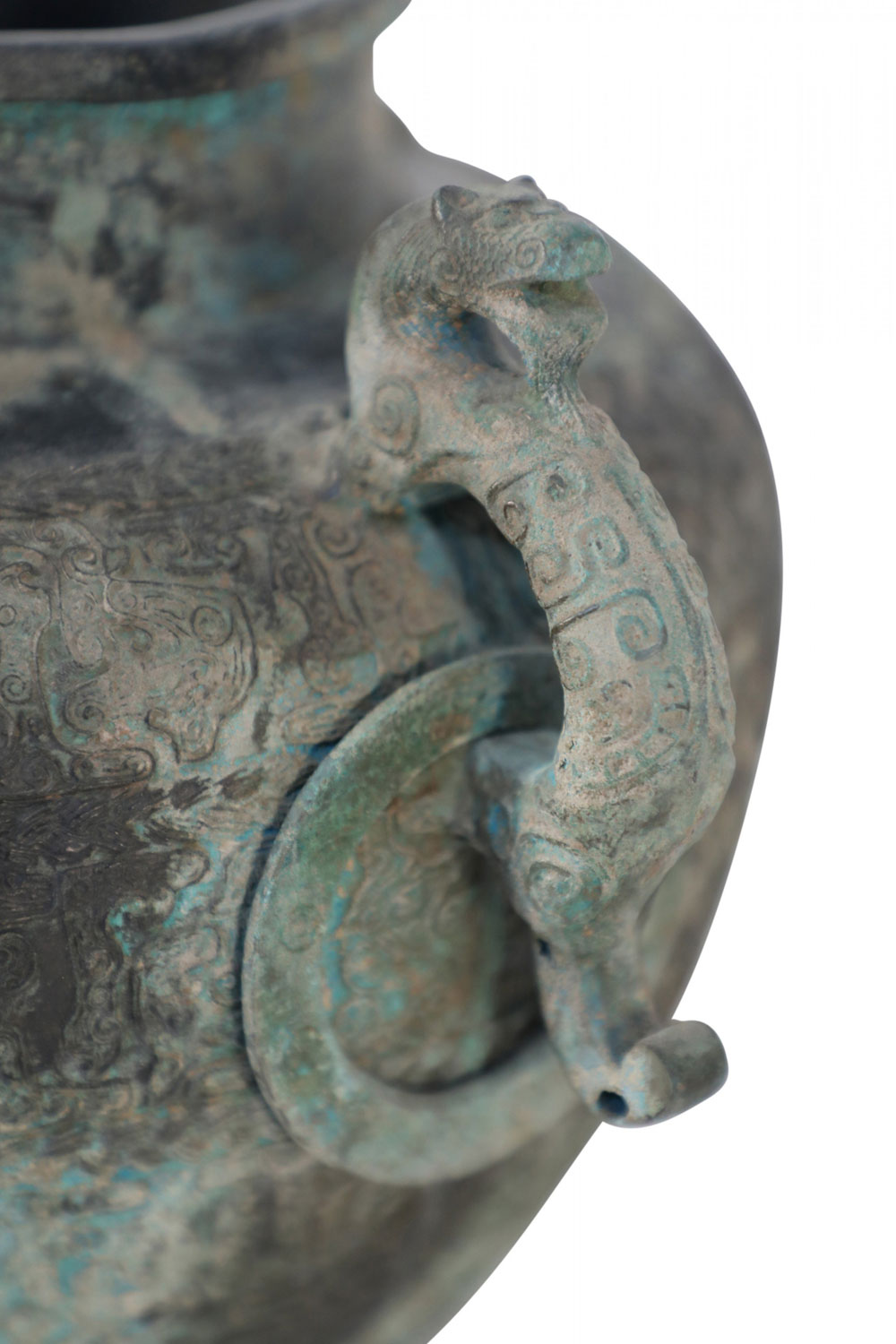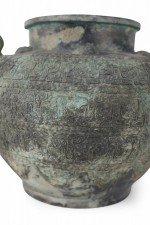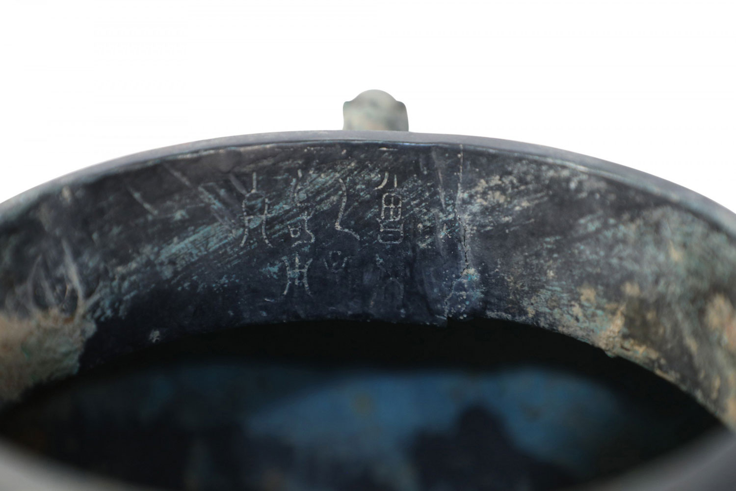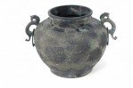 Chinese Han Dynasty-Style Patinated Bronze Handled Pot