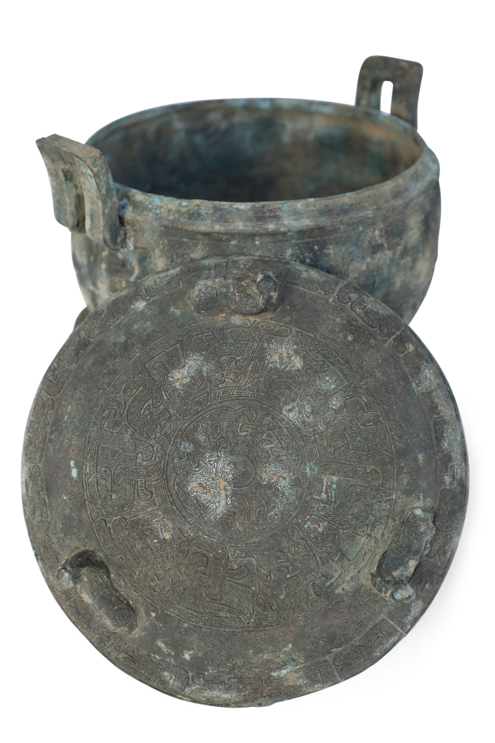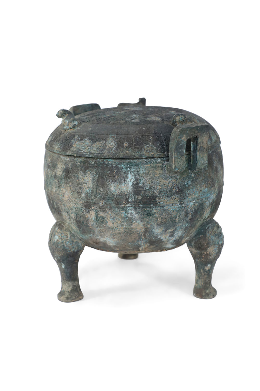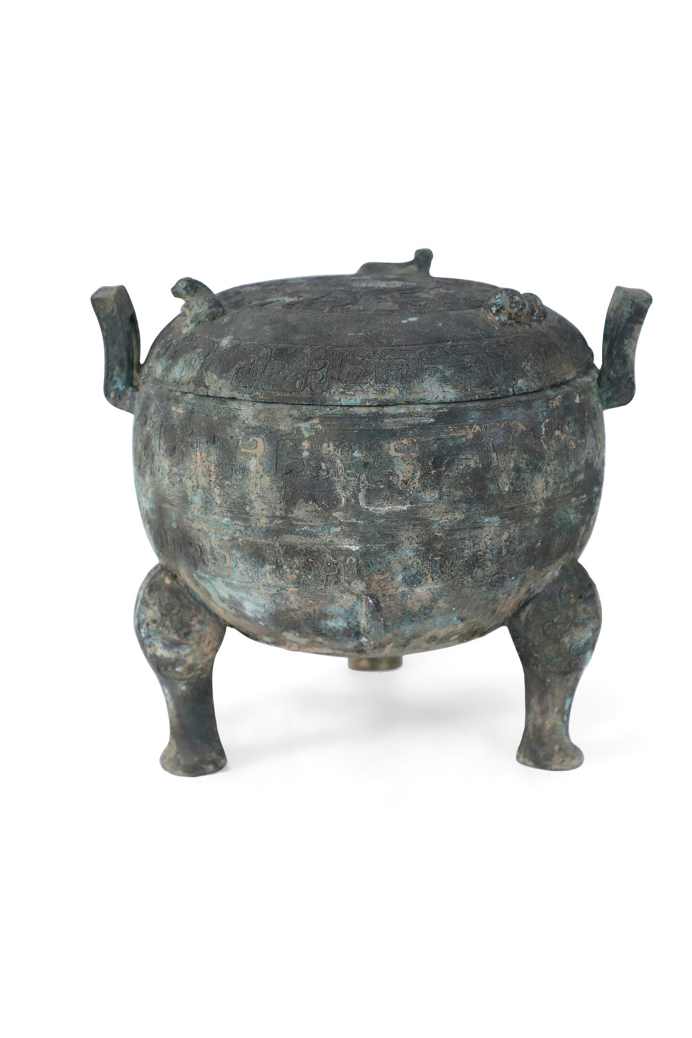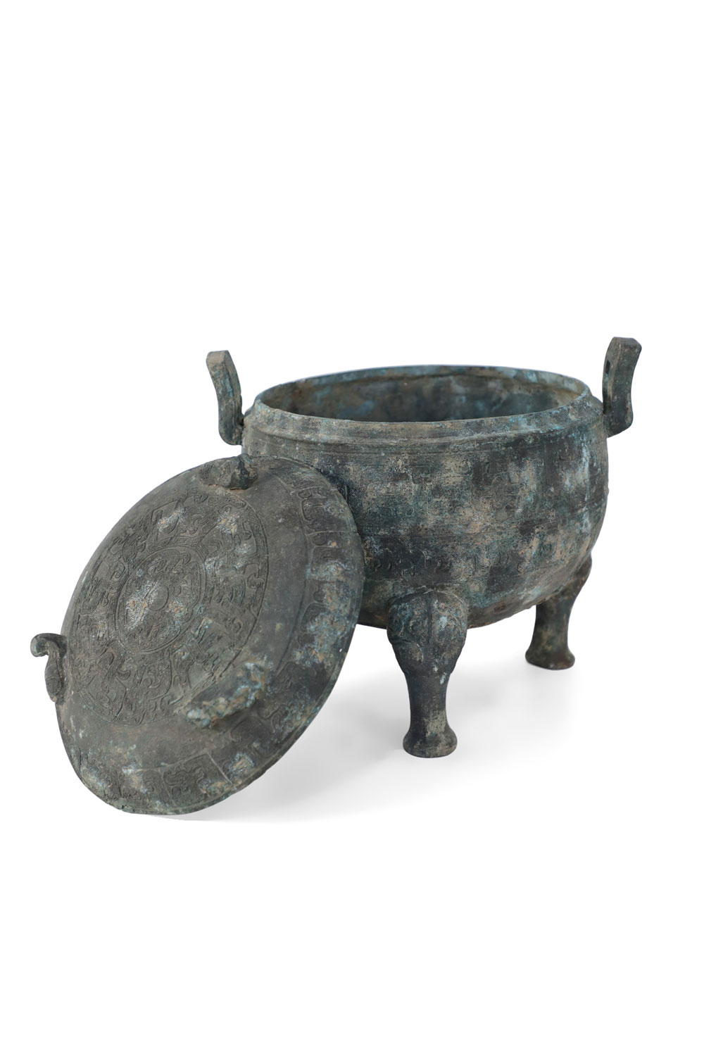 Chinese Han Dynasty-Style Patinated Bronze Lidded and Footed Pot