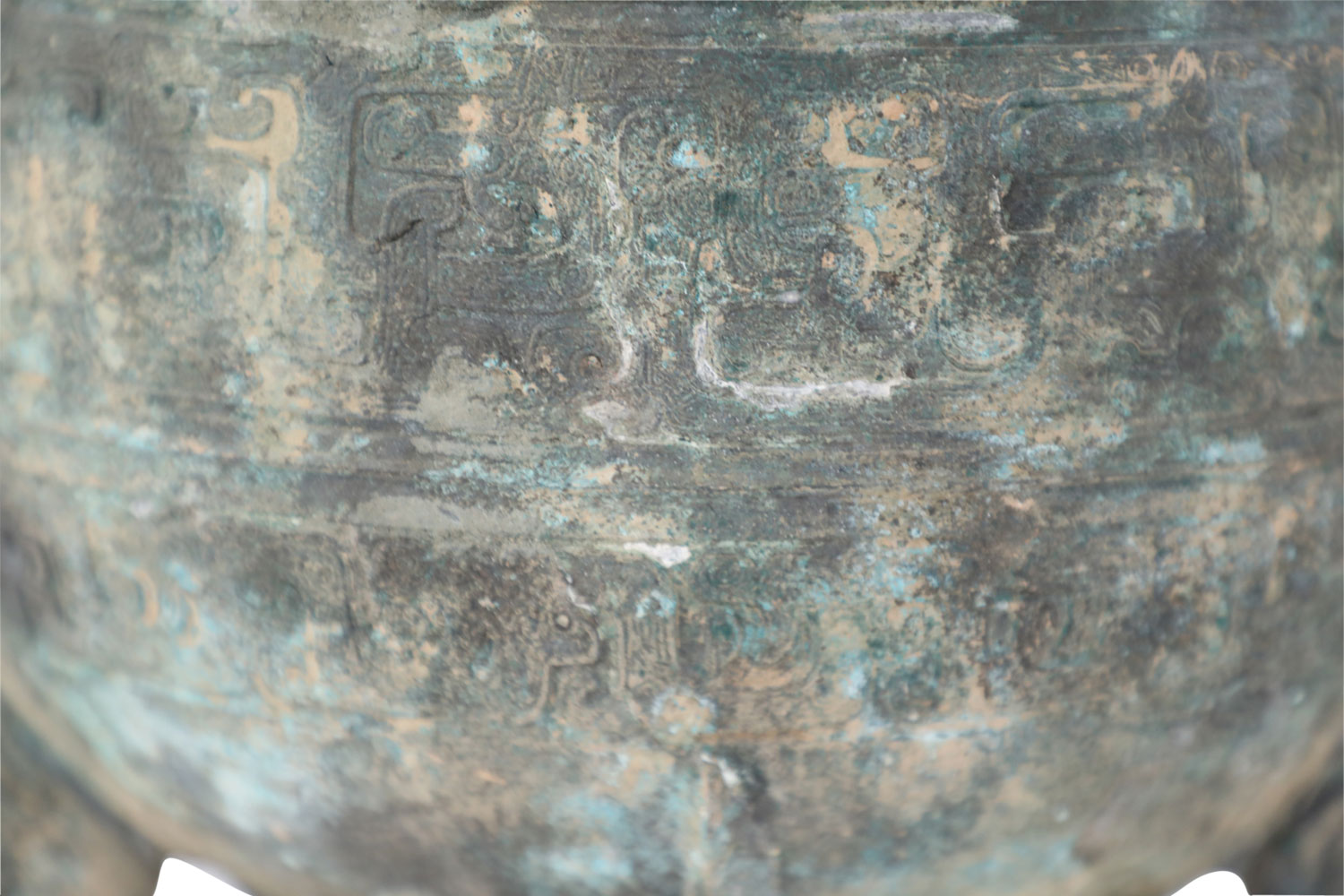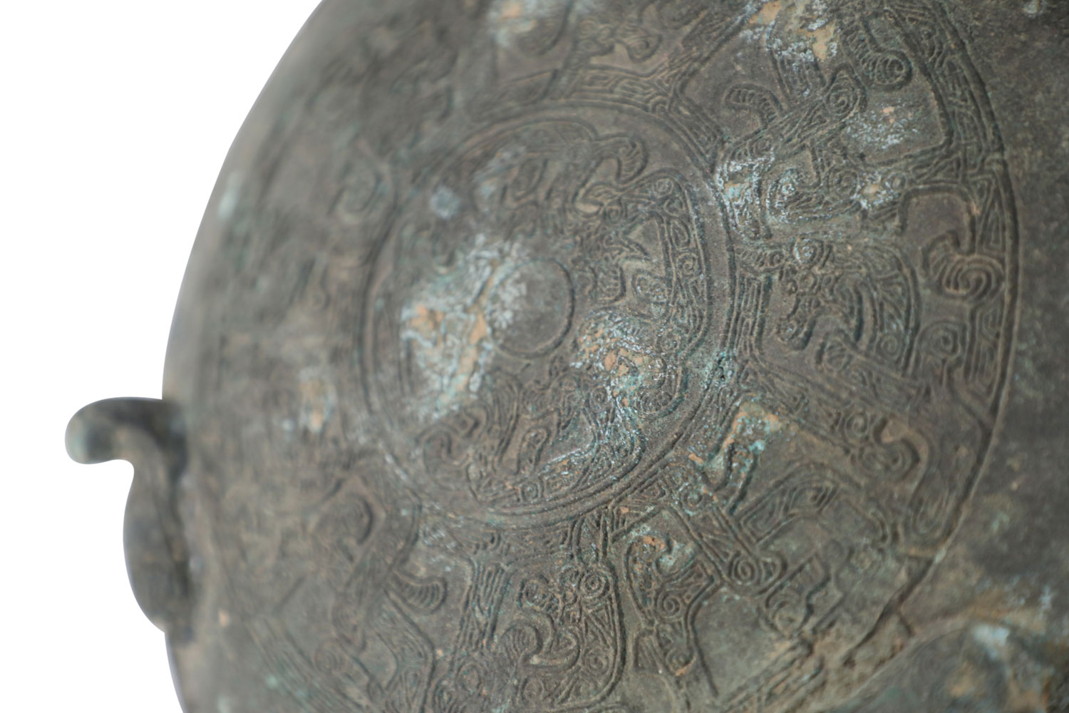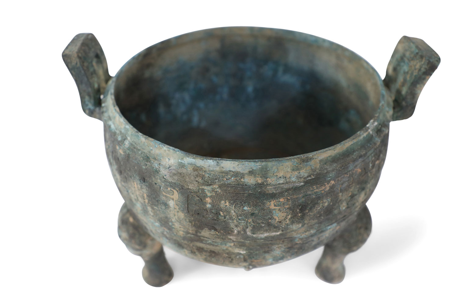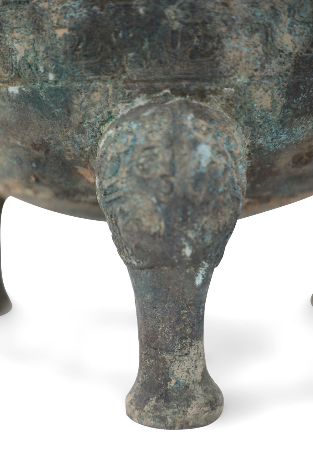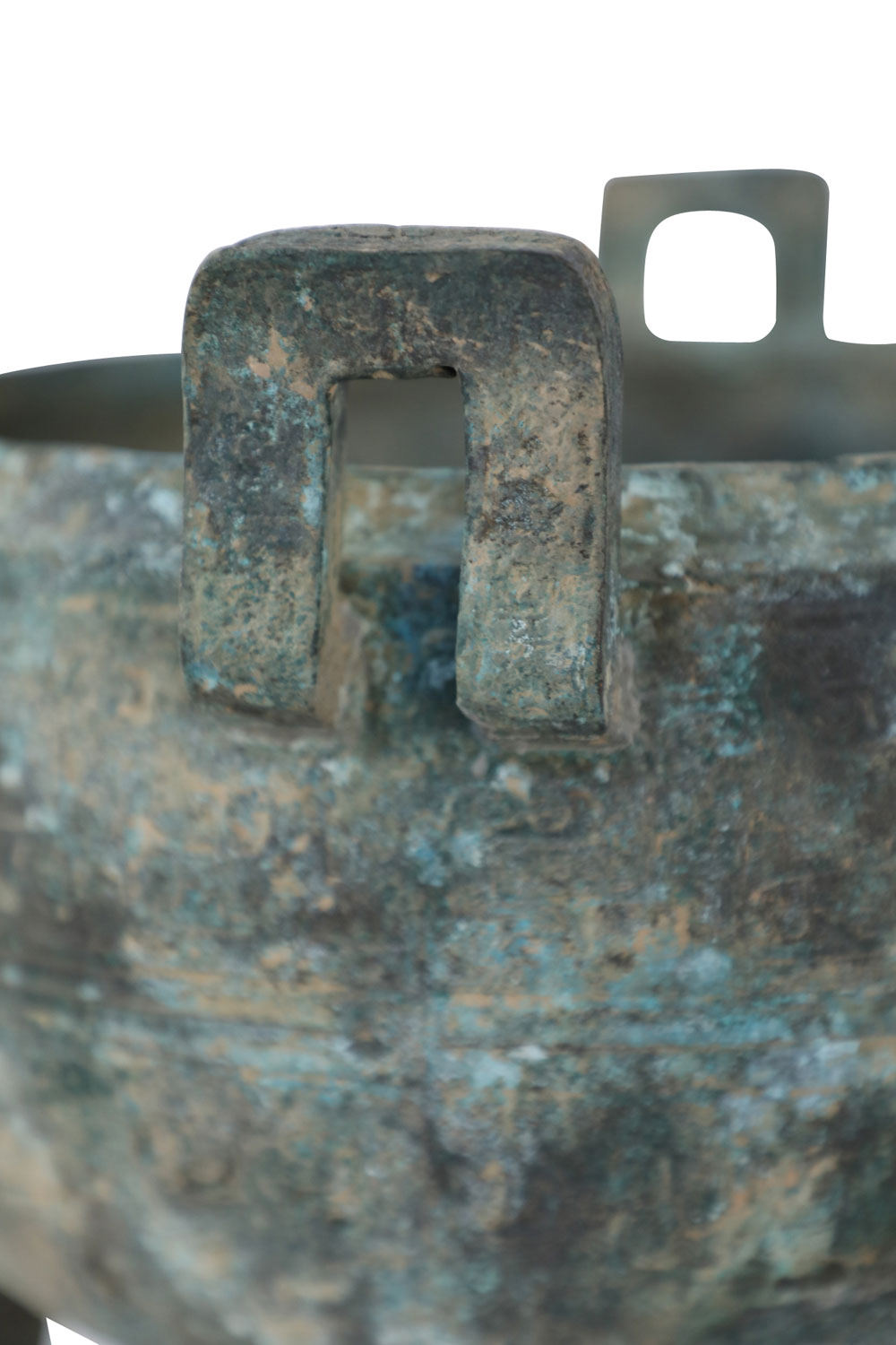 Chinese Han Dynasty-Style Patinated Bronze Lidded and Footed Pot