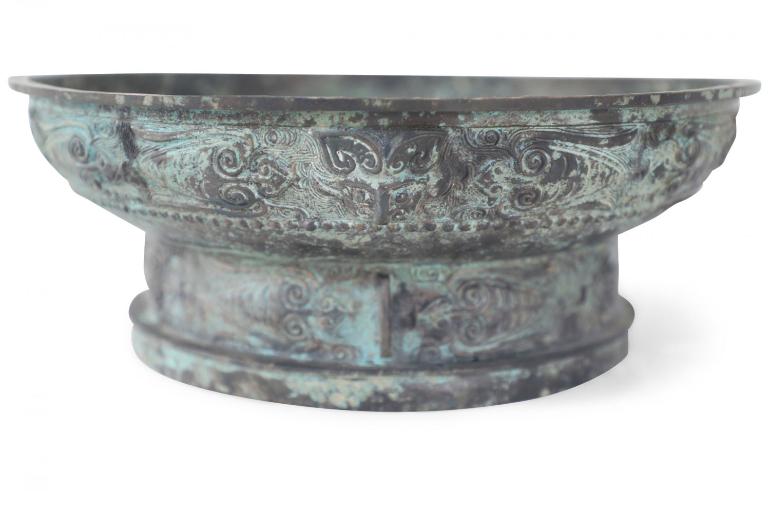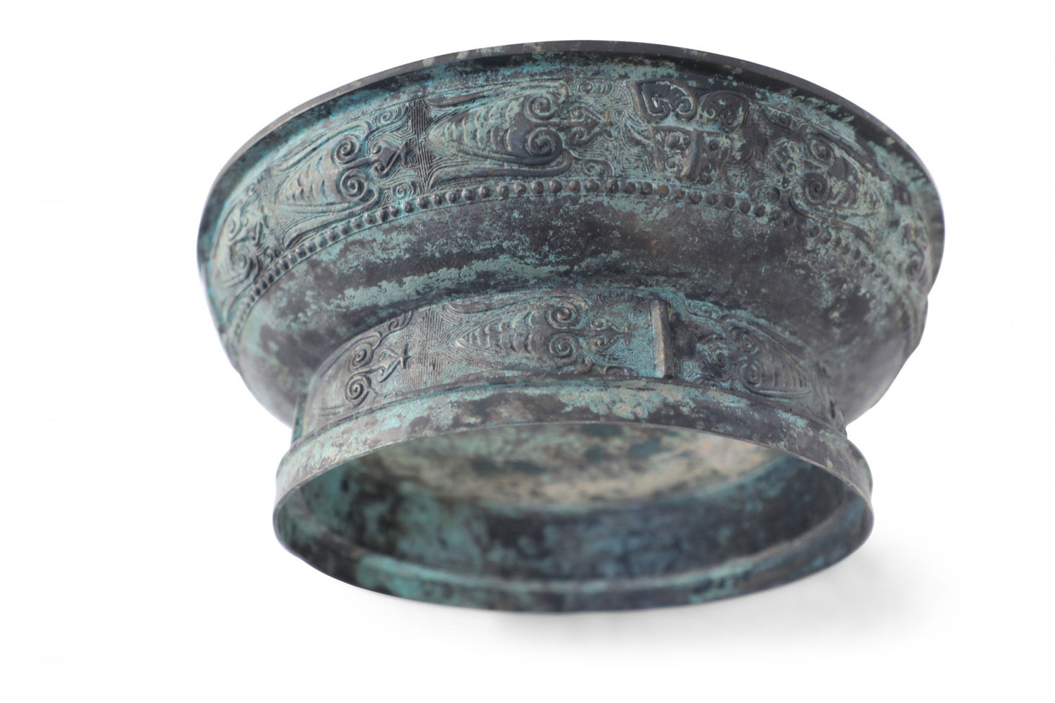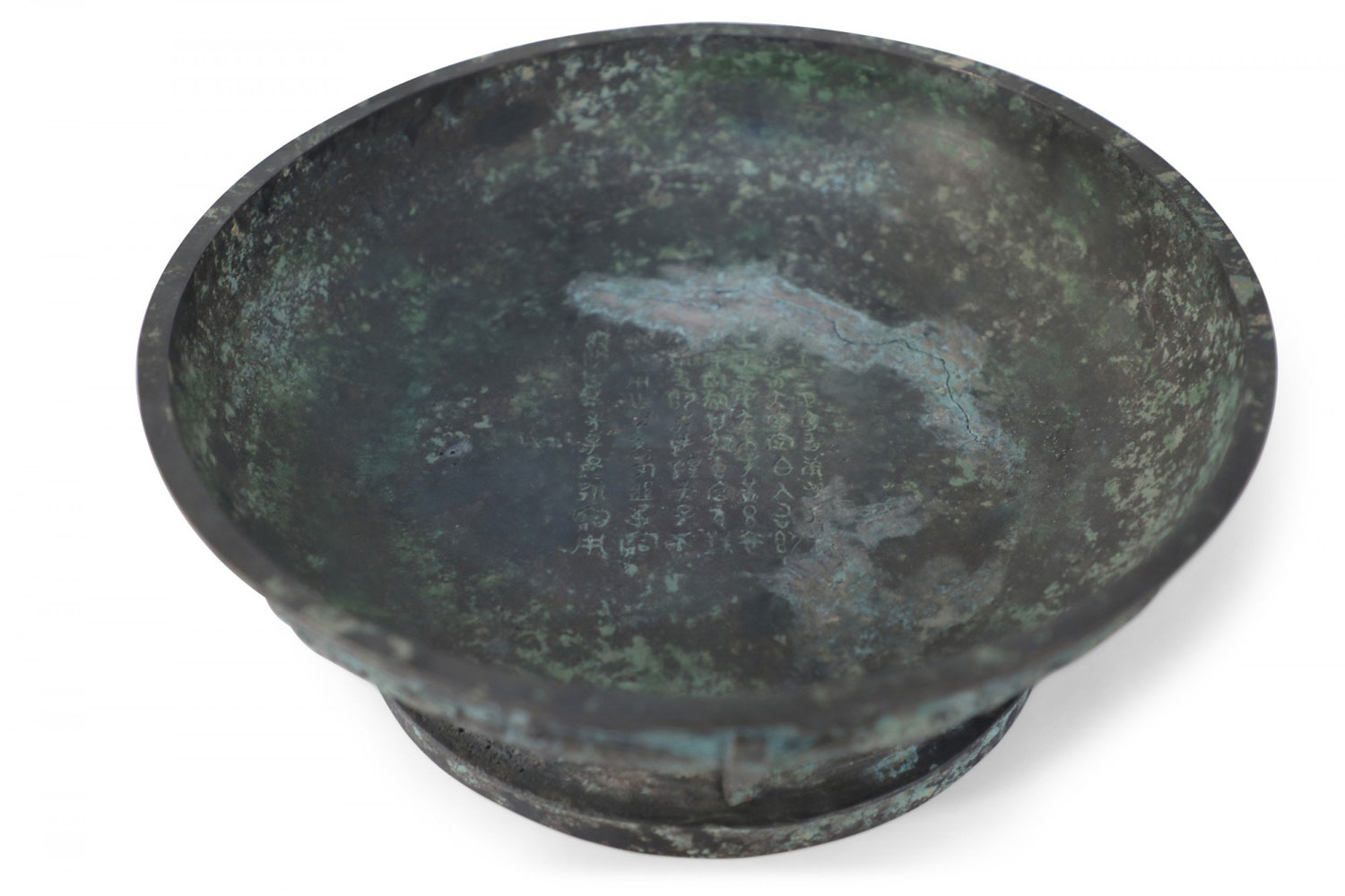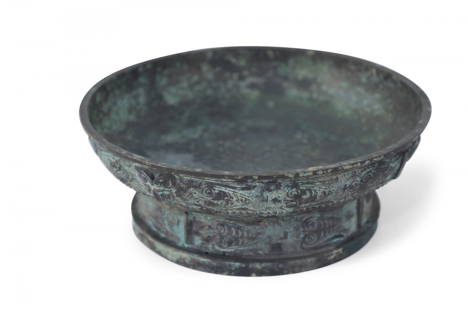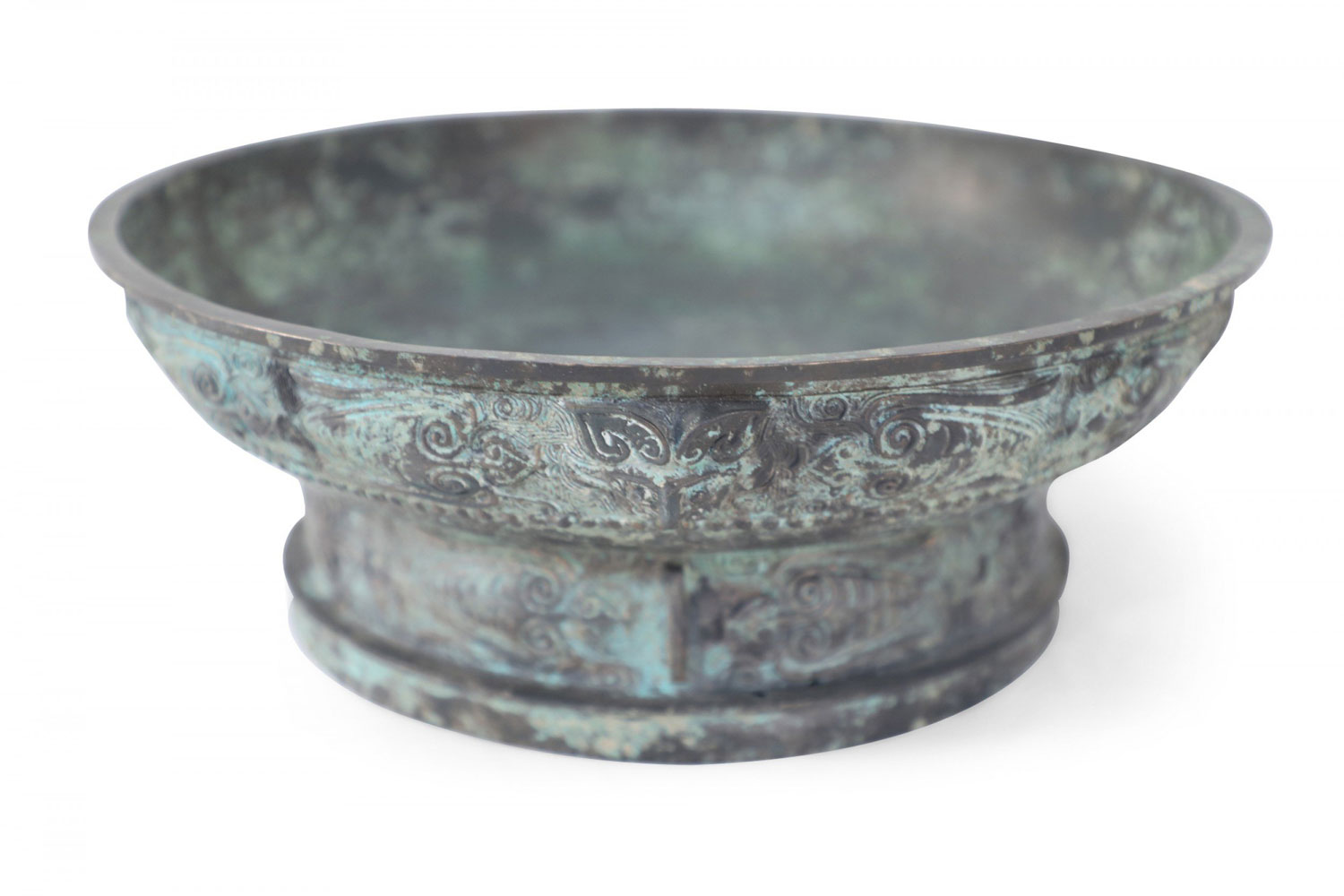 Chinese Han Dynasty-Style Patinated Bronze Shallow Bowl