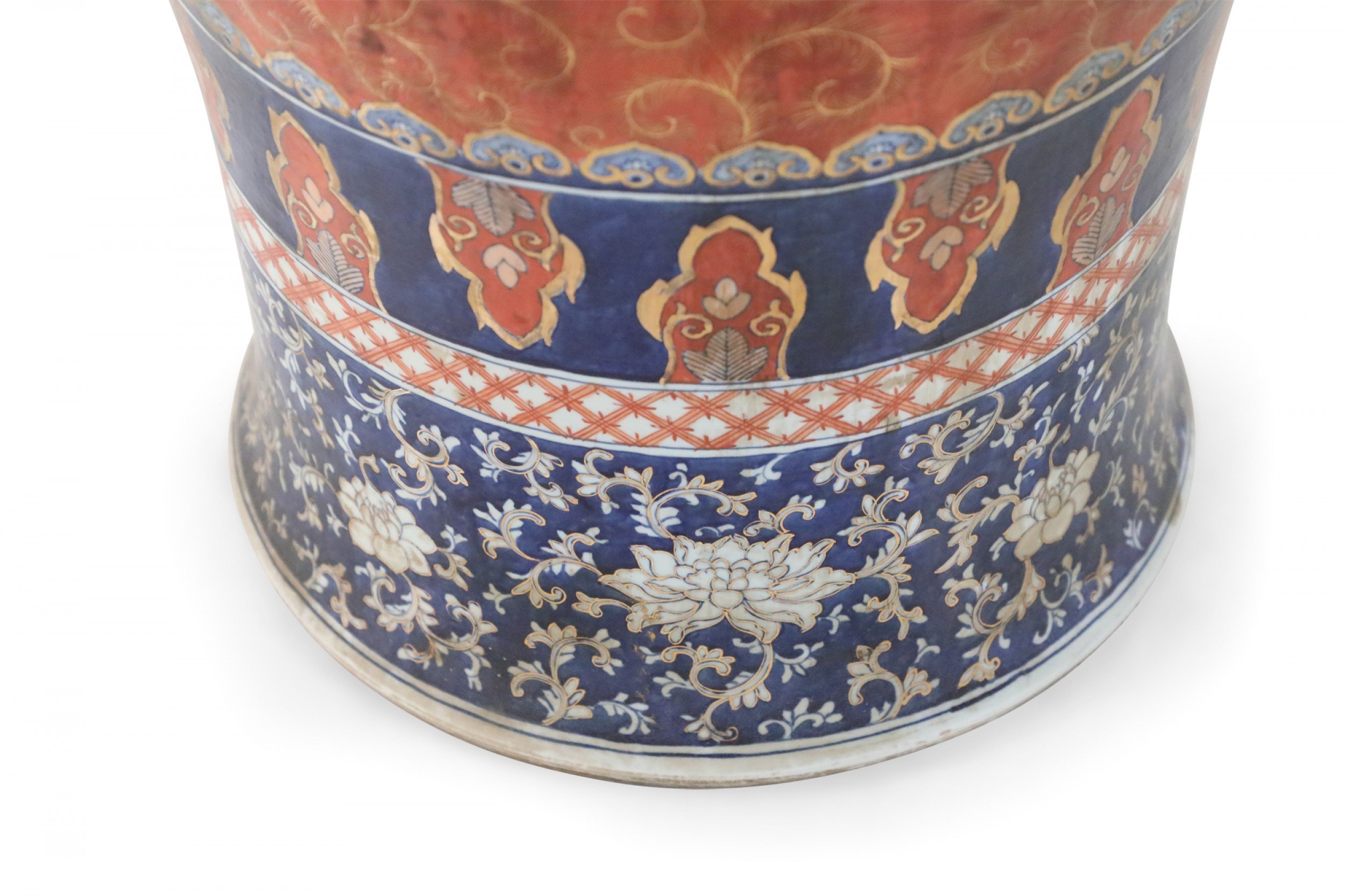 Chinese Imari-Style Orange and Blue Monumental Ceramic Urn