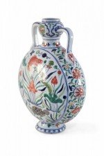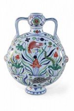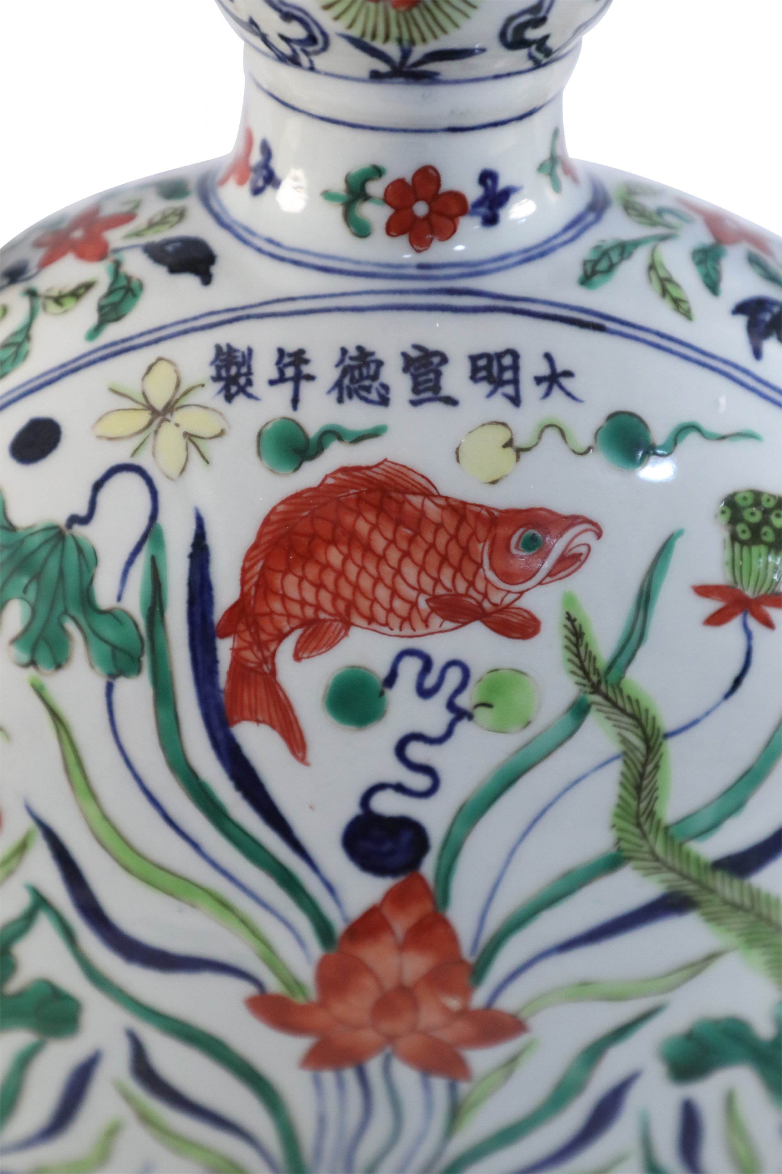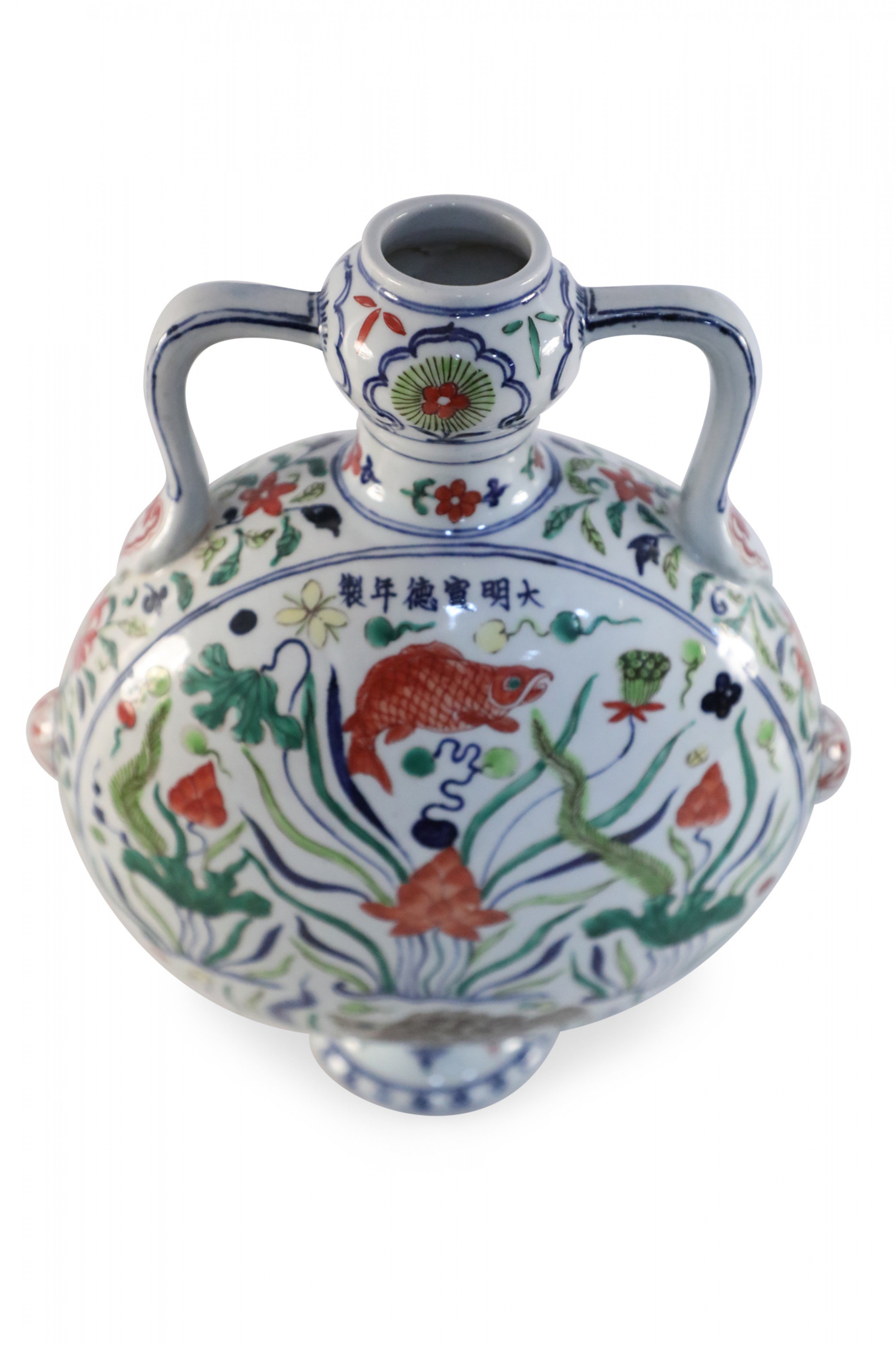 Chinese Koi Fish and Seaweed Porcelain Moon Flask Vase