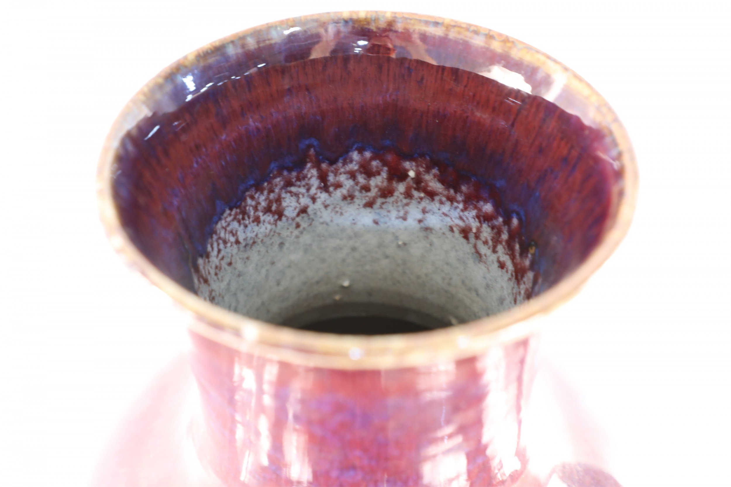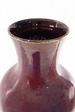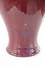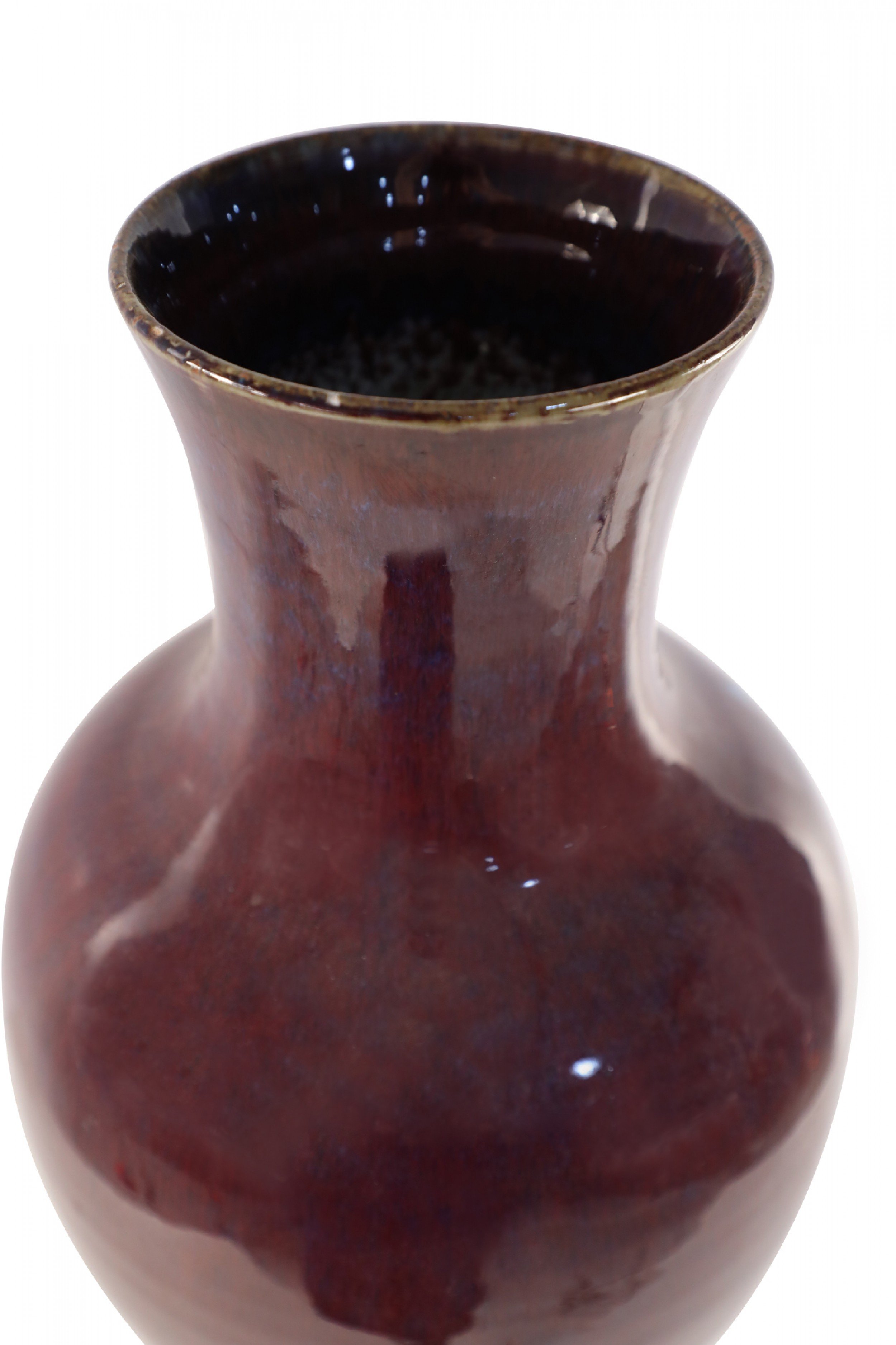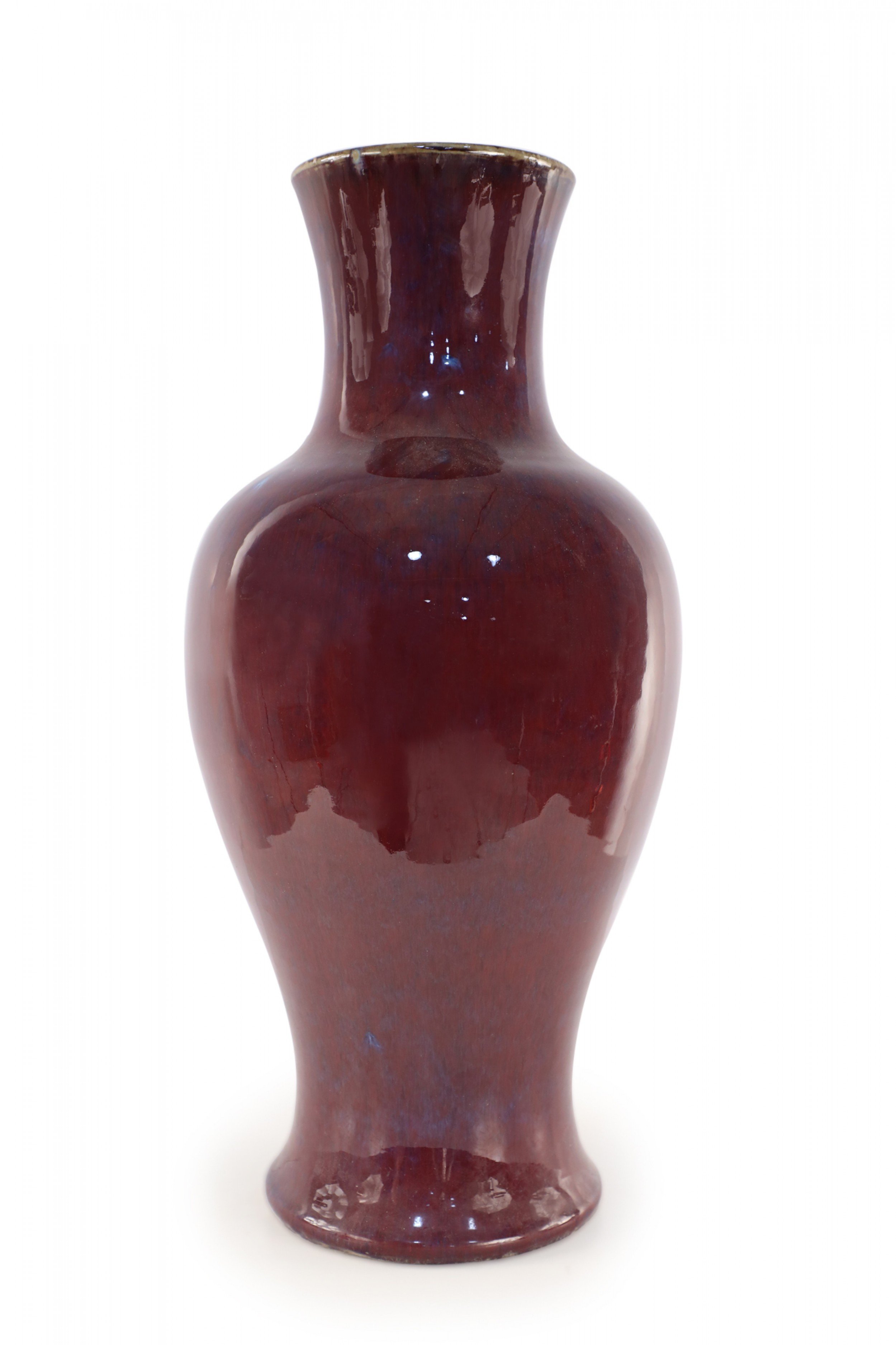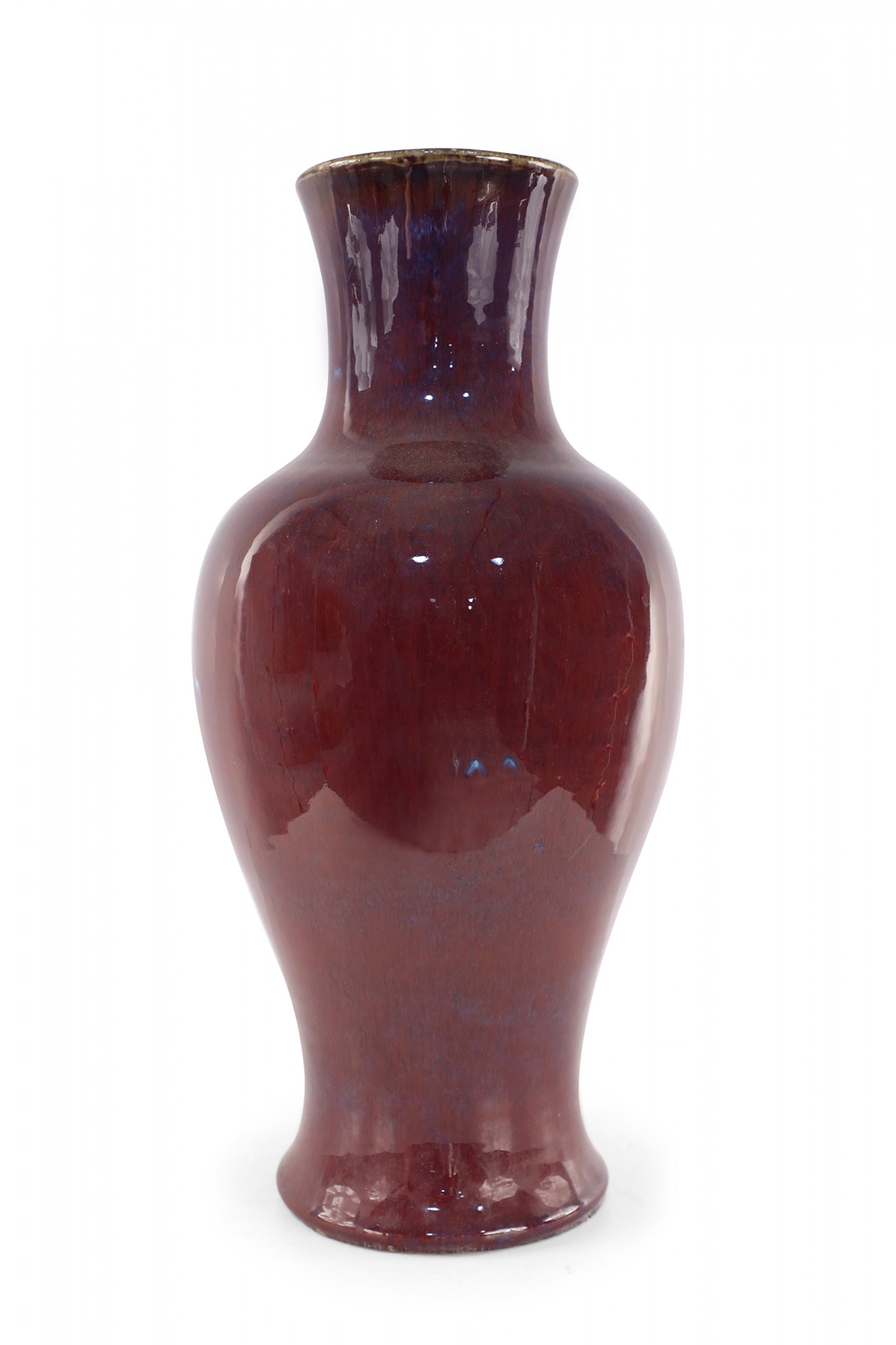 Chinese porcelain urn-form vase in a rich aubergine color overlayed with a barely visible blue base, creating highs and lows that add dimension to the finish and form.