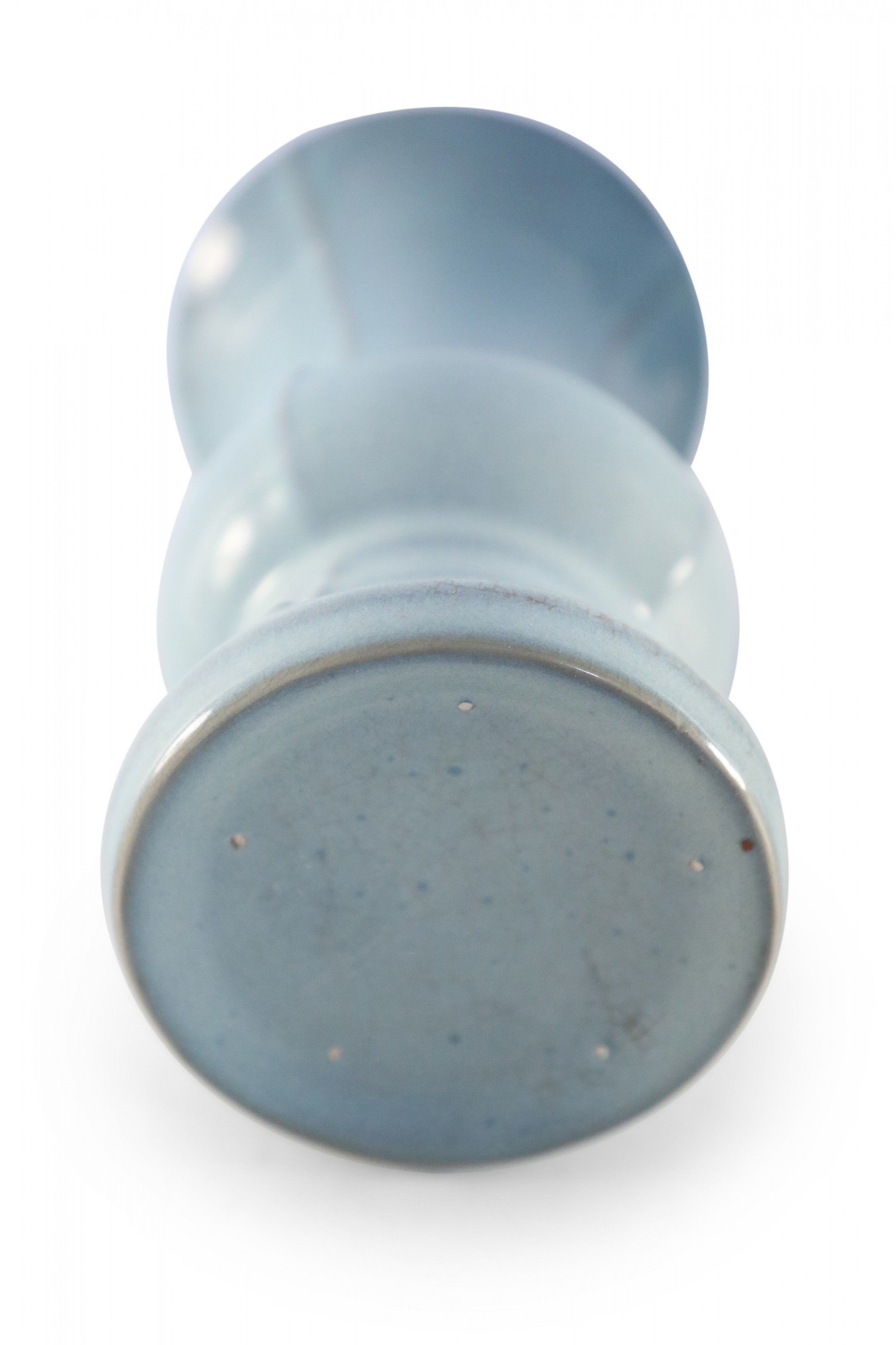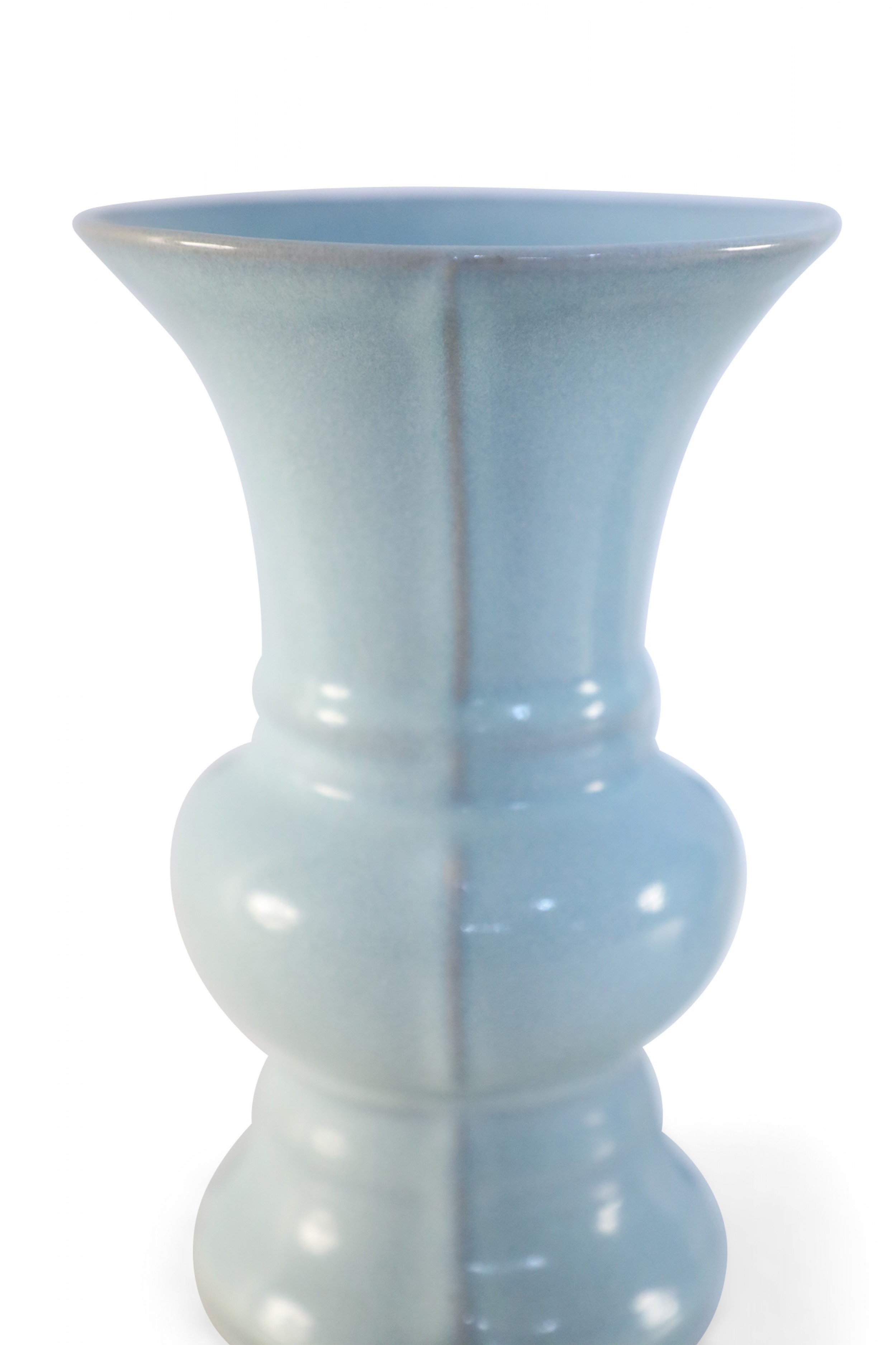 Antique Chinese (Late 19th Century) light blue porcelain vase with a beaker shape and crackled finish.