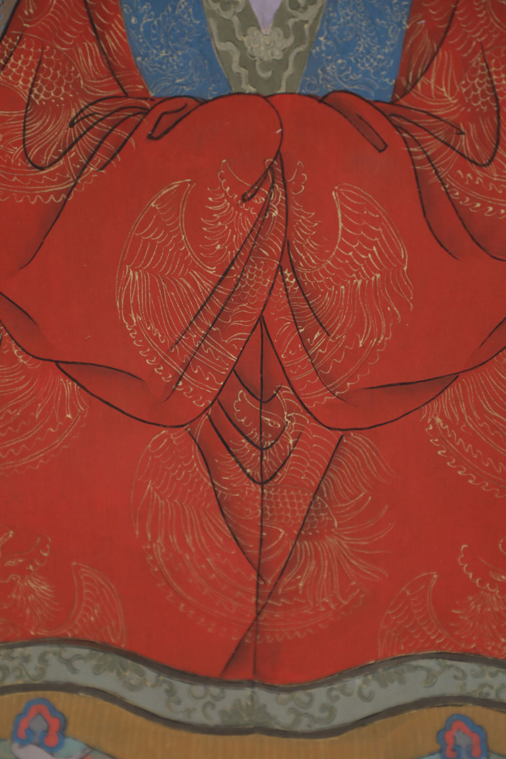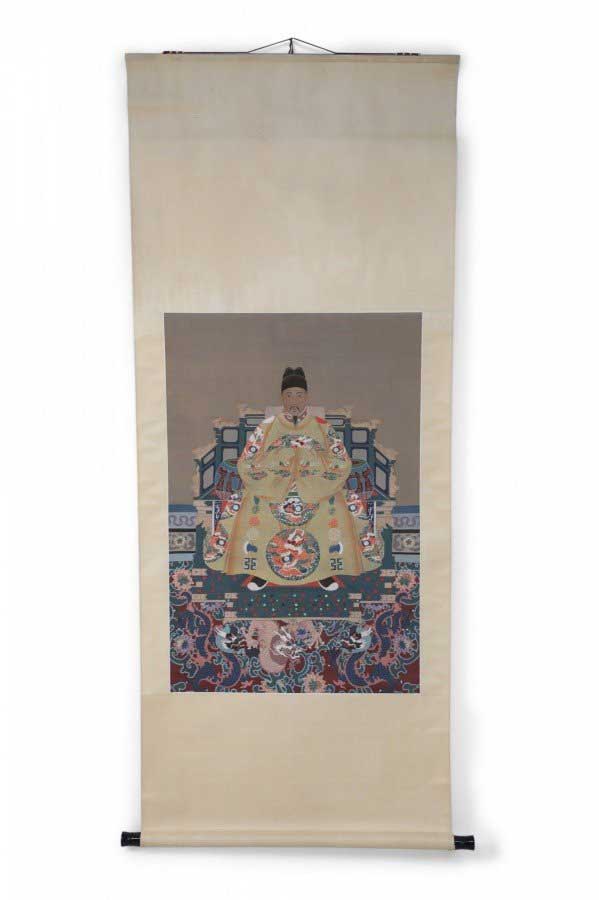 Chinese Ming Dynasty Style Paper and Silk King and Queen Portrait Hanging Scrolls