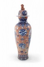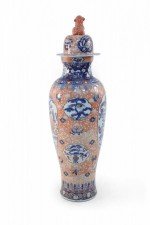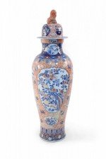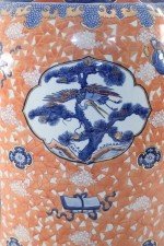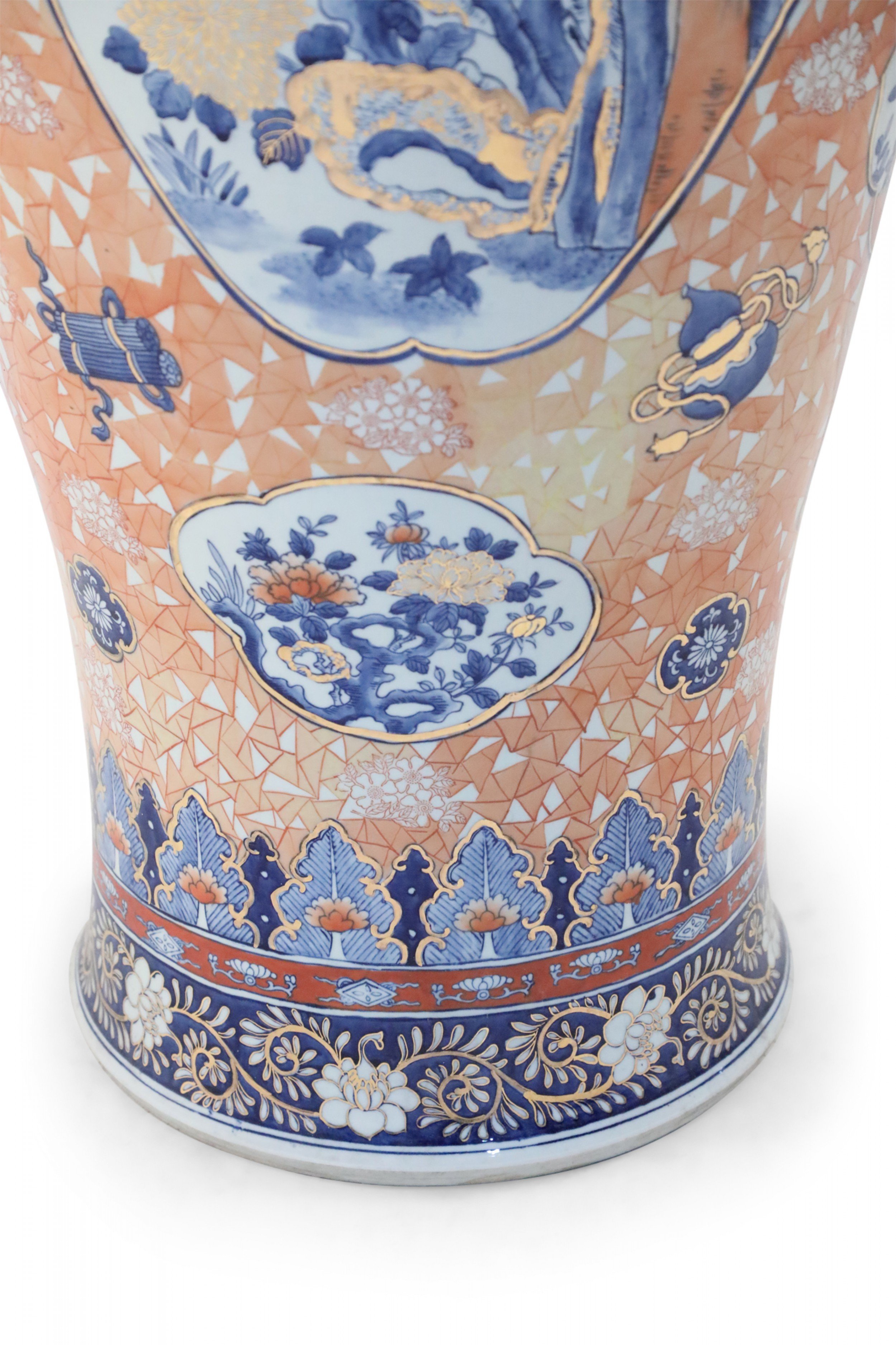 Chinese Monumental Imari-Style Lidded Light Orange Porcelain Urn