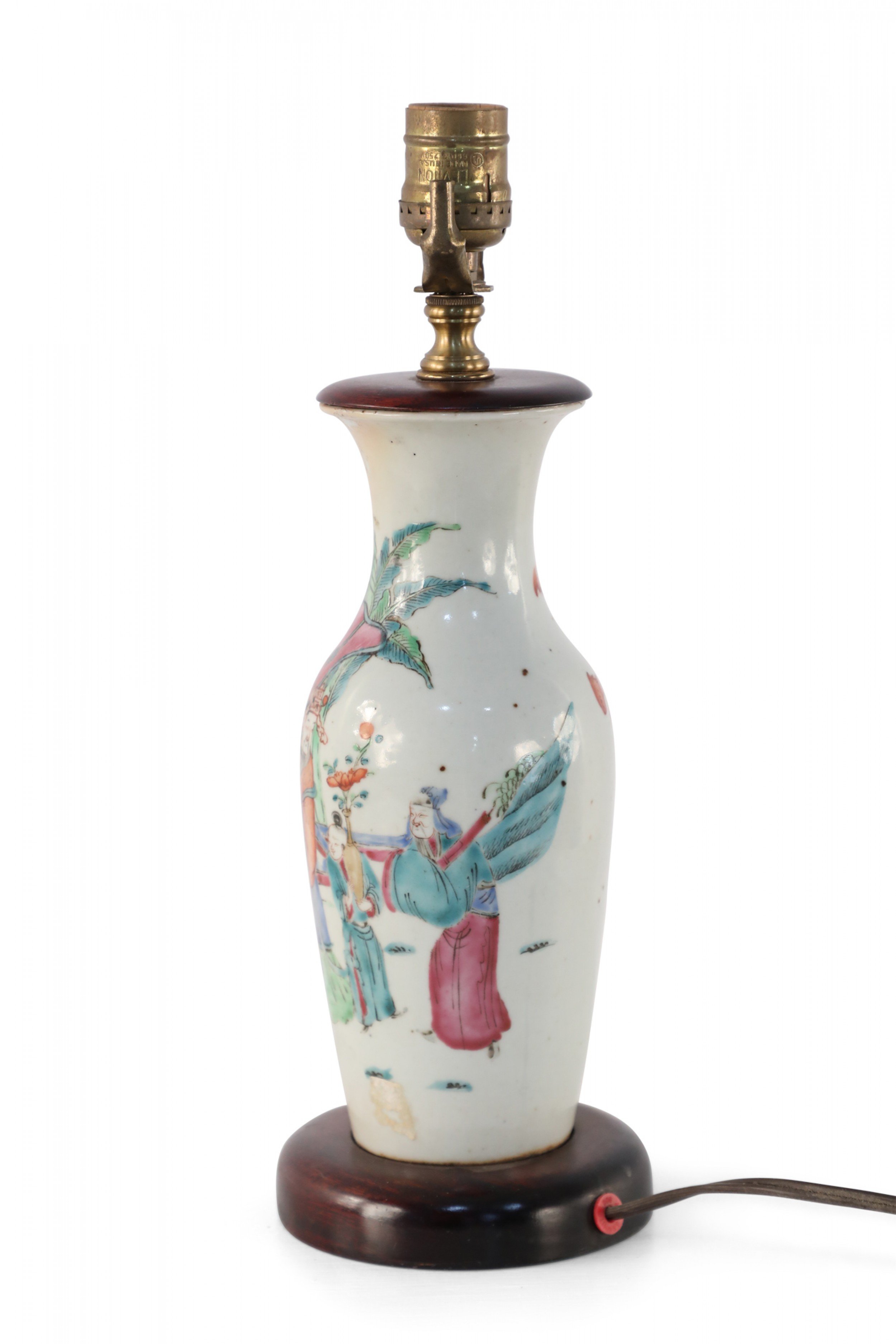 Chinese Off-White and Figurative Scene Porcelain Urn Table Lamp