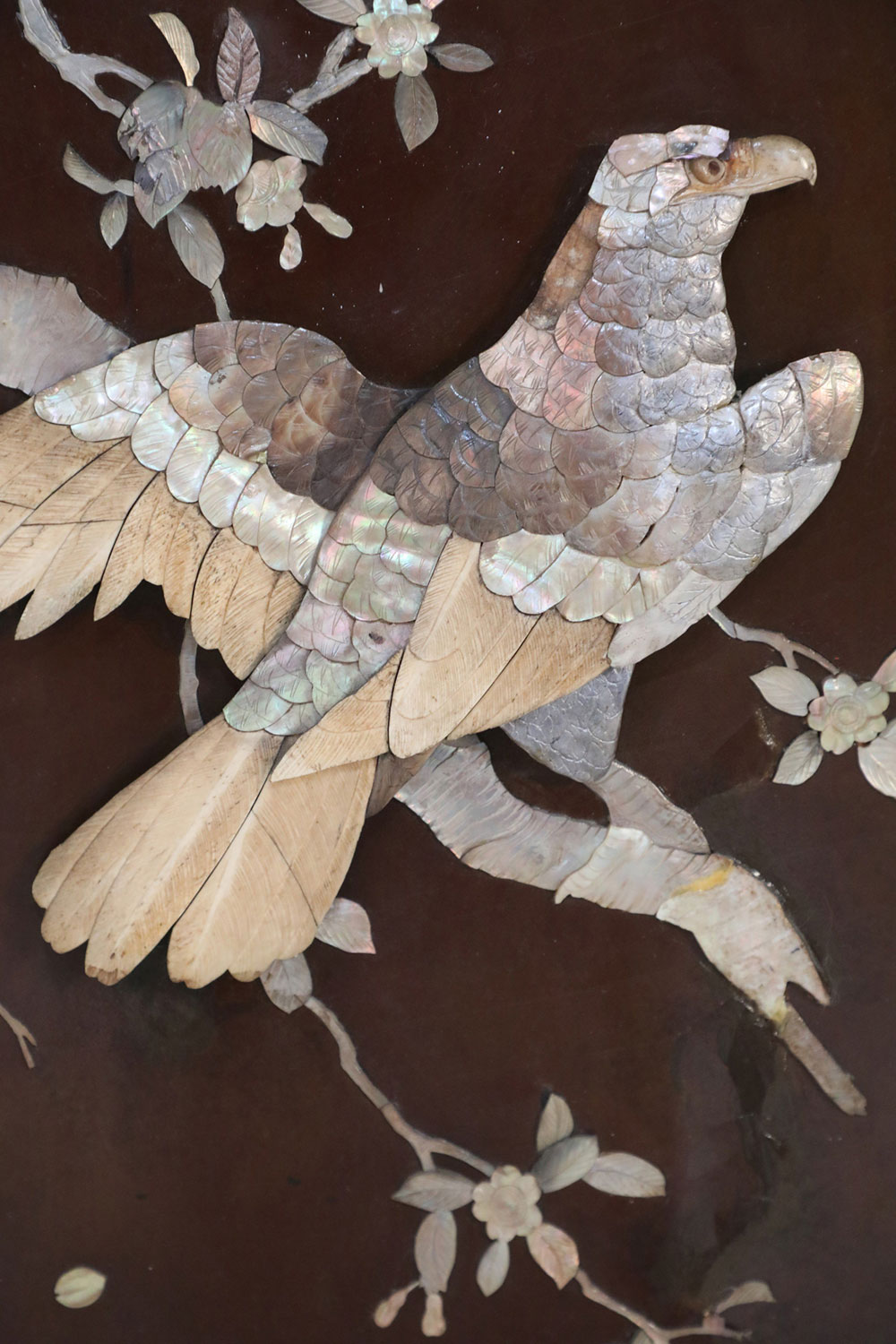 Chinese Panel Art Depicting Birds and Branches in Raised Mother of Pearl Pieces