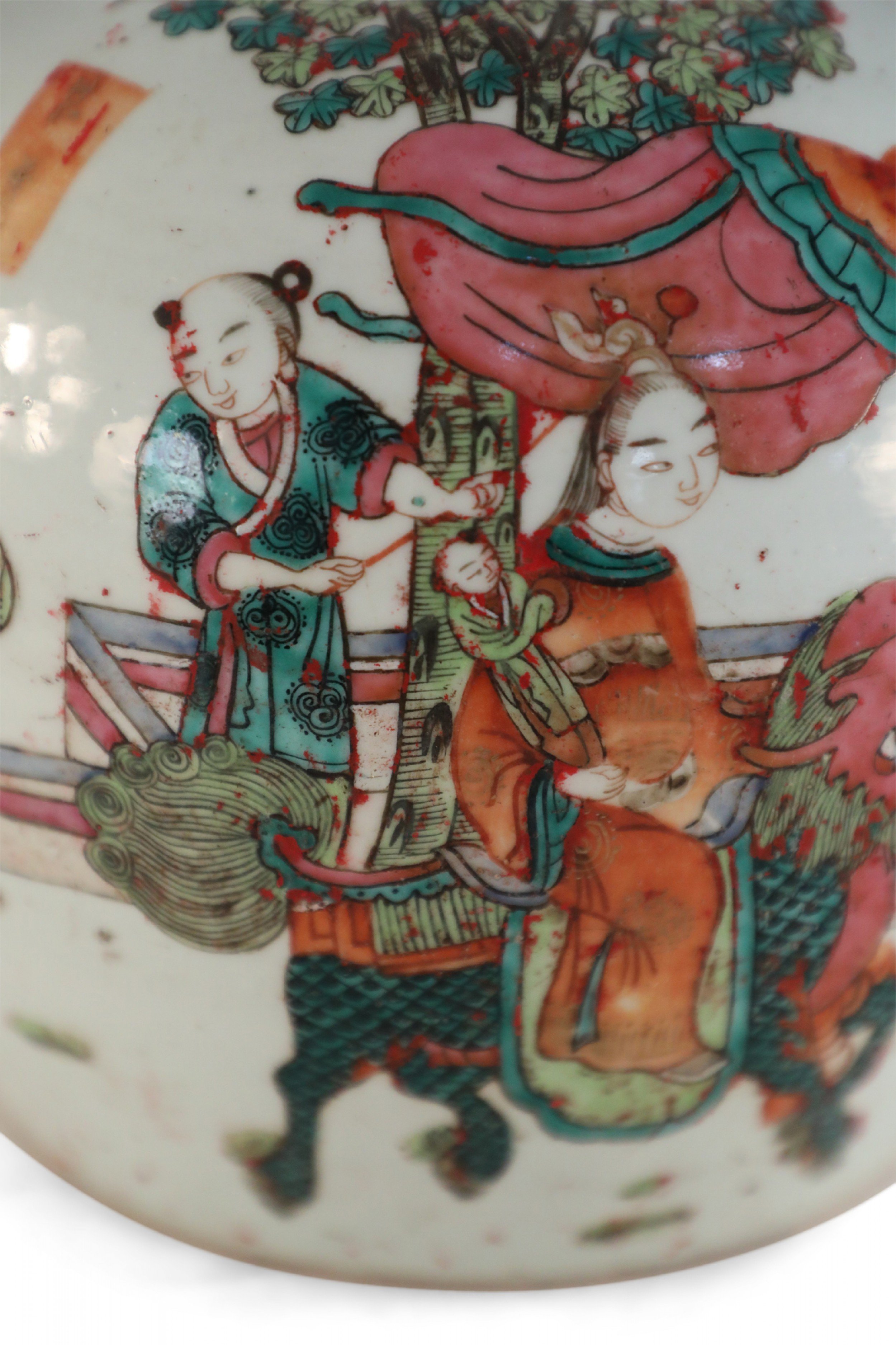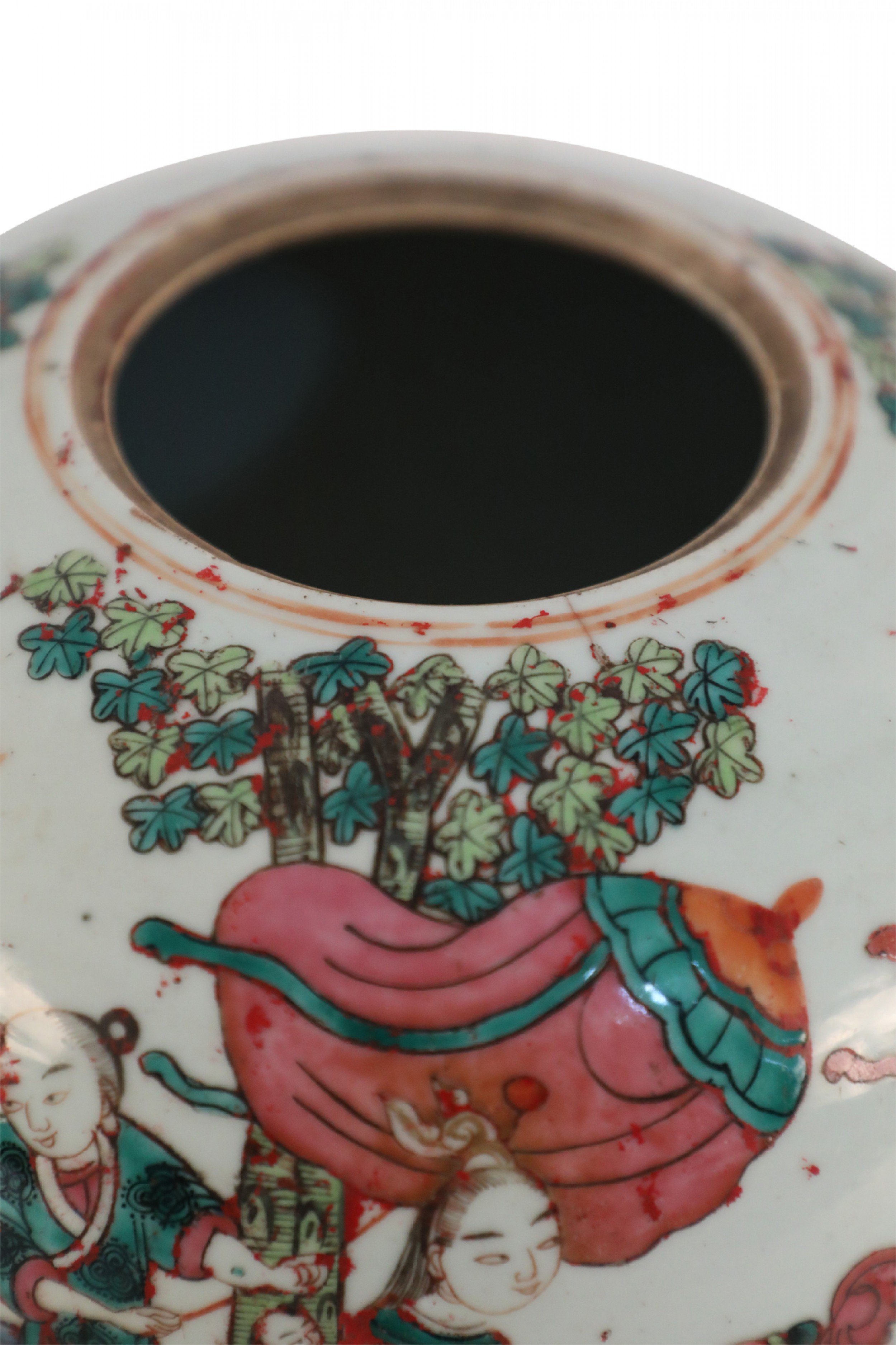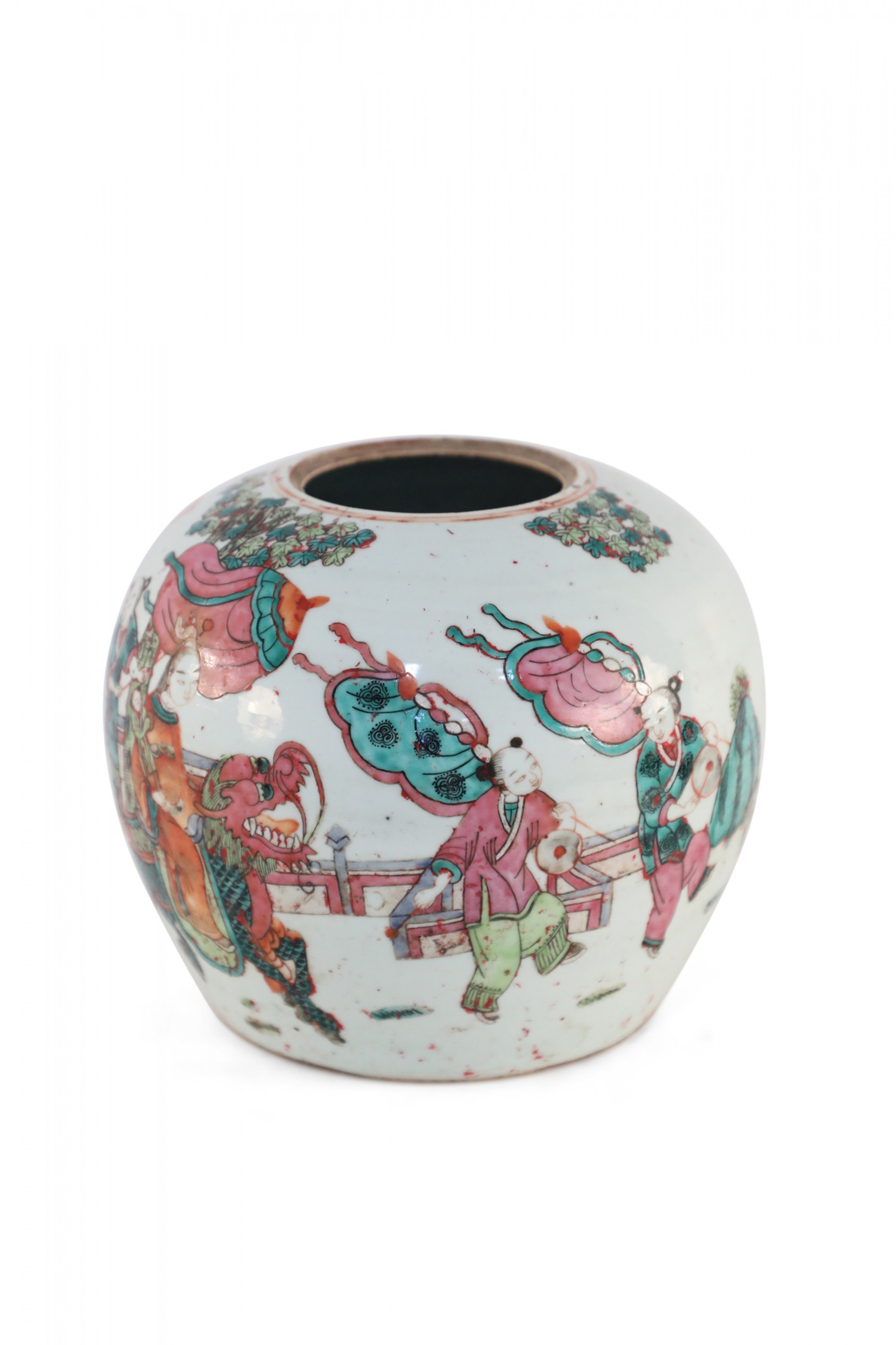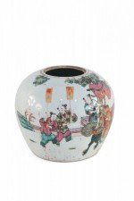 Chinese Parade Scene Rounded Porcelain Watermelon Jar