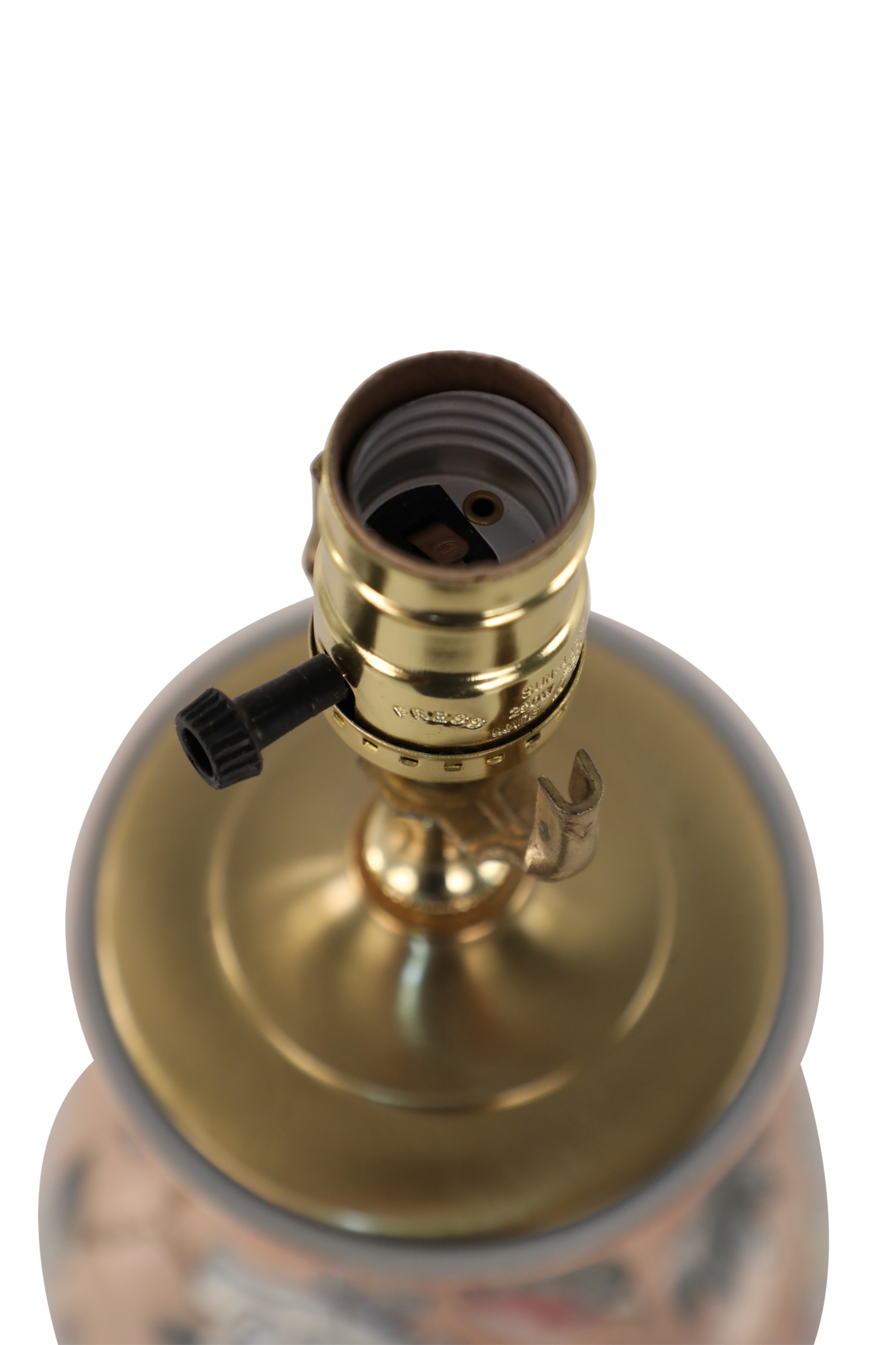 Style: Asian Materials & Techniques: Brass, metal, porcelain, wood Category: Lighting Condition: Ships without a shade.