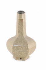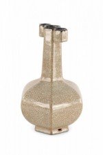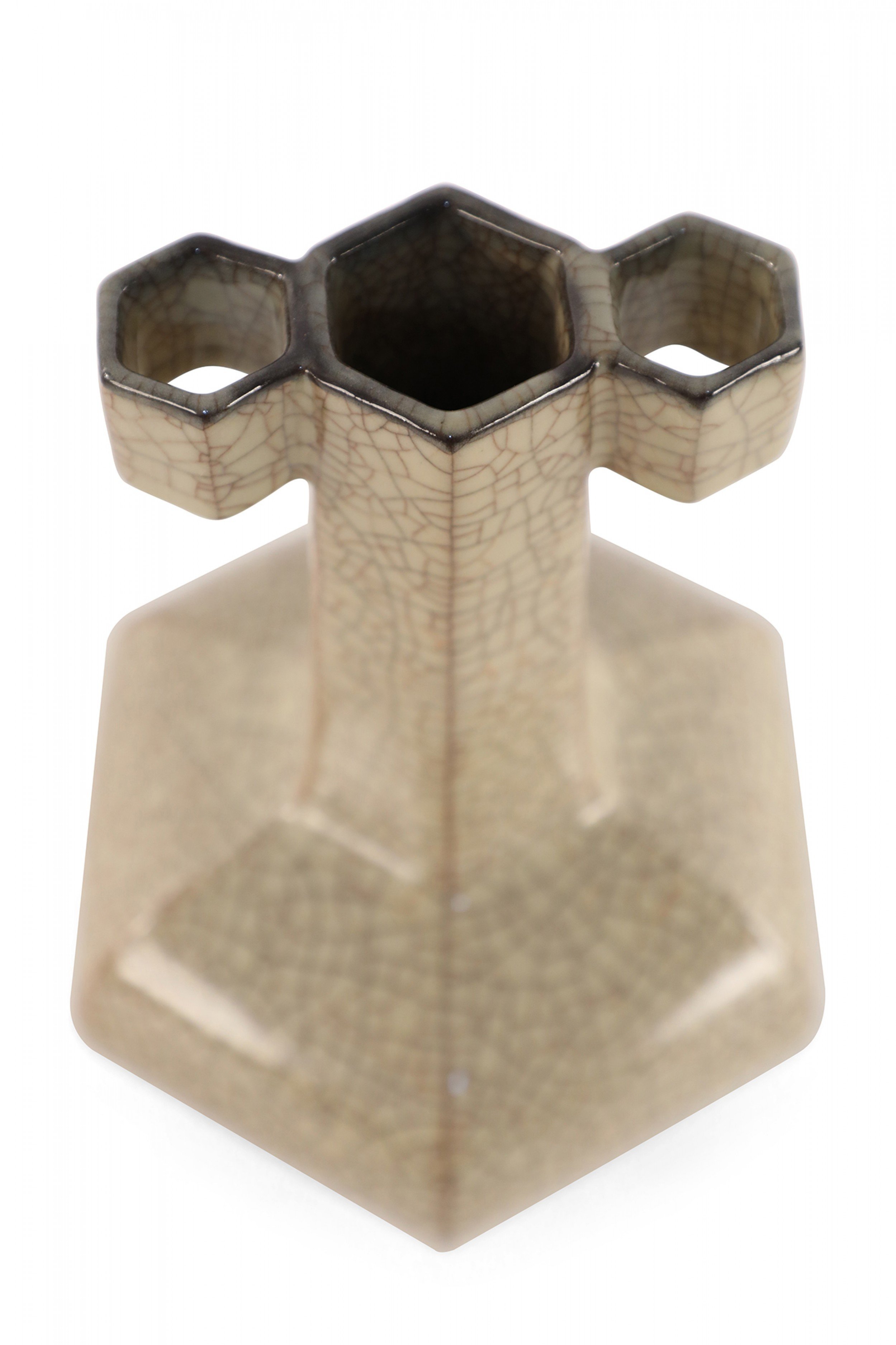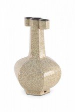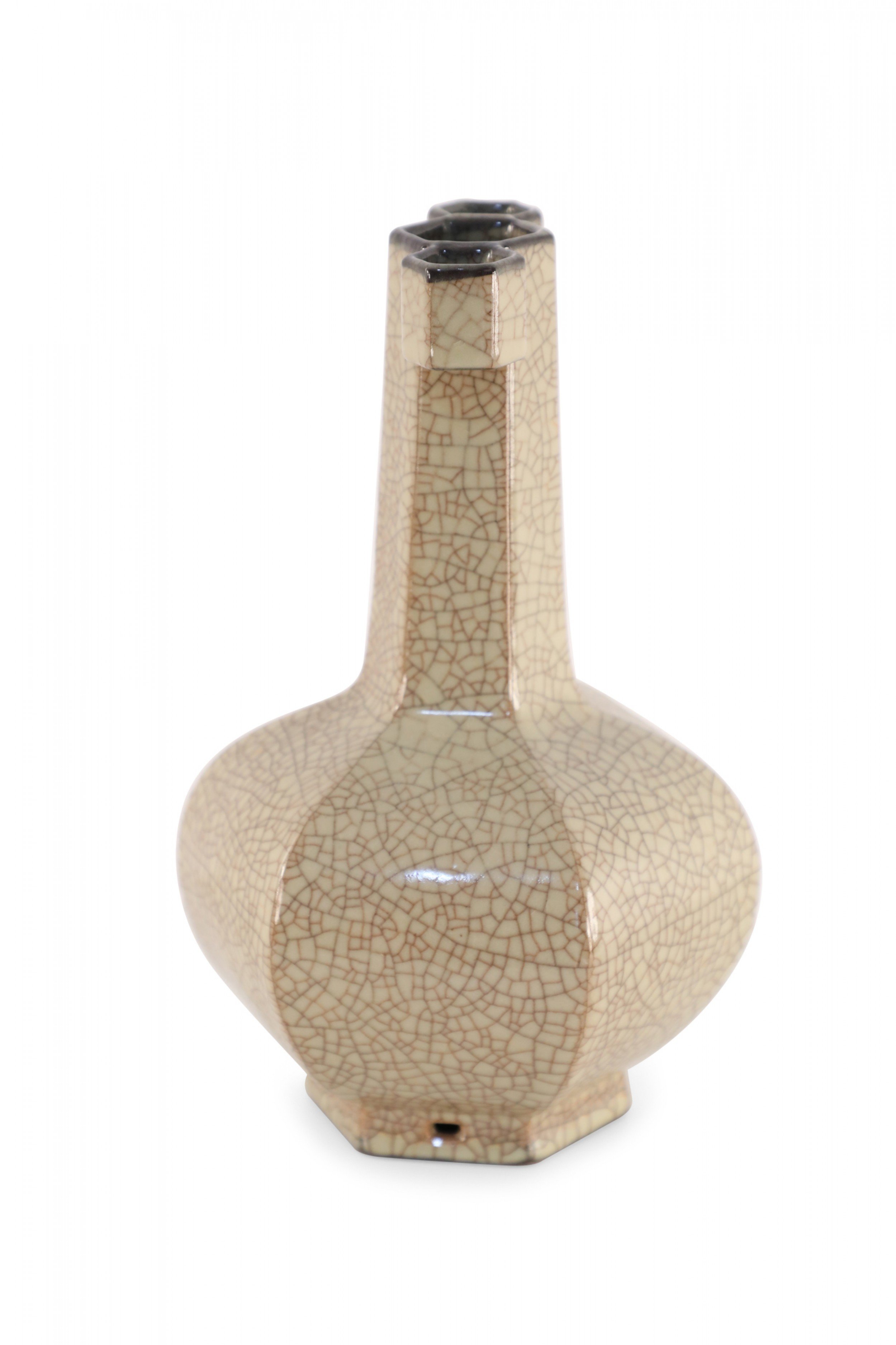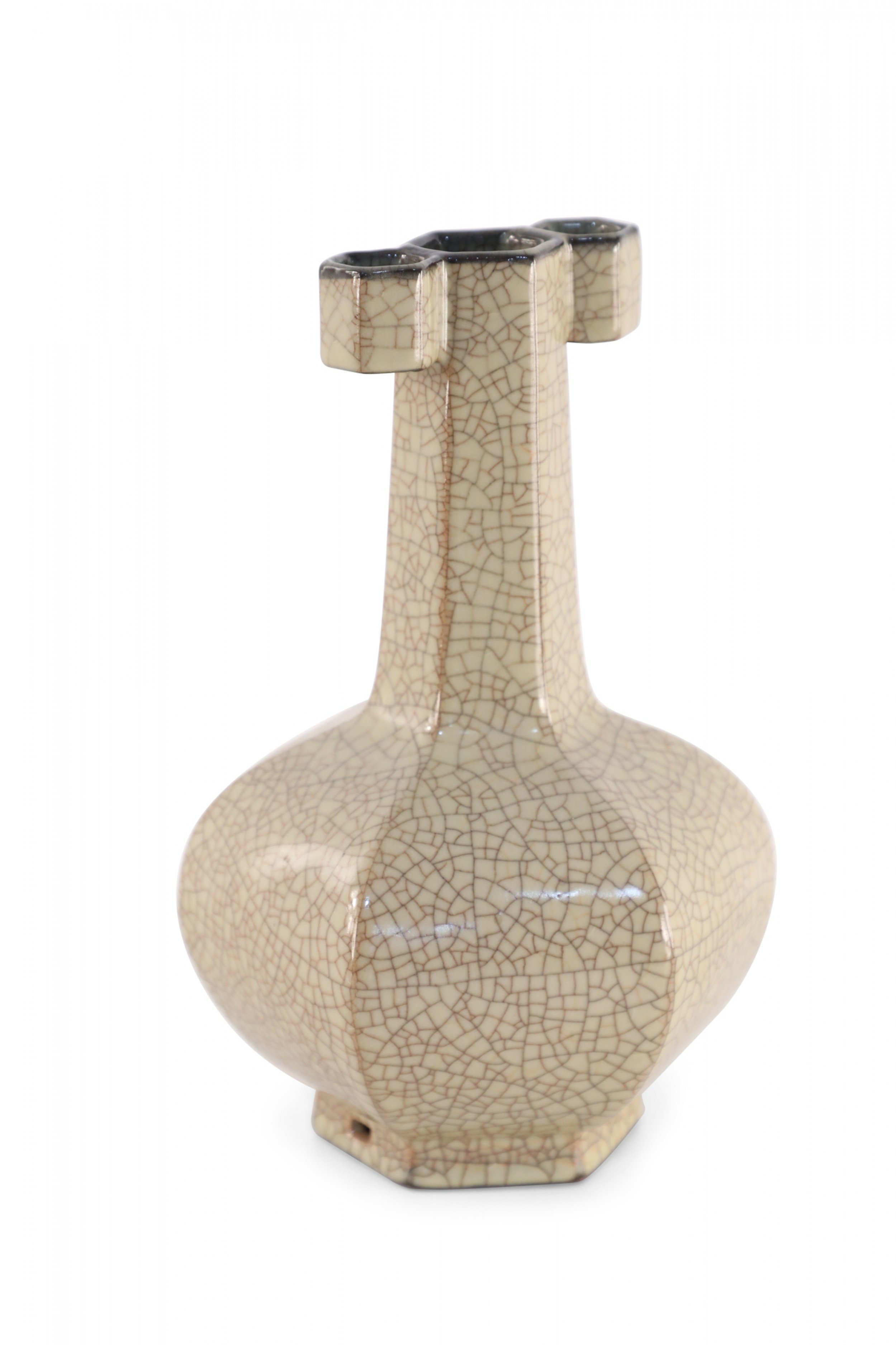 Chinese Six-Sided Beige Crackled Porcelain Vase