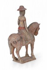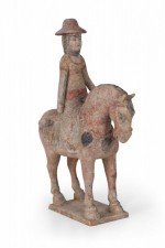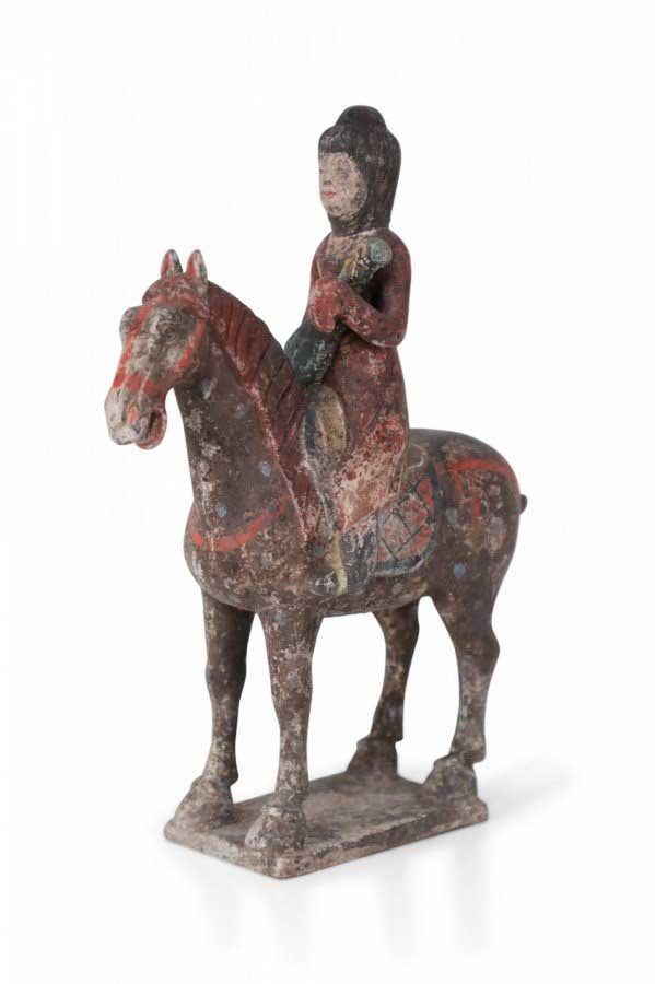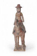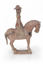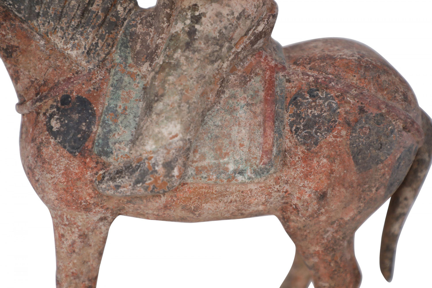 Chinese Tang Dynasty-Style Terra Cotta Horse with Rider Tomb Figure