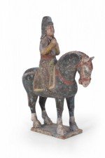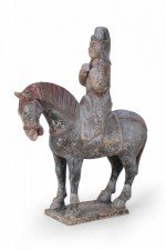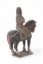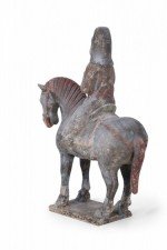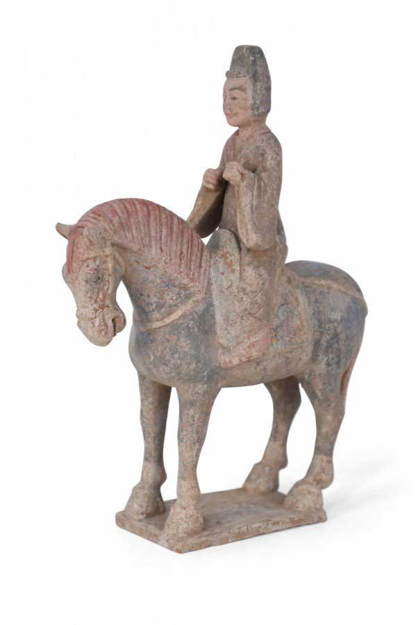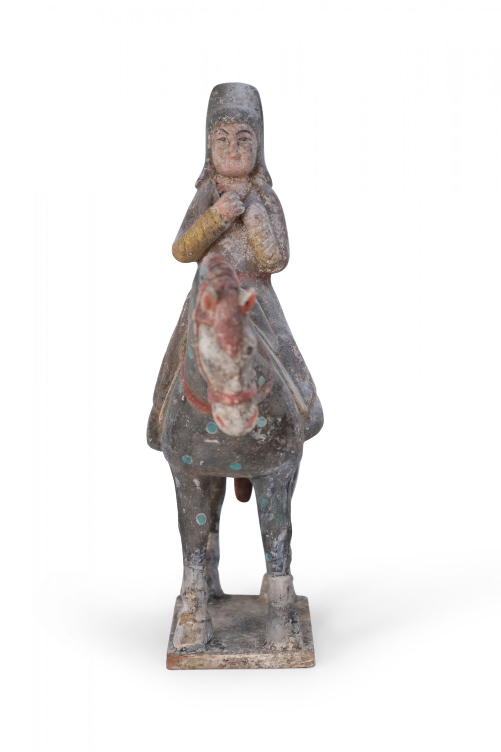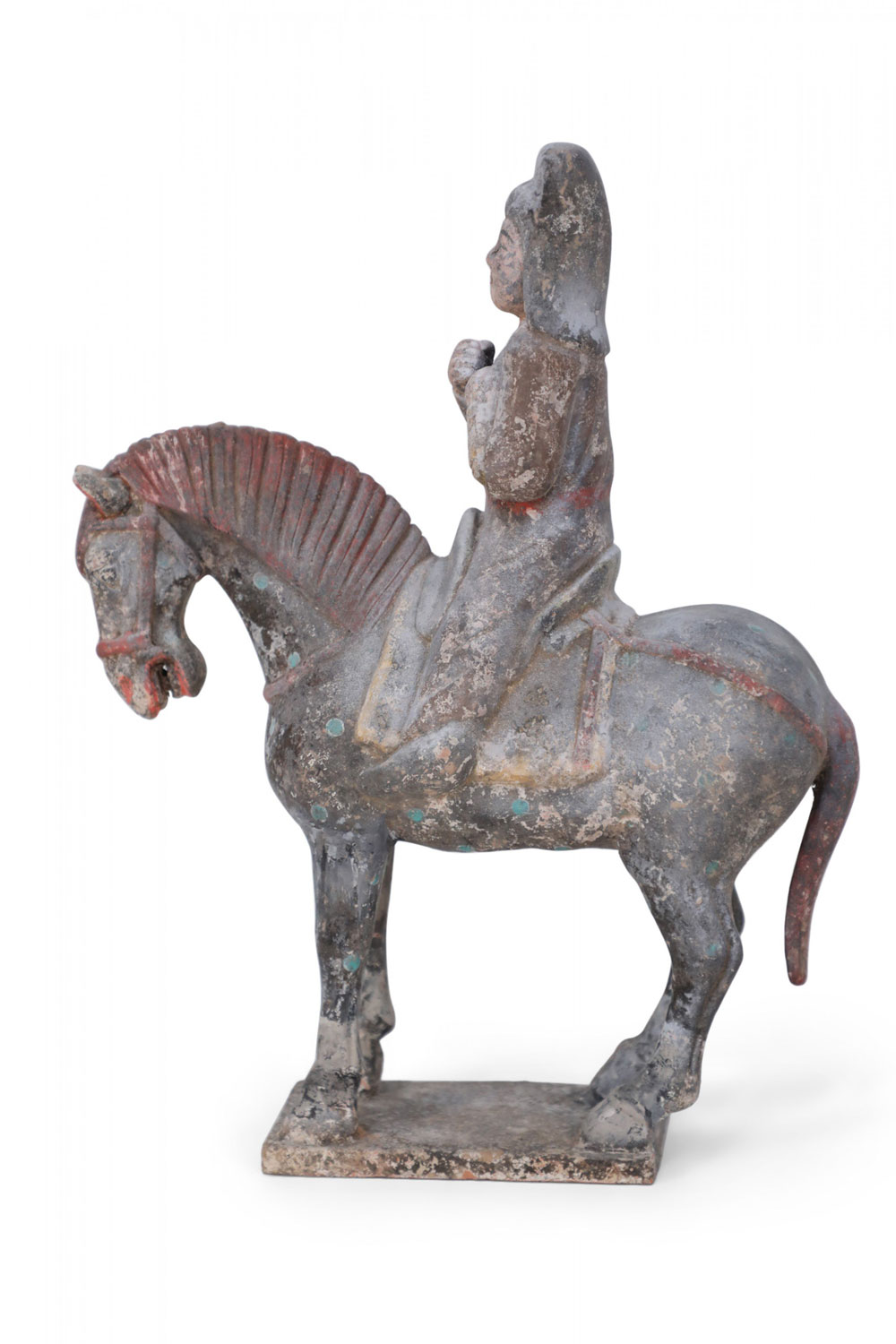 Chinese Tang Dynasty-Style Terra Cotta Horse with Rider Tomb Figure