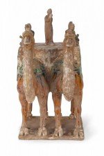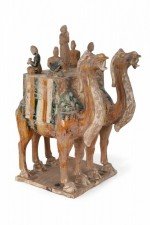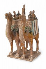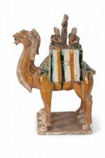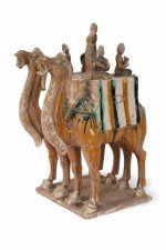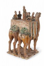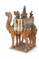 Chinese Tang Dynasty-Style Sancai Glazed Camels with Musicians Tomb Figure