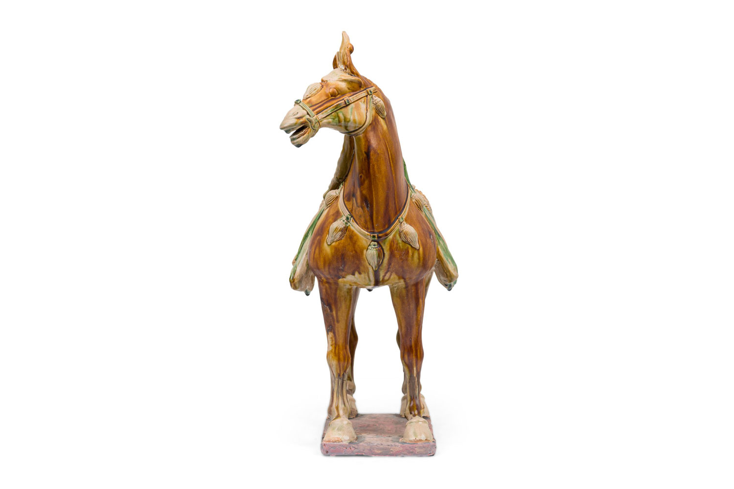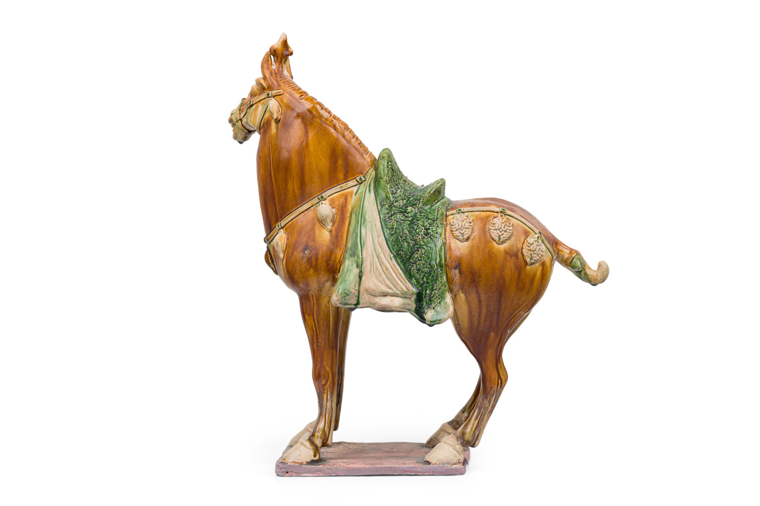 Chinese Tang Dynasty-Style Sancai Glazed Terra Cotta Horse Tomb Figure