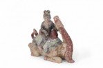 Chinese Tang Dynasty-Style Terra Cotta Woman and Kneeling Camel Tomb Figure