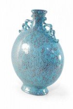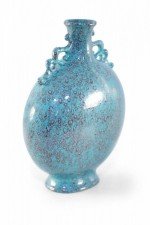 Chinese Teal and Red Crackle Porcelain Moon Flask Vase