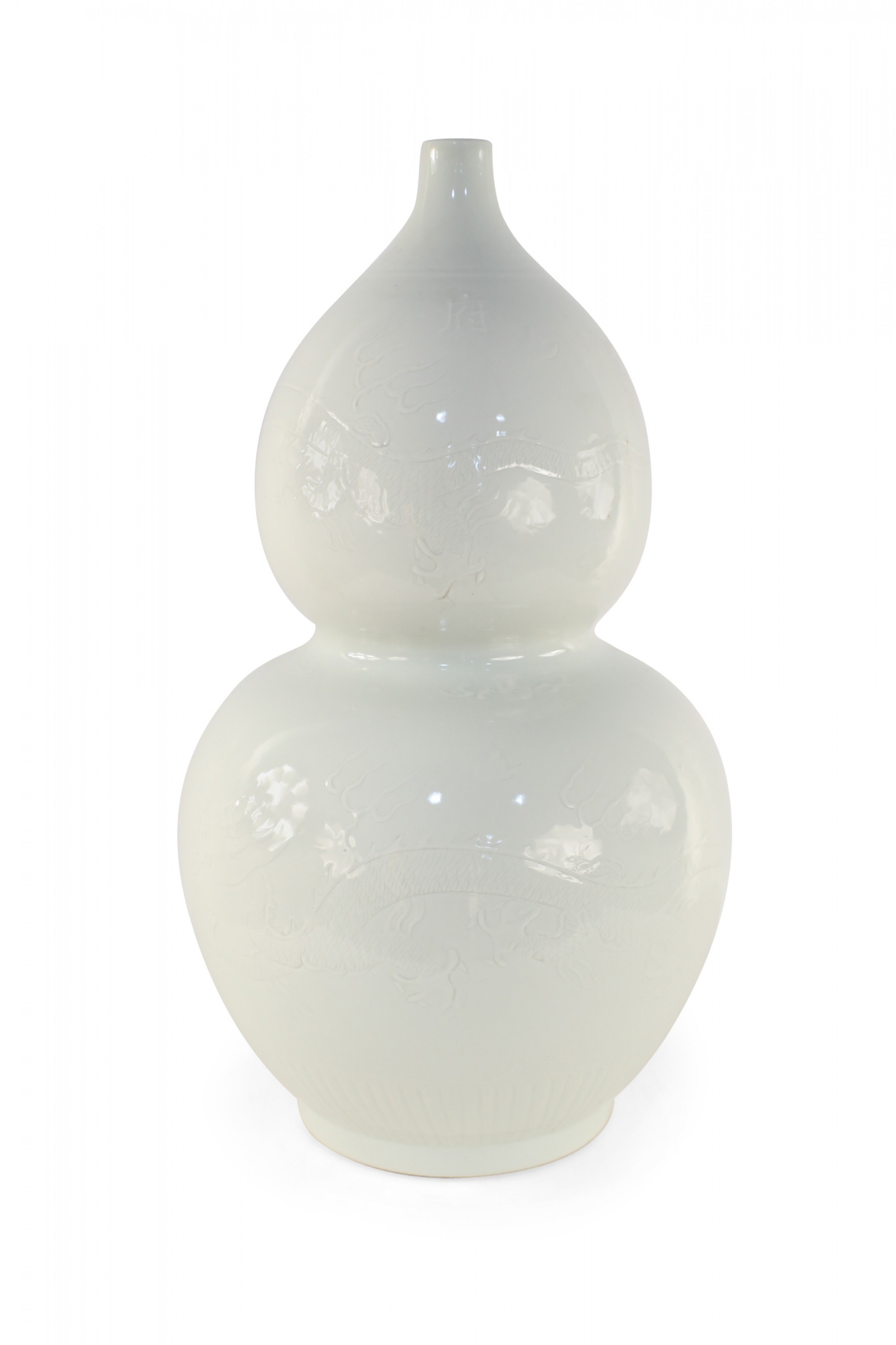 Chinese White Double Gourd Dragon Motif Porcelain Bottle