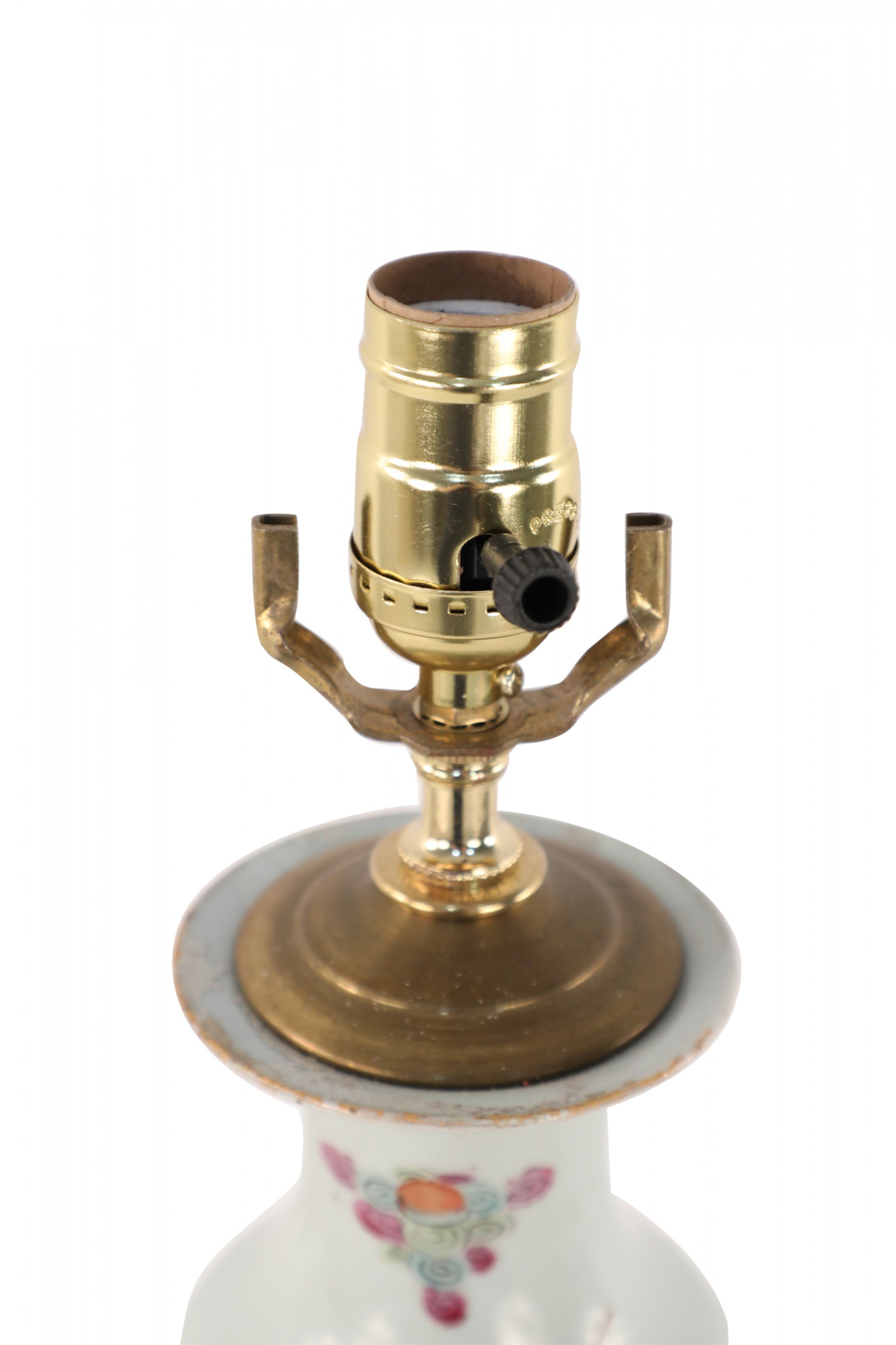Style: Asian Materials & Techniques: Brass, metal, porcelain, wood Category: Lighting Condition: Ships without a shade.
