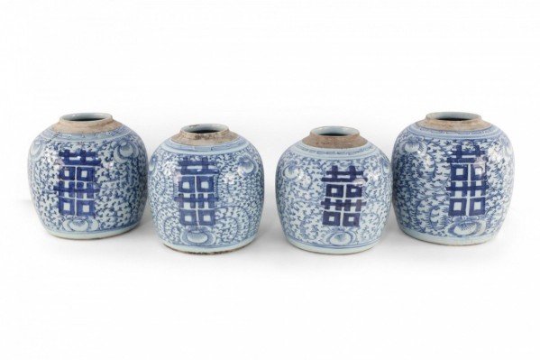 Style: Asian Materials & Techniques: Porcelain Category: Accessories/Décor/Bric-a-Brac Condition: Slight variations in height, one has crack, some glaze imperfections.
