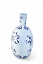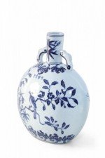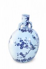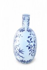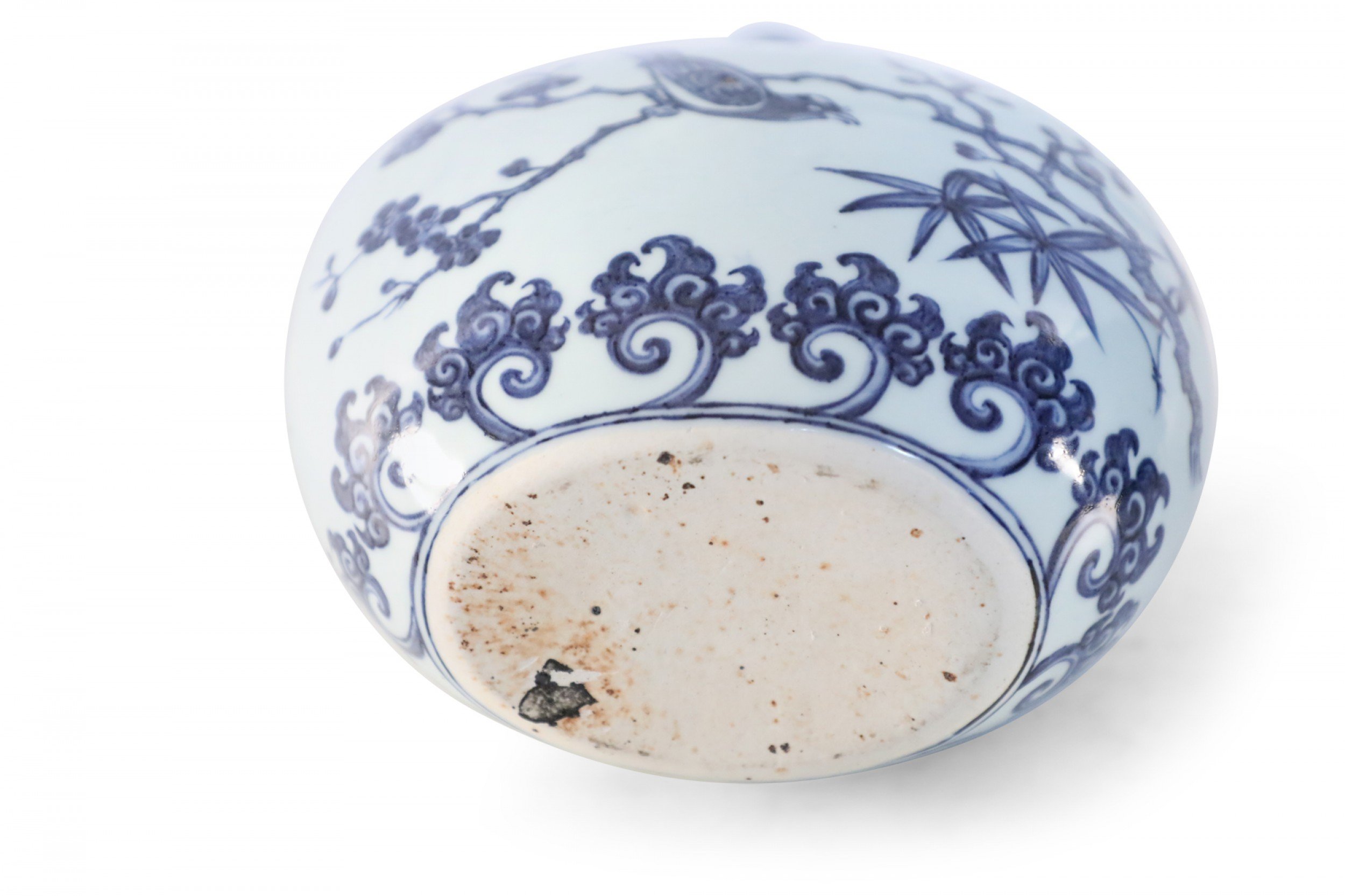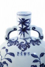 Chinese White and Blue Cherry Blossom Porcelain Moon Flask Vase