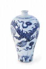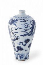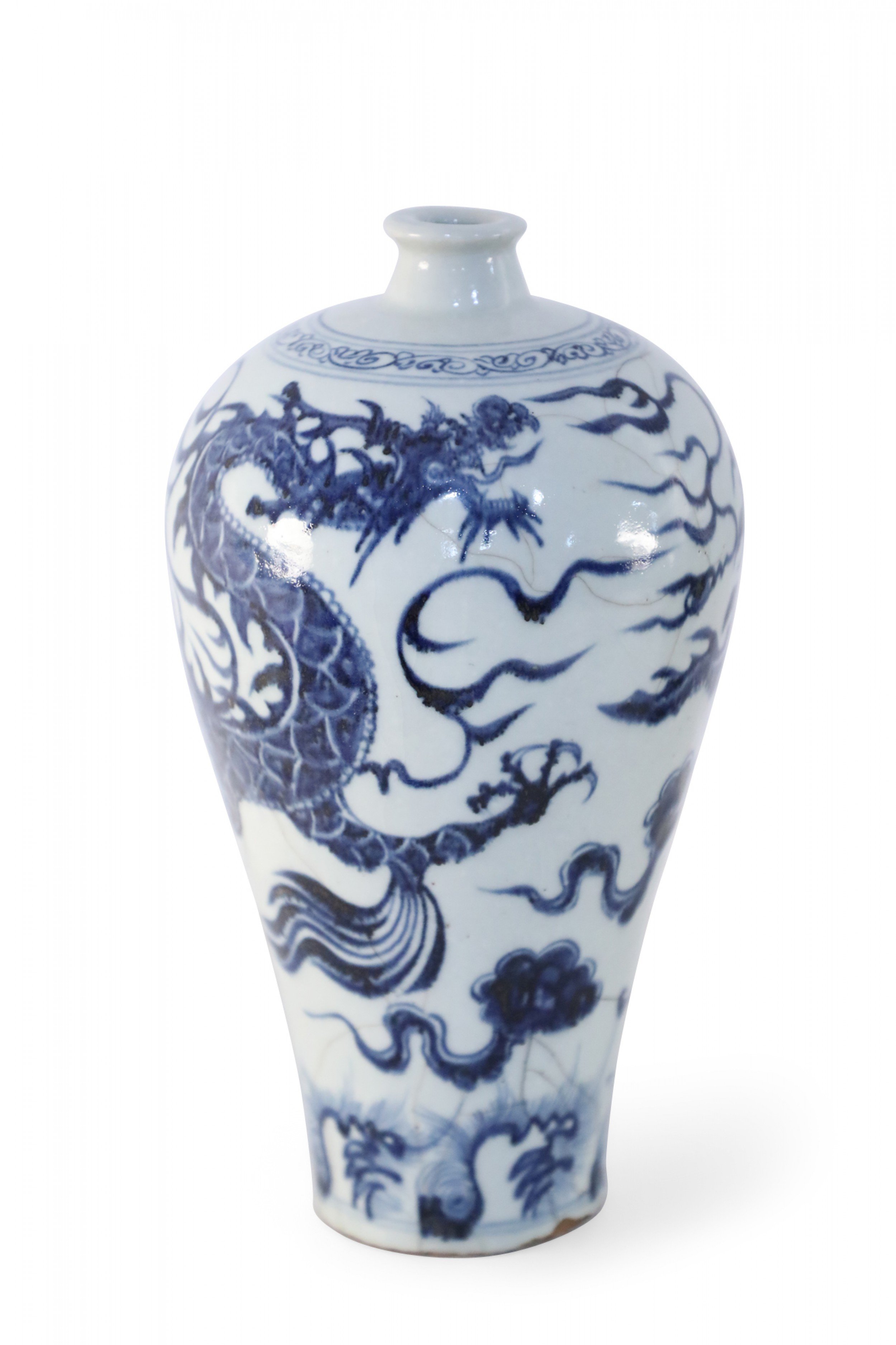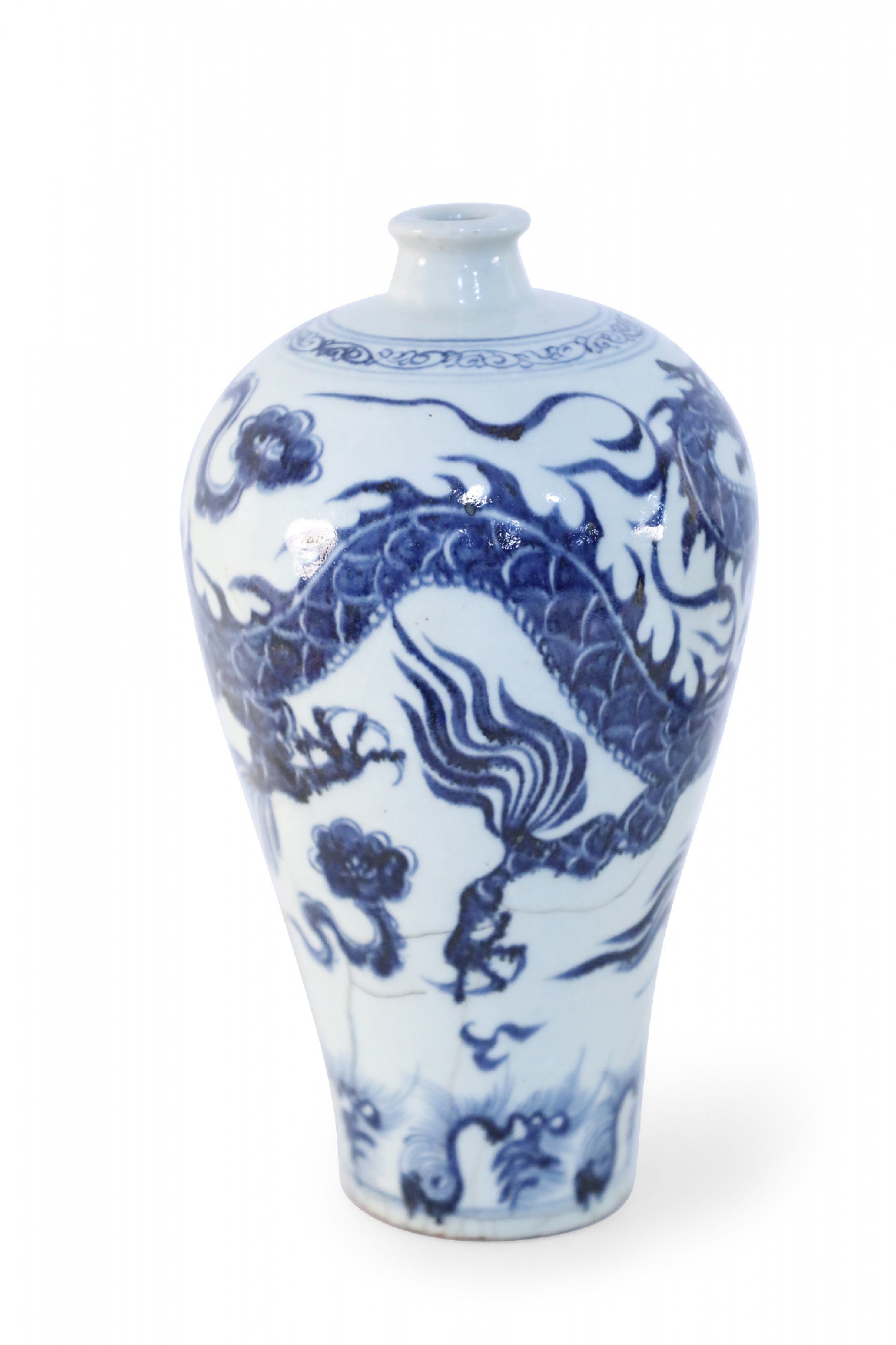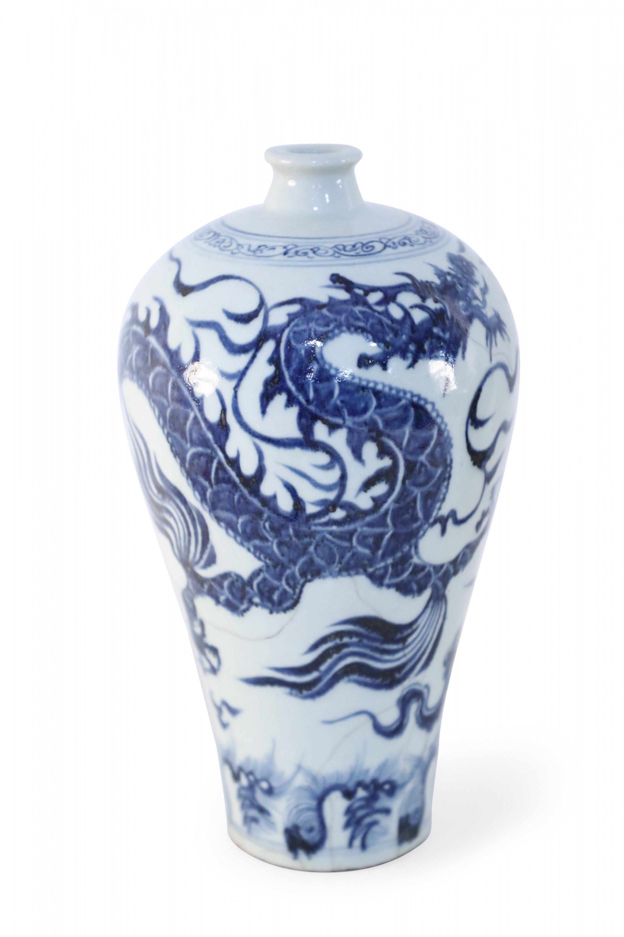 Chinese White and Blue Dragon Design Porcelain Meiping Vase