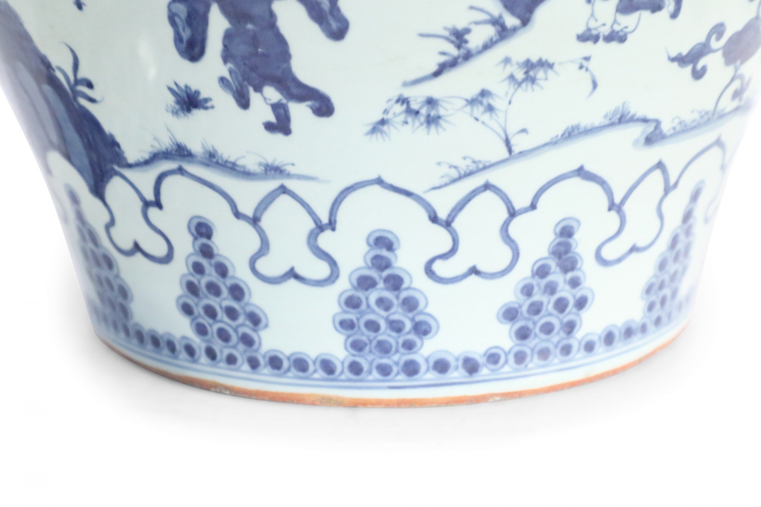 Chinese White and Blue Figurative Porcelain Ginger Jar
