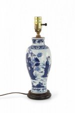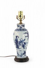 Chinese White and Blue Figurative Scene Porcelain Table Lamp