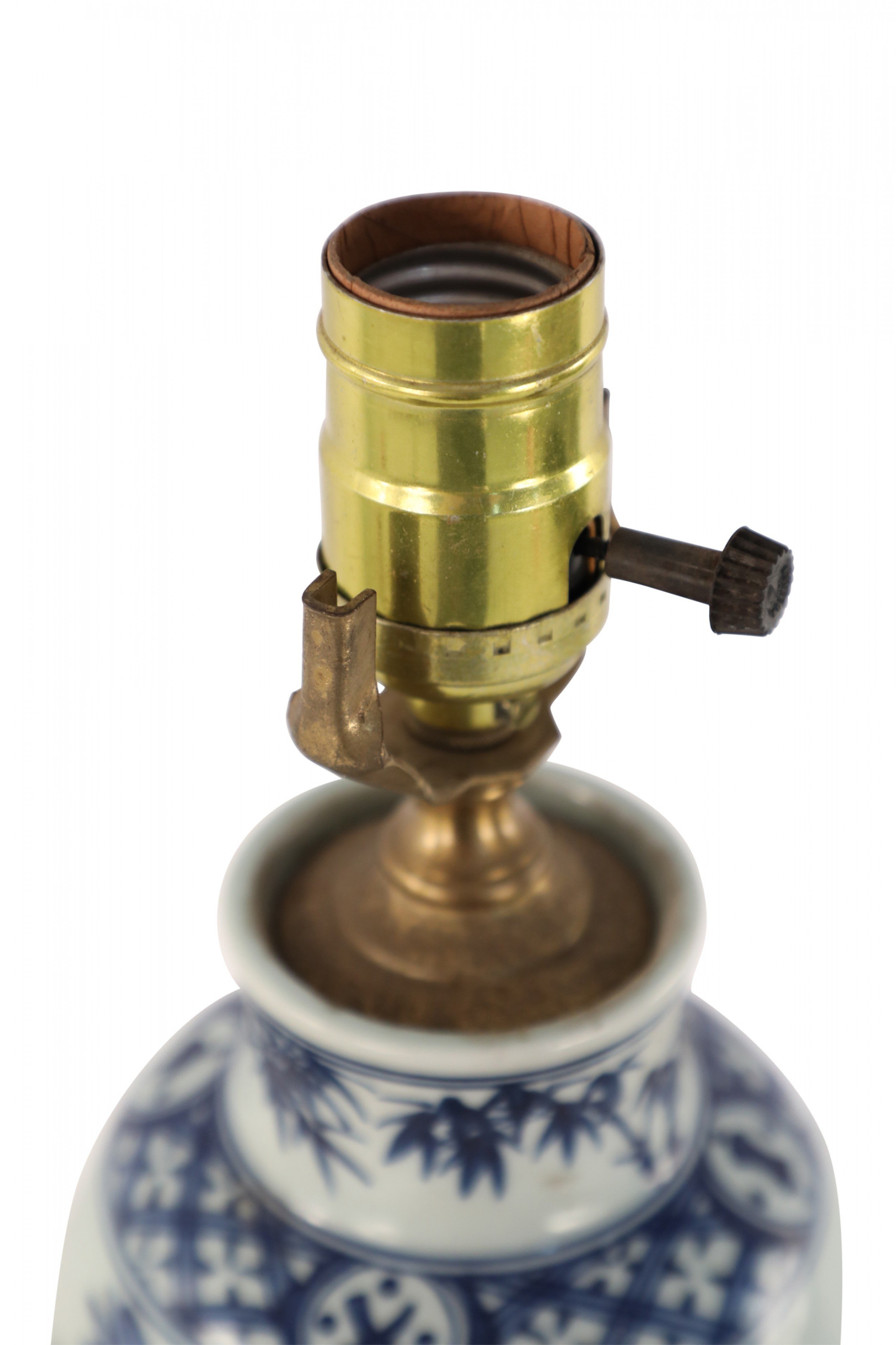 Style: Asian Materials & Techniques: Brass, metal, porcelain, wood Category: Lighting Condition: Ships without a shade.