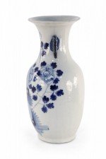 Chinese White and Blue Lily Pad and Floral Design Porcelain Urn