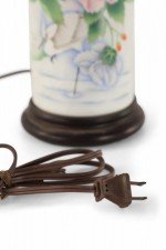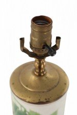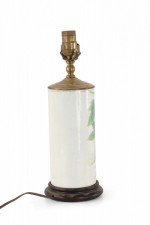 Style: Asian Materials & Techniques: Brass, metal, porcelain, wood Category: Lighting Condition: Ships without a shade.