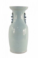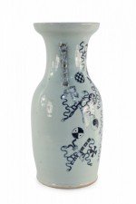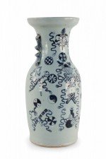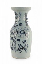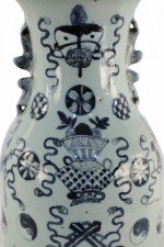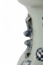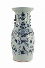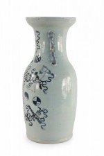 Chinese White and Navy Blue Symbol Patterned Porcelain Urn