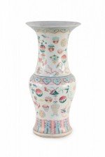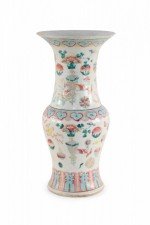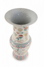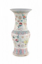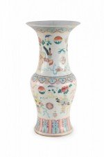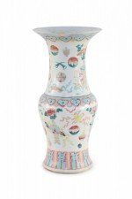 Chinese White and Pink, Blue and Yellow Bogu Pattern Porcelain Urn