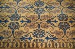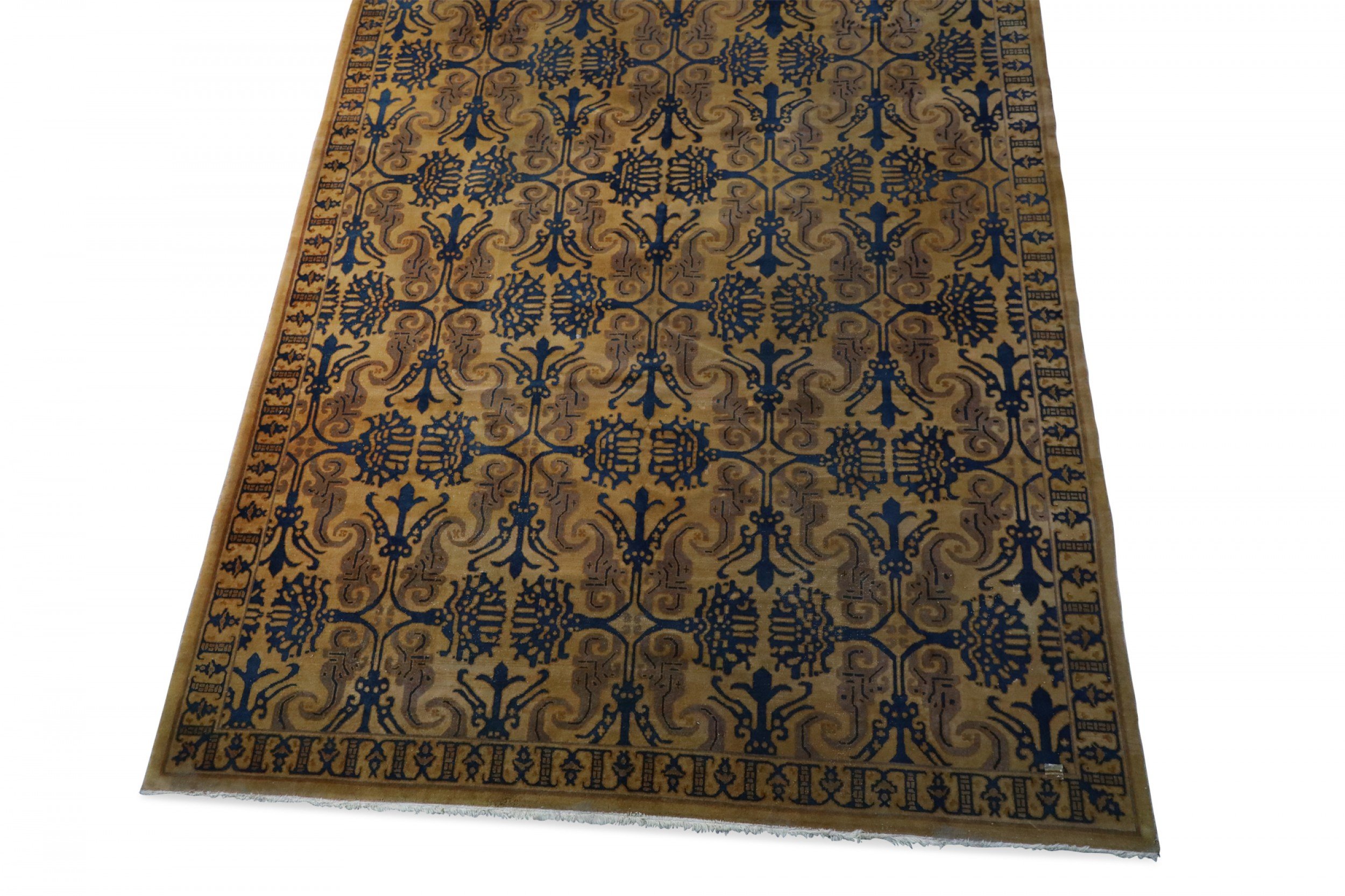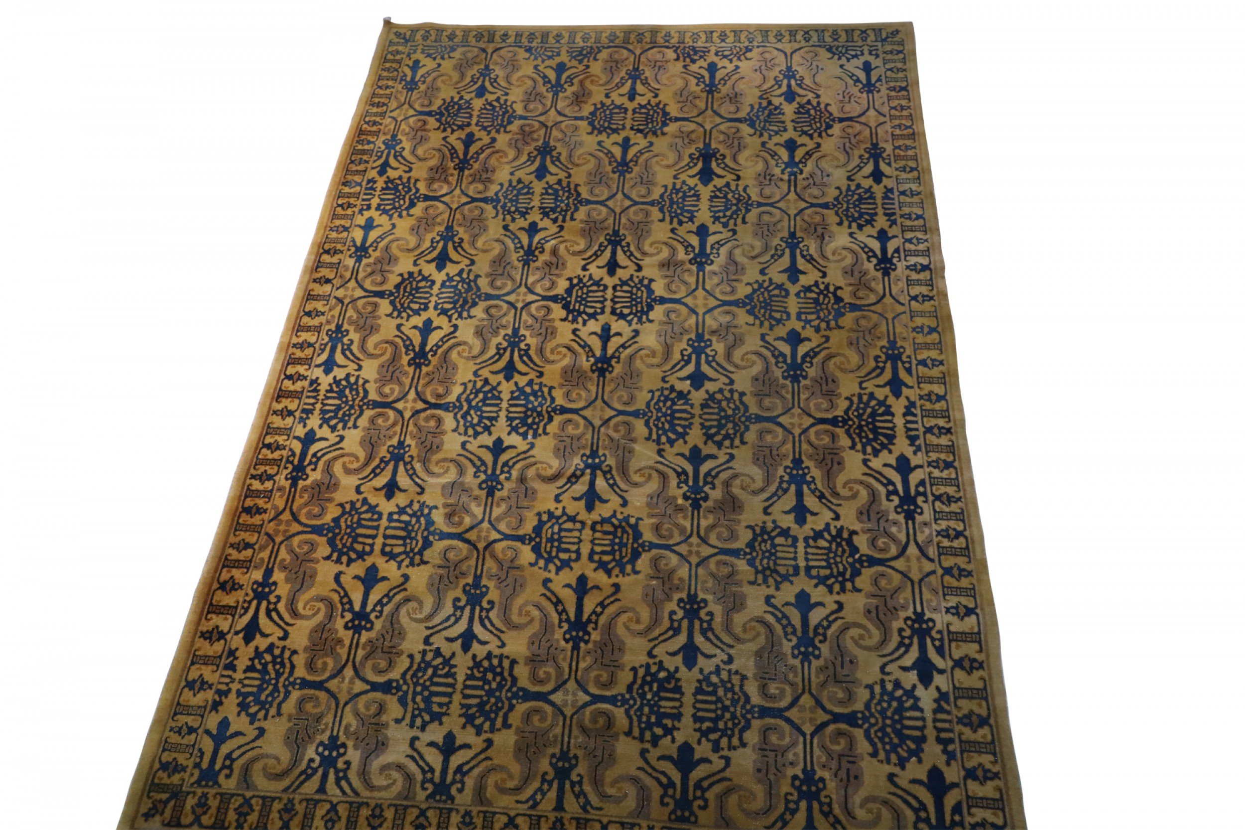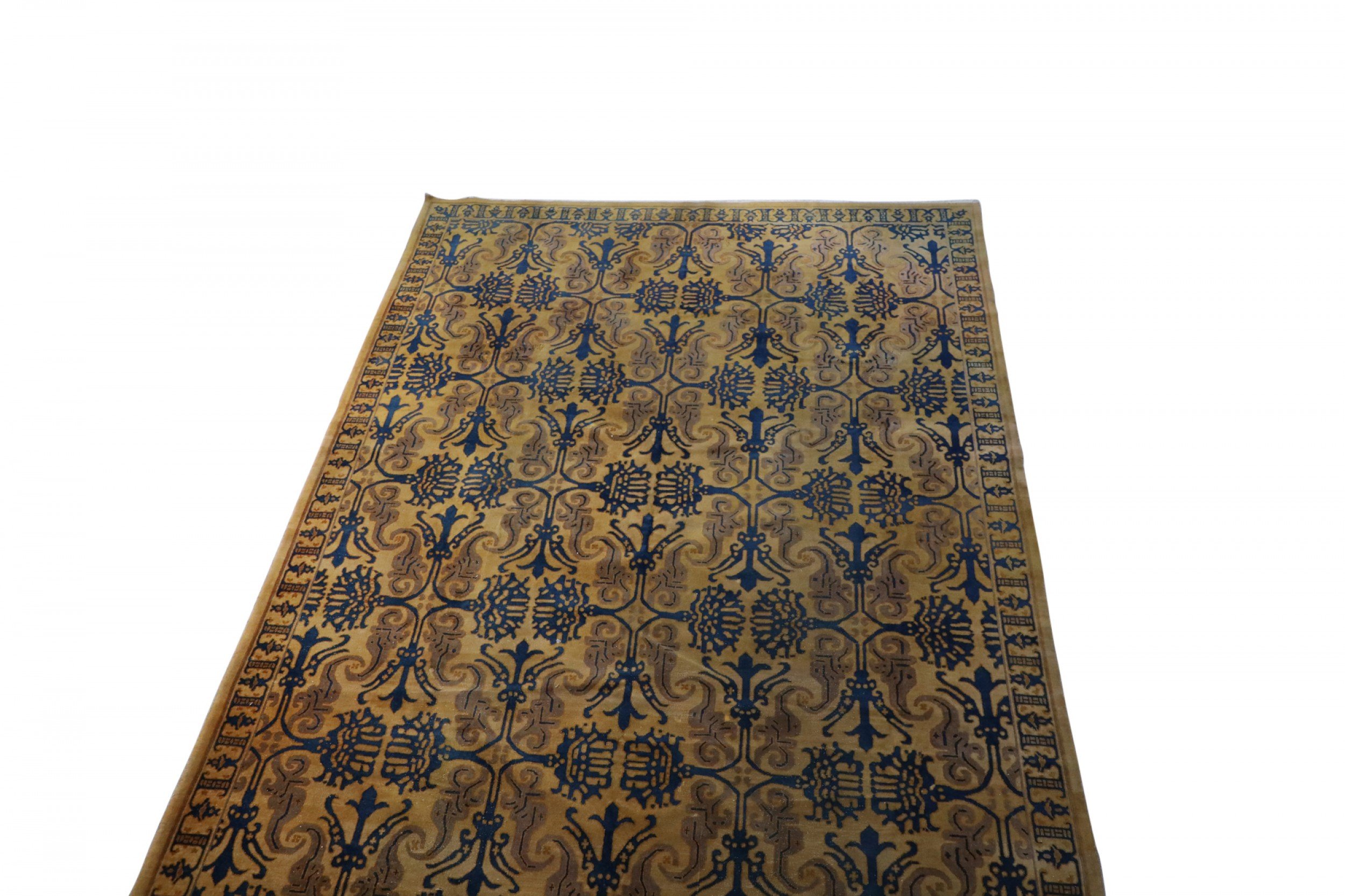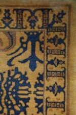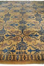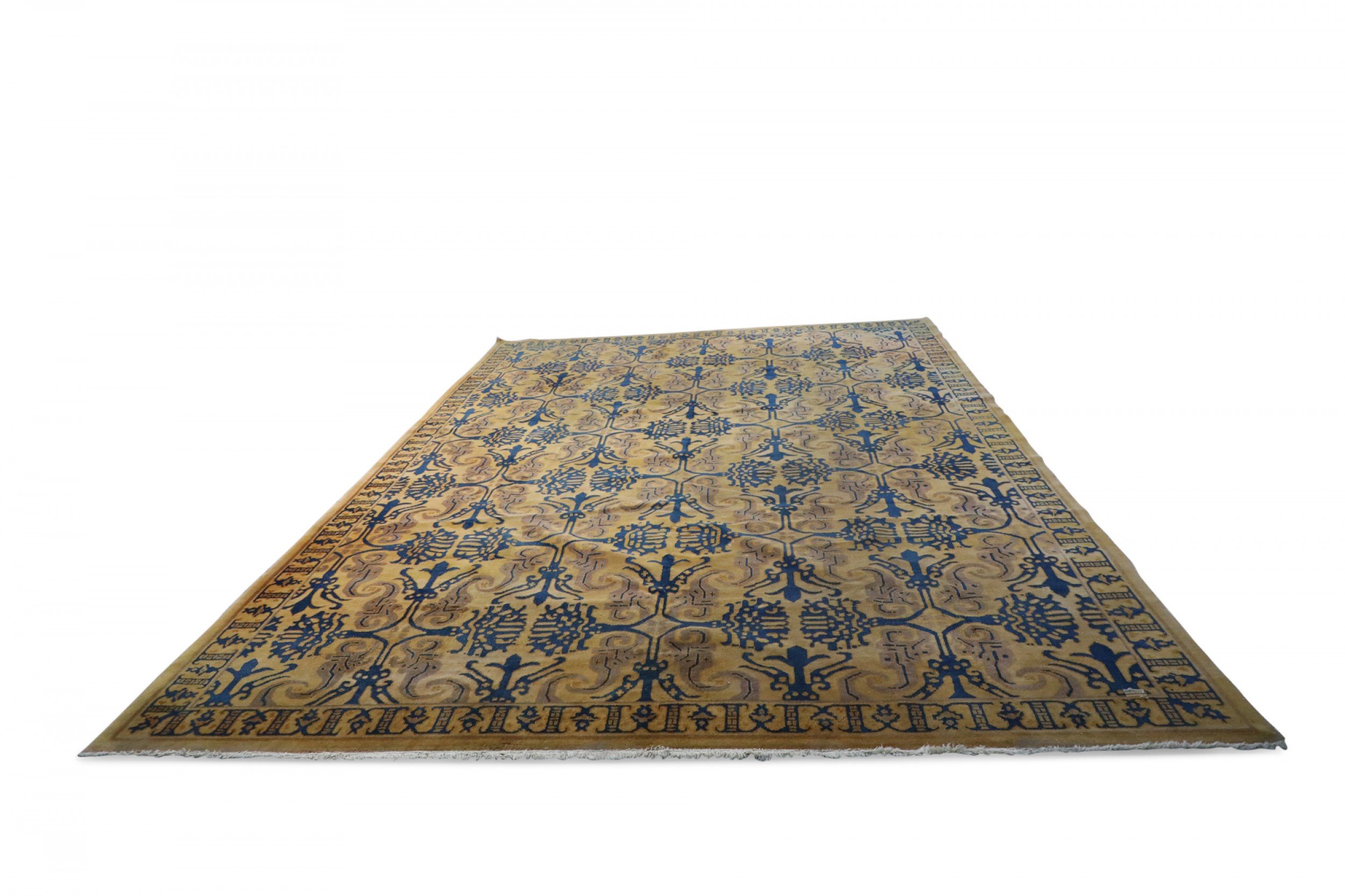 Antique Chinese (late 19th century) high pile carpet with a yellow field and blue and ochre details. (11 3/4' x 17 1/3')