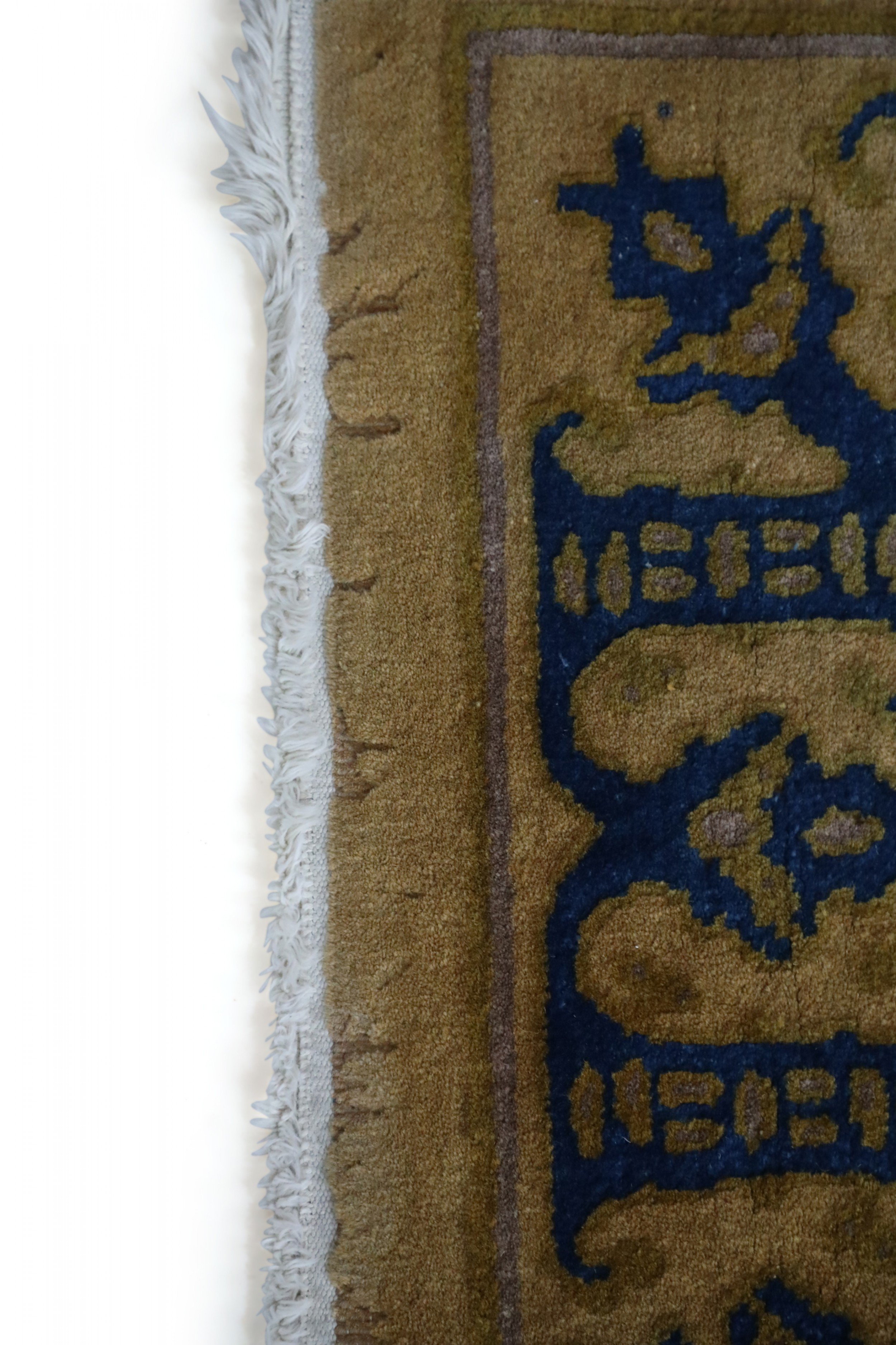Antique Chinese (late 19th century) high pile carpet with a yellow field and blue and ochre details. (11 3/4' x 17 1/3').
