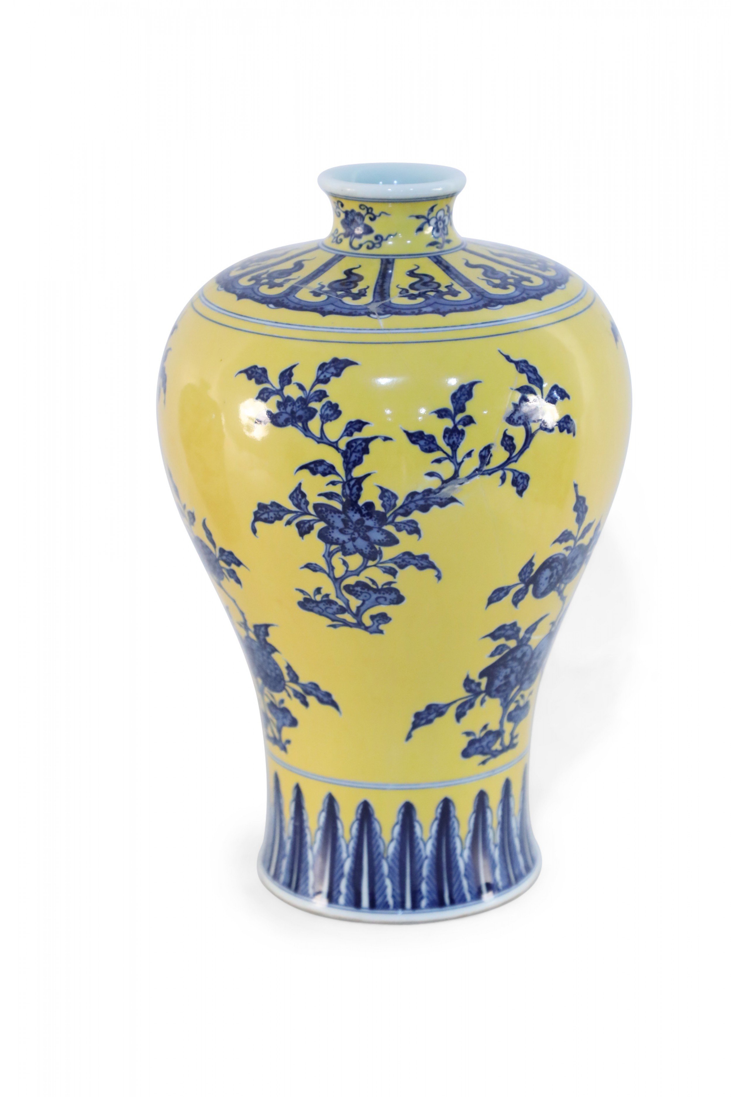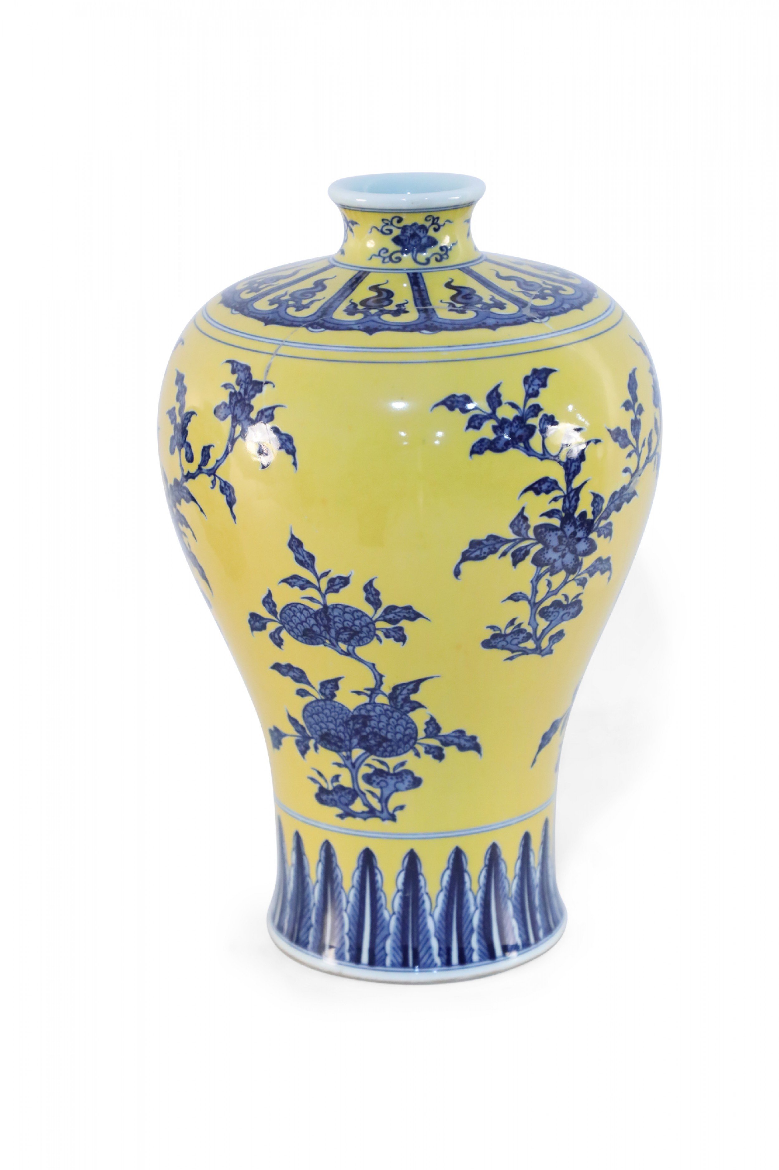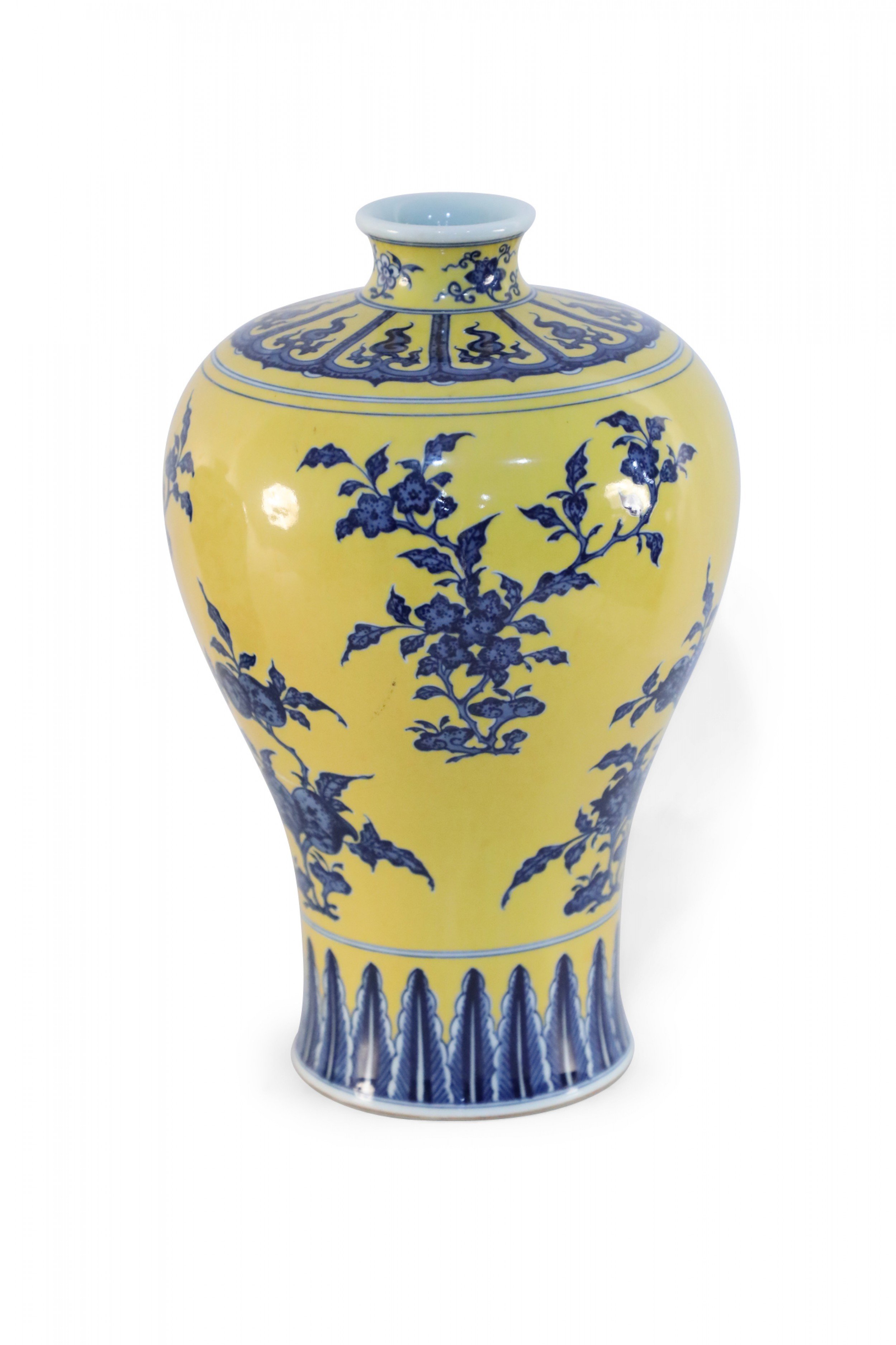 Chinese Yellow and Blue Floral Meiping Porcelain Vase