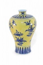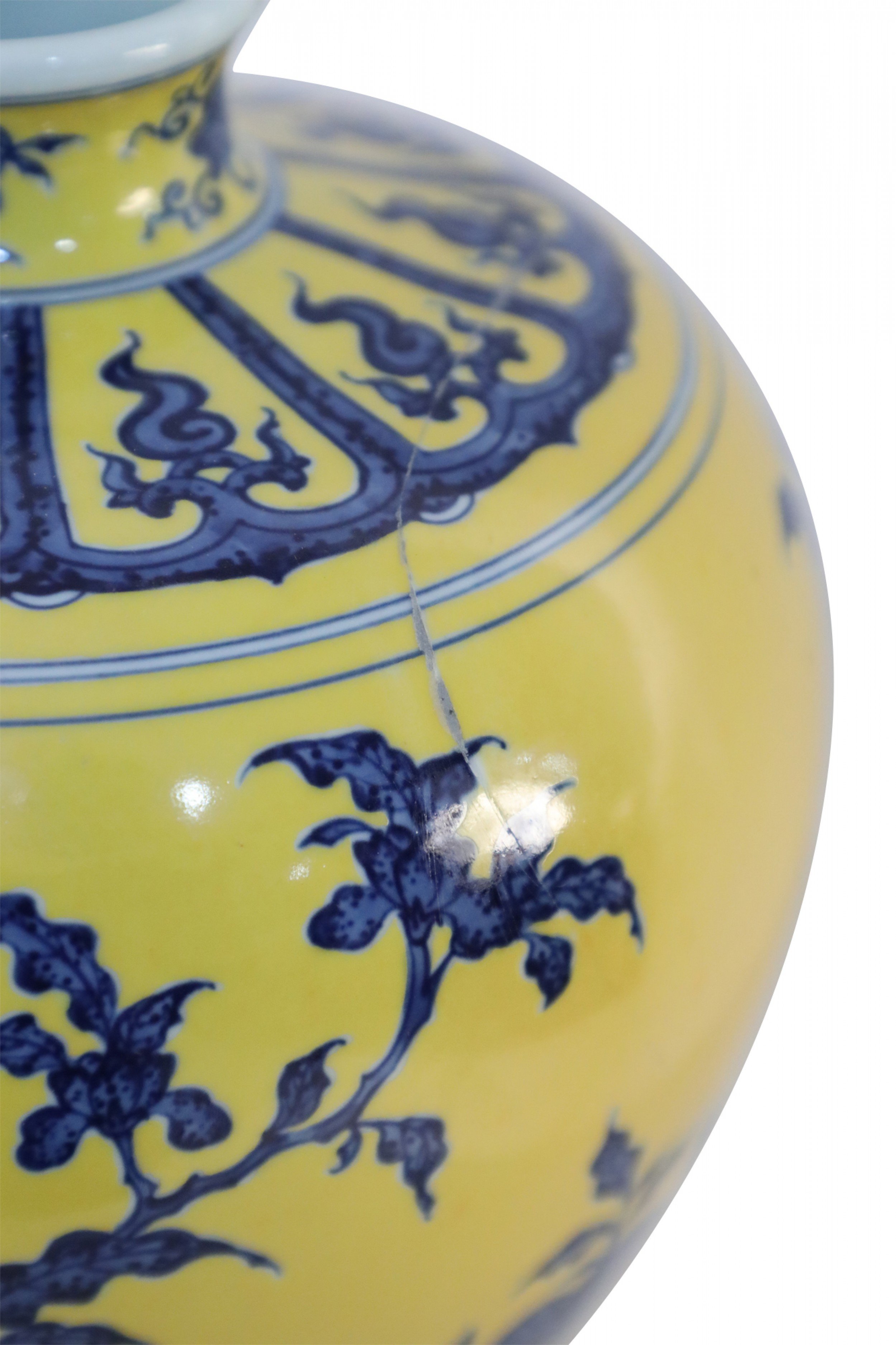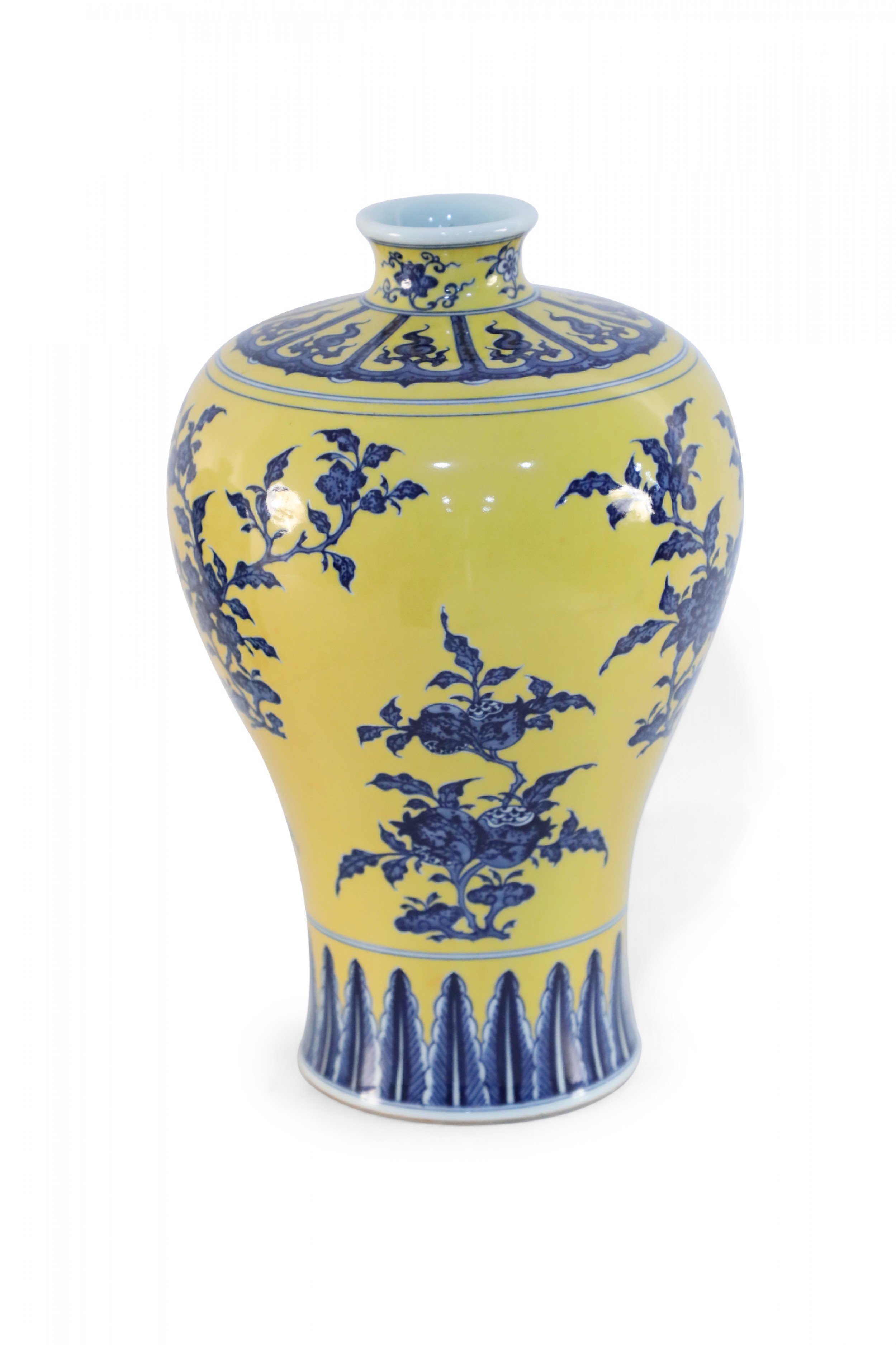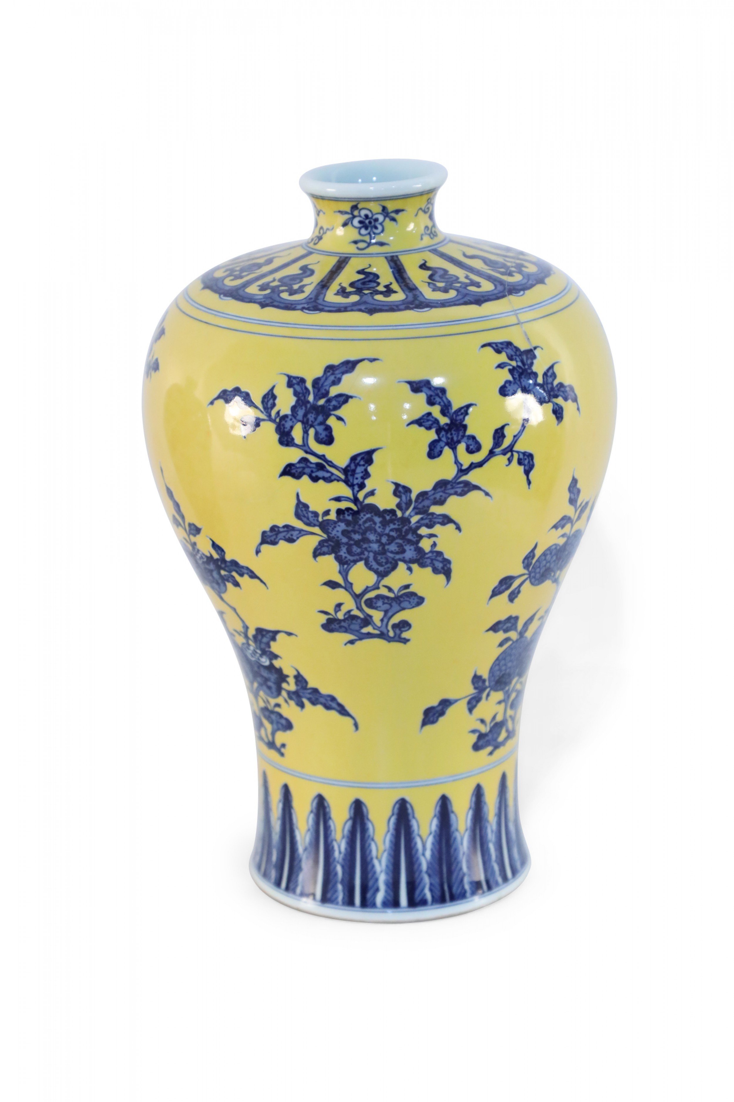 Chinese Yellow and Blue Floral Meiping Porcelain Vase