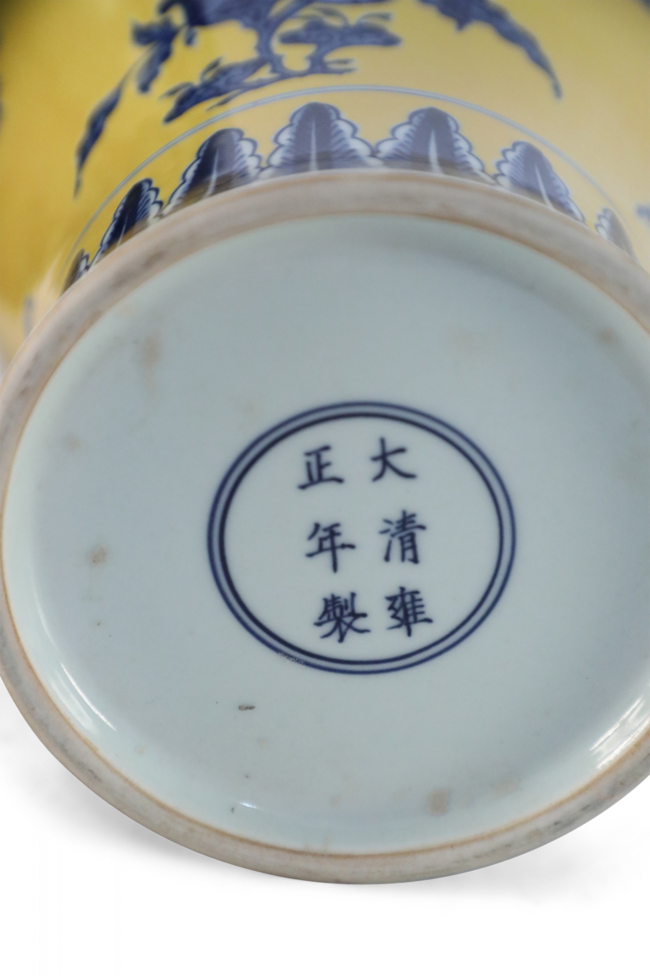 Antique Chinese (19th Century) yellow porcelain Meiping vase decorated with blue florals and geometric bands around the top and the base (mark on bottom, see photos).