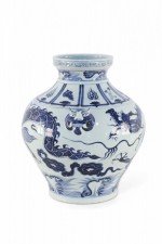 Chinese Yuan Style White and Blue Dragon Motif Porcelain Pot